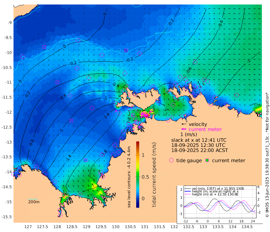 129cm/s -102T +4cm/s rms + 6cm/s 51T. Darwin_C1 52m 100cm/s -90T +4cm/s rms + 7cm/s -161T. Darwin_CW1 22m 63cm/s -106T +4cm/s rms + 8cm/s 61T. Darwin_CW2 34m 69cm/s -136T +3cm/s rms + 9cm/s 98T. Darwin_CW3 22m 93cm/s -90T +5cm/s rms + 7cm/s 88T. Darwin_C3 56m 75cm/s -115T +2cm/s rms + 9cm/s -126T. Darwin_CTbW 22m 5cm/s -79T +9cm/s rms + 2cm/s -110T. NWSLYN 196m 29cm/s -96T +1cm/s rms + 1cm/s -47T. DARBGF 30m 8cm/s 172T +7cm/s rms + 2cm/s -137T. ITFTIS 464m 4cm/s -173T +9cm/s rms + 1cm/s 74T. ITFMHB 146m 12cm/s -15T +4cm/s rms + 1cm/s -134T. ITFJBG 61m 4cm/s -54T +6cm/s rms + 4cm/s 121T. ITFFTB 108m 23cm/s -67T +4cm/s rms + 3cm/s 80T. NRSDAR 19m -15cm Carronade Island -12cm Guy Point -20cm Napier Broome Bay -79cm Lesueur Island -124cm Reveley Island -40cm Rocky Island -172cm Cape Domett -164cm Lacrosse Island -149cm Adolphus Island -118cm Pender Point -105cm Wyndham -57cm The Boxers -76cm Unnamed Shoal 4cm Loxton Shoal -185cm Pelican Island -41cm Calder Shoal -8cm Evans Shoal -169cm Quoin Island -192cm Port Keats -195cm Jones Point -187cm Catfish Island -158cm Cape Scott Offshore -198cm Cape Ford -177cm Anson Bay -24cm Goodrich Bank -159cm Peron Island North -165cm Point Jenny -162cm Native Point -173cm Fish Reef -178cm Tapa Bay -104cm Point Fawcett (Offshore) -190cm Burge Point -158cm Munkunuwa -145cm Beagle A -175cm Parsons Bank -179cm Fenton Patches -13cm Lynedoch Bank -172cm Hancox Shoal Area -183cm Nightcliff -194cm Darwin -184cm Charles Point Patches -150cm Glyde Point -124cm Chambers Bay -120cm Point Stuart -131cm Cape Hotham -110cm Christine Reef -124cm West Alligator Head -113cm East Field Island -111cm Two Hills Bay -110cm Newby Shoal -111cm Camp Point -170cm Medina Inlet South -78cm South Barlow Point -60cm St. Asaph Bay -30cm Cape Van Dieman -32cm Snake Bay -37cm Cache Point 18cm Echo Shoal -44cm Point Jahleel (Off) -81cm Cape Don -52cm Port Essington -48cm Smith Point - West -46cm NW Peacock Island -37cm North Of Jones Shoal -14cm Peacock Island -63cm Point David -50cm D'urville Point -46cm Money Shoal -63cm Copeland Island -85cm Cape Cockburn -62cm One Tree Point -81cm Hogmany Shoal -64cm New Year Island - West -66cm Grant Island -76cm Aurari Bay -89cm Cuthbert Point -81cm North Goulburn Island -103cm Paxie Shoal -104cm Entrance Island -114cm Yabooma Island