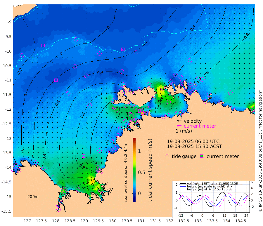 90cm/s 78T +4cm/s rms + 6cm/s 51T. Darwin_C1 52m 51cm/s 87T +4cm/s rms + 7cm/s -161T. Darwin_CW1 22m 37cm/s 75T +4cm/s rms + 8cm/s 61T. Darwin_CW2 34m 38cm/s 47T +3cm/s rms + 9cm/s 98T. Darwin_CW3 22m 40cm/s 88T +5cm/s rms + 7cm/s 88T. Darwin_C3 56m 51cm/s 64T +2cm/s rms + 9cm/s -126T. Darwin_CTbW 22m 5cm/s 142T +9cm/s rms + 2cm/s -110T. NWSLYN 196m 41cm/s 91T +1cm/s rms + 1cm/s -47T. DARBGF 30m 3cm/s 0T +7cm/s rms + 2cm/s -137T. ITFTIS 464m 3cm/s 147T +9cm/s rms + 1cm/s 74T. ITFMHB 146m 27cm/s 154T +4cm/s rms + 1cm/s -134T. ITFJBG 61m 21cm/s 134T +6cm/s rms + 4cm/s 121T. ITFFTB 108m 41cm/s 120T +4cm/s rms + 3cm/s 80T. NRSDAR 19m -52cm Carronade Island -59cm Guy Point -59cm Napier Broome Bay -8cm Lesueur Island 22cm Reveley Island -31cm Rocky Island 22cm Cape Domett 29cm Lacrosse Island -10cm Adolphus Island -71cm Pender Point -87cm Wyndham 22cm The Boxers 50cm Unnamed Shoal -22cm Loxton Shoal 52cm Pelican Island 16cm Calder Shoal 2cm Evans Shoal -17cm Quoin Island 77cm Port Keats 87cm Jones Point 44cm Catfish Island 90cm Cape Scott Offshore 117cm Cape Ford 110cm Anson Bay 20cm Goodrich Bank 103cm Peron Island North 106cm Point Jenny 102cm Native Point 114cm Fish Reef 110cm Tapa Bay 78cm Point Fawcett (Offshore) 110cm Burge Point 102cm Munkunuwa 95cm Beagle A 111cm Parsons Bank 107cm Fenton Patches 8cm Lynedoch Bank 102cm Hancox Shoal Area 109cm Nightcliff 111cm Darwin 111cm Charles Point Patches 71cm Glyde Point 36cm Chambers Bay 29cm Point Stuart 59cm Cape Hotham 26cm Christine Reef 23cm West Alligator Head 2cm East Field Island 42cm Two Hills Bay 56cm Newby Shoal 34cm Camp Point 106cm Medina Inlet South 62cm South Barlow Point 48cm St. Asaph Bay 28cm Cape Van Dieman 29cm Snake Bay 32cm Cache Point -30cm Echo Shoal 33cm Point Jahleel (Off) 53cm Cape Don 48cm Port Essington 48cm Smith Point - West 47cm NW Peacock Island 38cm North Of Jones Shoal 16cm Peacock Island 62cm Point David 53cm D'urville Point 45cm Money Shoal 64cm Copeland Island 85cm Cape Cockburn 60cm One Tree Point 75cm Hogmany Shoal 58cm New Year Island - West 60cm Grant Island 73cm Aurari Bay 78cm Cuthbert Point 74cm North Goulburn Island 76cm Paxie Shoal 80cm Entrance Island 90cm Yabooma Island