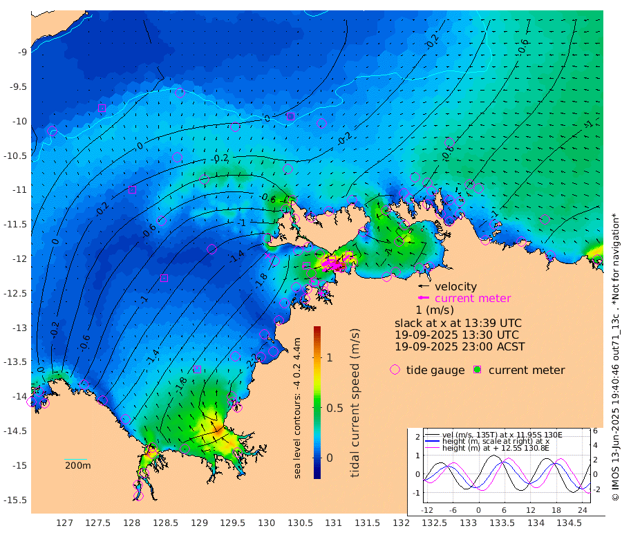 143cm/s -102T +4cm/s rms + 6cm/s 51T. Darwin_C1 52m 115cm/s -90T +4cm/s rms + 7cm/s -161T. Darwin_CW1 22m 81cm/s -106T +4cm/s rms + 8cm/s 61T. Darwin_CW2 34m 74cm/s -135T +3cm/s rms + 9cm/s 98T. Darwin_CW3 22m 121cm/s -90T +5cm/s rms + 7cm/s 88T. Darwin_C3 56m 79cm/s -115T +2cm/s rms + 9cm/s -126T. Darwin_CTbW 22m 5cm/s -88T +9cm/s rms + 2cm/s -110T. NWSLYN 196m 35cm/s -97T +1cm/s rms + 1cm/s -47T. DARBGF 30m 8cm/s 166T +7cm/s rms + 2cm/s -137T. ITFTIS 464m 4cm/s 165T +9cm/s rms + 1cm/s 74T. ITFMHB 146m 16cm/s -8T +4cm/s rms + 1cm/s -134T. ITFJBG 61m 3cm/s -21T +6cm/s rms + 4cm/s 121T. ITFFTB 108m 29cm/s -68T +4cm/s rms + 3cm/s 80T. NRSDAR 19m 27cm Carronade Island 29cm Guy Point 24cm Napier Broome Bay -63cm Lesueur Island -138cm Reveley Island -42cm Rocky Island -198cm Cape Domett -184cm Lacrosse Island -171cm Adolphus Island -125cm Pender Point -100cm Wyndham -47cm The Boxers -71cm Unnamed Shoal 22cm Loxton Shoal -218cm Pelican Island -32cm Calder Shoal 5cm Evans Shoal -199cm Quoin Island -226cm Port Keats -233cm Jones Point -181cm Catfish Island -182cm Cape Scott Offshore -234cm Cape Ford -207cm Anson Bay -16cm Goodrich Bank -184cm Peron Island North -187cm Point Jenny -185cm Native Point -200cm Fish Reef -208cm Tapa Bay -111cm Point Fawcett (Offshore) -223cm Burge Point -193cm Munkunuwa -162cm Beagle A -210cm Parsons Bank -207cm Fenton Patches -3cm Lynedoch Bank -204cm Hancox Shoal Area -215cm Nightcliff -232cm Darwin -217cm Charles Point Patches -169cm Glyde Point -130cm Chambers Bay -122cm Point Stuart -144cm Cape Hotham -112cm Christine Reef -126cm West Alligator Head -110cm East Field Island -114cm Two Hills Bay -107cm Newby Shoal -117cm Camp Point -202cm Medina Inlet South -85cm South Barlow Point -61cm St. Asaph Bay -22cm Cape Van Dieman -27cm Snake Bay -27cm Cache Point 41cm Echo Shoal -38cm Point Jahleel (Off) -81cm Cape Don -48cm Port Essington -43cm Smith Point - West -39cm NW Peacock Island -28cm North Of Jones Shoal -12cm Peacock Island -61cm Point David -45cm D'urville Point -39cm Money Shoal -61cm Copeland Island -81cm Cape Cockburn -59cm One Tree Point -77cm Hogmany Shoal -59cm New Year Island - West -63cm Grant Island -75cm Aurari Bay -88cm Cuthbert Point -80cm North Goulburn Island -104cm Paxie Shoal -108cm Entrance Island -120cm Yabooma Island