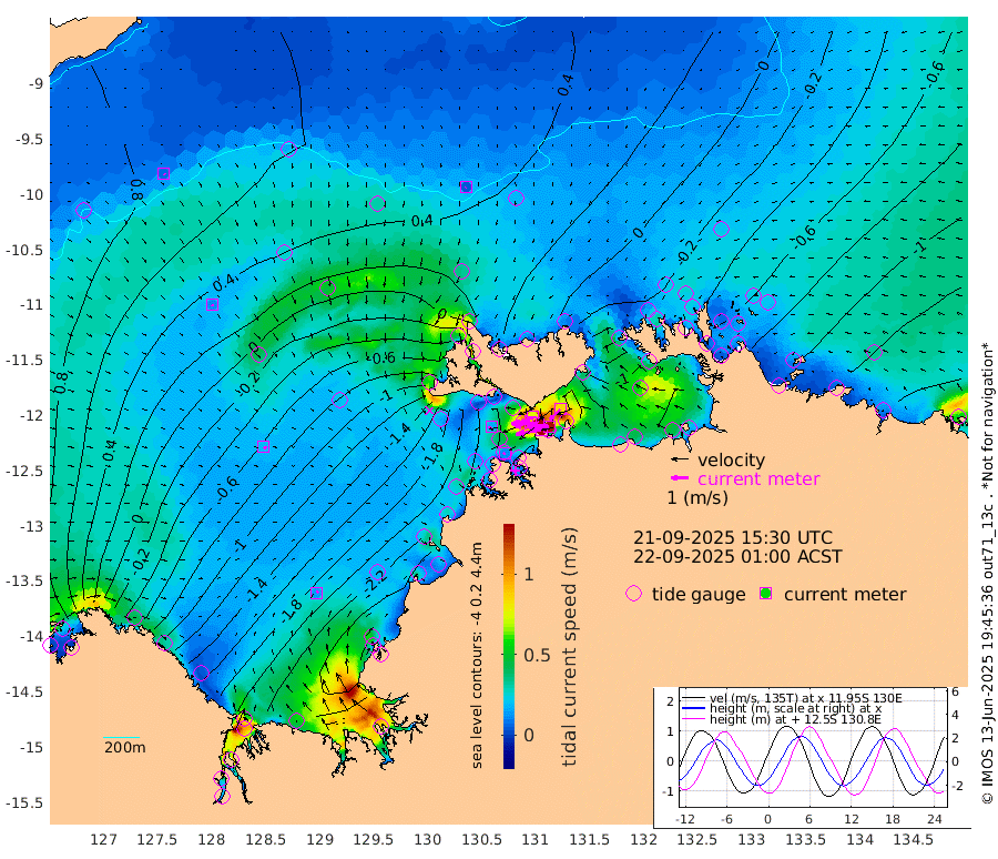 150cm/s -101T +4cm/s rms + 6cm/s 51T. Darwin_C1 52m 127cm/s -91T +4cm/s rms + 7cm/s -161T. Darwin_CW1 22m 93cm/s -106T +4cm/s rms + 8cm/s 61T. Darwin_CW2 34m 84cm/s -135T +3cm/s rms + 9cm/s 98T. Darwin_CW3 22m 156cm/s -91T +5cm/s rms + 7cm/s 88T. Darwin_C3 56m 74cm/s -116T +2cm/s rms + 9cm/s -126T. Darwin_CTbW 22m 4cm/s -159T +9cm/s rms + 2cm/s -110T. NWSLYN 196m 17cm/s -117T +1cm/s rms + 1cm/s -47T. DARBGF 30m 8cm/s 119T +7cm/s rms + 2cm/s -137T. ITFTIS 464m 11cm/s 128T +9cm/s rms + 1cm/s 74T. ITFMHB 146m 14cm/s 49T +4cm/s rms + 1cm/s -134T. ITFJBG 61m 18cm/s 106T +6cm/s rms + 4cm/s 121T. ITFFTB 108m 11cm/s -114T +4cm/s rms + 3cm/s 80T. NRSDAR 19m 87cm Carronade Island 87cm Guy Point 87cm Napier Broome Bay -33cm Lesueur Island -162cm Reveley Island -55cm Rocky Island -252cm Cape Domett -224cm Lacrosse Island -247cm Adolphus Island -202cm Pender Point -172cm Wyndham 2cm The Boxers -24cm Unnamed Shoal 71cm Loxton Shoal -280cm Pelican Island 20cm Calder Shoal 49cm Evans Shoal -312cm Quoin Island -260cm Port Keats -272cm Jones Point -245cm Catfish Island -185cm Cape Scott Offshore -212cm Cape Ford -211cm Anson Bay 28cm Goodrich Bank -182cm Peron Island North -171cm Point Jenny -170cm Native Point -192cm Fish Reef -206cm Tapa Bay -73cm Point Fawcett (Offshore) -224cm Burge Point -197cm Munkunuwa -133cm Beagle A -224cm Parsons Bank -204cm Fenton Patches 37cm Lynedoch Bank -221cm Hancox Shoal Area -223cm Nightcliff -254cm Darwin -224cm Charles Point Patches -187cm Glyde Point -158cm Chambers Bay -157cm Point Stuart -164cm Cape Hotham -132cm Christine Reef -168cm West Alligator Head -156cm East Field Island -133cm Two Hills Bay -58cm Newby Shoal -133cm Camp Point -204cm Medina Inlet South -51cm South Barlow Point -18cm St. Asaph Bay 23cm Cape Van Dieman 15cm Snake Bay 19cm Cache Point 95cm Echo Shoal -4cm Point Jahleel (Off) -64cm Cape Don -18cm Port Essington -11cm Smith Point - West -9cm NW Peacock Island 9cm North Of Jones Shoal 0cm Peacock Island -44cm Point David -15cm D'urville Point -8cm Money Shoal -46cm Copeland Island -58cm Cape Cockburn -39cm One Tree Point -61cm Hogmany Shoal -38cm New Year Island - West -45cm Grant Island -67cm Aurari Bay -87cm Cuthbert Point -69cm North Goulburn Island -110cm Paxie Shoal -125cm Entrance Island -153cm Yabooma Island