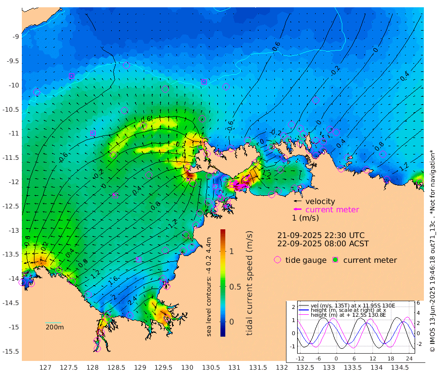 125cm/s 79T +4cm/s rms + 6cm/s 51T. Darwin_C1 52m 107cm/s 92T +4cm/s rms + 7cm/s -161T. Darwin_CW1 22m 84cm/s 71T +4cm/s rms + 8cm/s 61T. Darwin_CW2 34m 84cm/s 46T +3cm/s rms + 9cm/s 98T. Darwin_CW3 22m 140cm/s 90T +5cm/s rms + 7cm/s 88T. Darwin_C3 56m 59cm/s 65T +2cm/s rms + 9cm/s -126T. Darwin_CTbW 22m 12cm/s -18T +9cm/s rms + 2cm/s -110T. NWSLYN 196m 22cm/s -63T +1cm/s rms + 1cm/s -47T. DARBGF 30m 9cm/s -84T +7cm/s rms + 2cm/s -137T. ITFTIS 464m 17cm/s -47T +9cm/s rms + 1cm/s 74T. ITFMHB 146m 24cm/s -65T +4cm/s rms + 1cm/s -134T. ITFJBG 61m 37cm/s -62T +6cm/s rms + 4cm/s 121T. ITFFTB 108m 38cm/s -45T +4cm/s rms + 3cm/s 80T. NRSDAR 19m -53cm Carronade Island -53cm Guy Point -46cm Napier Broome Bay 49cm Lesueur Island 166cm Reveley Island 110cm Rocky Island 278cm Cape Domett 238cm Lacrosse Island 308cm Adolphus Island 296cm Pender Point 284cm Wyndham -22cm The Boxers -12cm Unnamed Shoal -79cm Loxton Shoal 285cm Pelican Island -46cm Calder Shoal -69cm Evans Shoal 382cm Quoin Island 243cm Port Keats 250cm Jones Point 297cm Catfish Island 134cm Cape Scott Offshore 145cm Cape Ford 148cm Anson Bay -55cm Goodrich Bank 127cm Peron Island North 114cm Point Jenny 113cm Native Point 136cm Fish Reef 145cm Tapa Bay 14cm Point Fawcett (Offshore) 175cm Burge Point 136cm Munkunuwa 86cm Beagle A 173cm Parsons Bank 160cm Fenton Patches -55cm Lynedoch Bank 173cm Hancox Shoal Area 170cm Nightcliff 205cm Darwin 168cm Charles Point Patches 174cm Glyde Point 176cm Chambers Bay 187cm Point Stuart 158cm Cape Hotham 155cm Christine Reef 208cm West Alligator Head 216cm East Field Island 142cm Two Hills Bay 34cm Newby Shoal 142cm Camp Point 147cm Medina Inlet South 2cm South Barlow Point -28cm St. Asaph Bay -56cm Cape Van Dieman -49cm Snake Bay -50cm Cache Point -98cm Echo Shoal -23cm Point Jahleel (Off) 41cm Cape Don -13cm Port Essington -20cm Smith Point - West -20cm NW Peacock Island -42cm North Of Jones Shoal -13cm Peacock Island 9cm Point David -16cm D'urville Point -21cm Money Shoal 13cm Copeland Island 18cm Cape Cockburn 6cm One Tree Point 22cm Hogmany Shoal 9cm New Year Island - West 16cm Grant Island 39cm Aurari Bay 67cm Cuthbert Point 38cm North Goulburn Island 83cm Paxie Shoal 107cm Entrance Island 135cm Yabooma Island