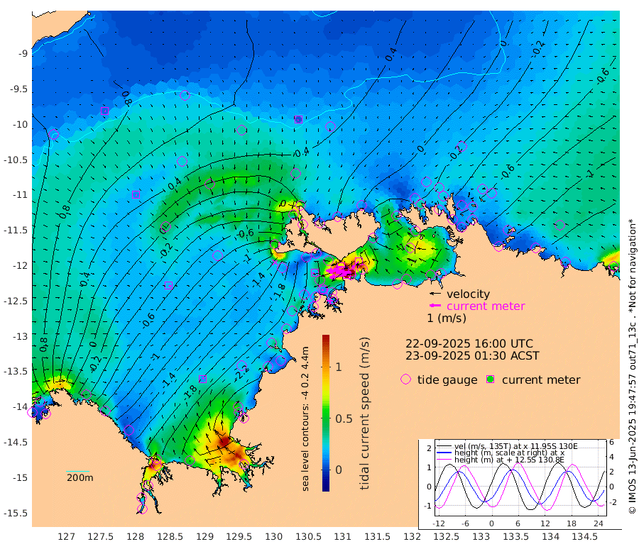 158cm/s -101T +4cm/s rms + 6cm/s 51T. Darwin_C1 52m 134cm/s -91T +4cm/s rms + 7cm/s -161T. Darwin_CW1 22m 99cm/s -106T +4cm/s rms + 8cm/s 61T. Darwin_CW2 34m 84cm/s -135T +3cm/s rms + 9cm/s 98T. Darwin_CW3 22m 168cm/s -91T +5cm/s rms + 7cm/s 88T. Darwin_C3 56m 79cm/s -116T +2cm/s rms + 9cm/s -126T. Darwin_CTbW 22m 4cm/s -178T +9cm/s rms + 2cm/s -110T. NWSLYN 196m 18cm/s -115T +1cm/s rms + 1cm/s -47T. DARBGF 30m 8cm/s 104T +7cm/s rms + 2cm/s -137T. ITFTIS 464m 11cm/s 116T +9cm/s rms + 1cm/s 74T. ITFMHB 146m 15cm/s 48T +4cm/s rms + 1cm/s -134T. ITFJBG 61m 19cm/s 101T +6cm/s rms + 4cm/s 121T. ITFFTB 108m 13cm/s -113T +4cm/s rms + 3cm/s 80T. NRSDAR 19m 109cm Carronade Island 109cm Guy Point 109cm Napier Broome Bay -17cm Lesueur Island -156cm Reveley Island -61cm Rocky Island -246cm Cape Domett -216cm Lacrosse Island -245cm Adolphus Island -193cm Pender Point -161cm Wyndham 13cm The Boxers -14cm Unnamed Shoal 80cm Loxton Shoal -280cm Pelican Island 30cm Calder Shoal 57cm Evans Shoal -315cm Quoin Island -256cm Port Keats -268cm Jones Point -247cm Catfish Island -181cm Cape Scott Offshore -193cm Cape Ford -208cm Anson Bay 35cm Goodrich Bank -178cm Peron Island North -164cm Point Jenny -163cm Native Point -186cm Fish Reef -201cm Tapa Bay -65cm Point Fawcett (Offshore) -216cm Burge Point -195cm Munkunuwa -125cm Beagle A -222cm Parsons Bank -197cm Fenton Patches 44cm Lynedoch Bank -218cm Hancox Shoal Area -219cm Nightcliff -251cm Darwin -220cm Charles Point Patches -182cm Glyde Point -151cm Chambers Bay -150cm Point Stuart -158cm Cape Hotham -125cm Christine Reef -162cm West Alligator Head -147cm East Field Island -127cm Two Hills Bay -45cm Newby Shoal -125cm Camp Point -201cm Medina Inlet South -46cm South Barlow Point -11cm St. Asaph Bay 31cm Cape Van Dieman 22cm Snake Bay 27cm Cache Point 105cm Echo Shoal 2cm Point Jahleel (Off) -58cm Cape Don -13cm Port Essington -7cm Smith Point - West -4cm NW Peacock Island 15cm North Of Jones Shoal 3cm Peacock Island -38cm Point David -11cm D'urville Point -1cm Money Shoal -42cm Copeland Island -51cm Cape Cockburn -34cm One Tree Point -54cm Hogmany Shoal -31cm New Year Island - West -39cm Grant Island -63cm Aurari Bay -83cm Cuthbert Point -64cm North Goulburn Island -103cm Paxie Shoal -119cm Entrance Island -146cm Yabooma Island