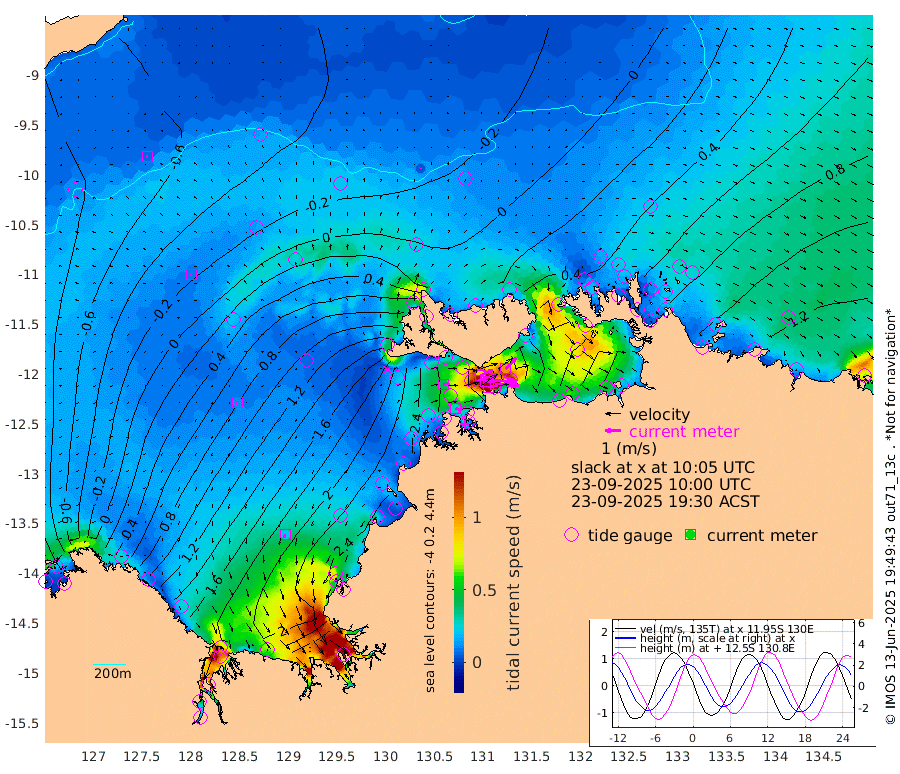 187cm/s 79T +4cm/s rms + 6cm/s 51T. Darwin_C1 52m 149cm/s 93T +4cm/s rms + 7cm/s -161T. Darwin_CW1 22m 128cm/s 72T +4cm/s rms + 8cm/s 61T. Darwin_CW2 34m 100cm/s 45T +3cm/s rms + 9cm/s 98T. Darwin_CW3 22m 201cm/s 89T +5cm/s rms + 7cm/s 88T. Darwin_C3 56m 88cm/s 66T +2cm/s rms + 9cm/s -126T. Darwin_CTbW 22m 3cm/s 35T +9cm/s rms + 2cm/s -110T. NWSLYN 196m 40cm/s 79T +1cm/s rms + 1cm/s -47T. DARBGF 30m 7cm/s -89T +7cm/s rms + 2cm/s -137T. ITFTIS 464m 9cm/s -118T +9cm/s rms + 1cm/s 74T. ITFMHB 146m 22cm/s -161T +4cm/s rms + 1cm/s -134T. ITFJBG 61m 11cm/s -123T +6cm/s rms + 4cm/s 121T. ITFFTB 108m 28cm/s 103T +4cm/s rms + 3cm/s 80T. NRSDAR 19m -108cm Carronade Island -106cm Guy Point -117cm Napier Broome Bay 29cm Lesueur Island 163cm Reveley Island 42cm Rocky Island 241cm Cape Domett 221cm Lacrosse Island 229cm Adolphus Island 139cm Pender Point 105cm Wyndham 12cm The Boxers 37cm Unnamed Shoal -57cm Loxton Shoal 282cm Pelican Island 3cm Calder Shoal -28cm Evans Shoal 293cm Quoin Island 277cm Port Keats 277cm Jones Point 229cm Catfish Island 221cm Cape Scott Offshore 232cm Cape Ford 251cm Anson Bay -7cm Goodrich Bank 223cm Peron Island North 206cm Point Jenny 203cm Native Point 229cm Fish Reef 242cm Tapa Bay 112cm Point Fawcett (Offshore) 253cm Burge Point 235cm Munkunuwa 169cm Beagle A 258cm Parsons Bank 236cm Fenton Patches -20cm Lynedoch Bank 252cm Hancox Shoal Area 263cm Nightcliff 286cm Darwin 259cm Charles Point Patches 195cm Glyde Point 144cm Chambers Bay 136cm Point Stuart 168cm Cape Hotham 121cm Christine Reef 143cm West Alligator Head 118cm East Field Island 129cm Two Hills Bay 85cm Newby Shoal 123cm Camp Point 242cm Medina Inlet South 88cm South Barlow Point 53cm St. Asaph Bay 0cm Cape Van Dieman 10cm Snake Bay 4cm Cache Point -82cm Echo Shoal 26cm Point Jahleel (Off) 79cm Cape Don 39cm Port Essington 37cm Smith Point - West 31cm NW Peacock Island 19cm North Of Jones Shoal 9cm Peacock Island 59cm Point David 40cm D'urville Point 25cm Money Shoal 62cm Copeland Island 81cm Cape Cockburn 57cm One Tree Point 75cm Hogmany Shoal 52cm New Year Island - West 59cm Grant Island 81cm Aurari Bay 92cm Cuthbert Point 81cm North Goulburn Island 107cm Paxie Shoal 118cm Entrance Island 143cm Yabooma Island