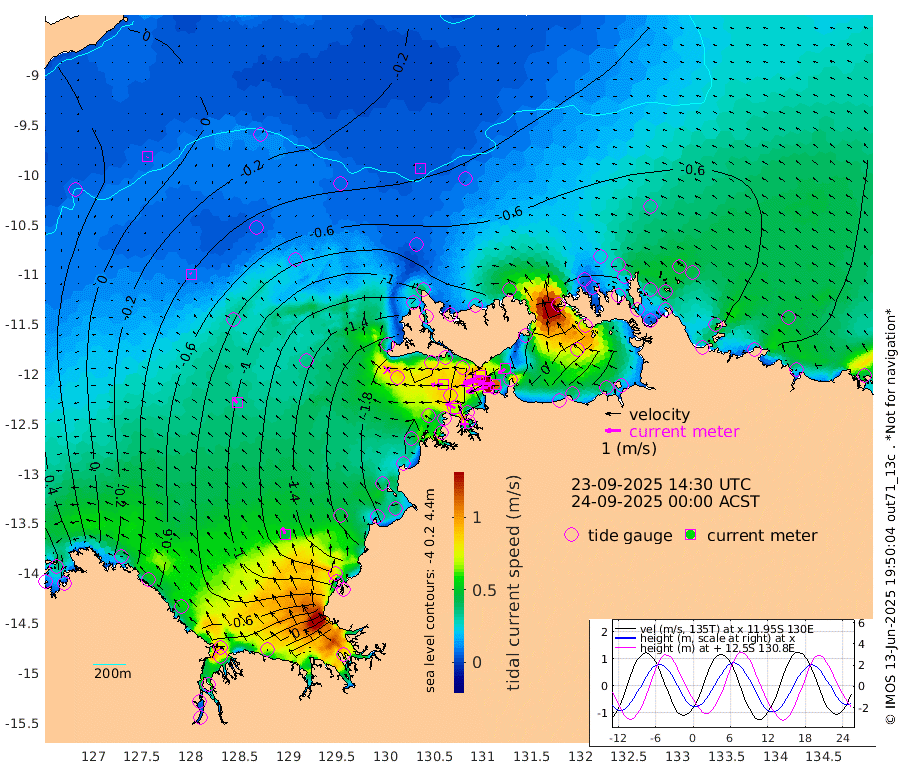 142cm/s -103T +4cm/s rms + 6cm/s 51T. Darwin_C1 52m 110cm/s -89T +4cm/s rms + 7cm/s -161T. Darwin_CW1 22m 113cm/s -108T +4cm/s rms + 8cm/s 61T. Darwin_CW2 34m 51cm/s -123T +3cm/s rms + 9cm/s 98T. Darwin_CW3 22m 139cm/s -92T +5cm/s rms + 7cm/s 88T. Darwin_C3 56m 83cm/s -115T +2cm/s rms + 9cm/s -126T. Darwin_CTbW 22m 4cm/s -44T +9cm/s rms + 2cm/s -110T. NWSLYN 196m 76cm/s -91T +1cm/s rms + 1cm/s -47T. DARBGF 30m 5cm/s -138T +7cm/s rms + 2cm/s -137T. ITFTIS 464m 9cm/s -16T +9cm/s rms + 1cm/s 74T. ITFMHB 146m 44cm/s -23T +4cm/s rms + 1cm/s -134T. ITFJBG 61m 33cm/s -42T +6cm/s rms + 4cm/s 121T. ITFFTB 108m 68cm/s -62T +4cm/s rms + 3cm/s 80T. NRSDAR 19m 129cm Carronade Island 135cm Guy Point 129cm Napier Broome Bay 33cm Lesueur Island -42cm Reveley Island -23cm Rocky Island -55cm Cape Domett -48cm Lacrosse Island -3cm Adolphus Island 104cm Pender Point 160cm Wyndham -47cm The Boxers -81cm Unnamed Shoal 6cm Loxton Shoal -97cm Pelican Island -46cm Calder Shoal -15cm Evans Shoal 14cm Quoin Island -149cm Port Keats -151cm Jones Point 80cm Catfish Island -158cm Cape Scott Offshore -211cm Cape Ford -193cm Anson Bay -45cm Goodrich Bank -168cm Peron Island North -179cm Point Jenny -182cm Native Point -187cm Fish Reef -198cm Tapa Bay -129cm Point Fawcett (Offshore) -193cm Burge Point -204cm Munkunuwa -162cm Beagle A -193cm Parsons Bank -187cm Fenton Patches -25cm Lynedoch Bank -174cm Hancox Shoal Area -192cm Nightcliff -201cm Darwin -199cm Charles Point Patches -94cm Glyde Point 4cm Chambers Bay 34cm Point Stuart -48cm Cape Hotham 11cm Christine Reef 48cm West Alligator Head 93cm East Field Island -5cm Two Hills Bay -97cm Newby Shoal -15cm Camp Point -197cm Medina Inlet South -123cm South Barlow Point -95cm St. Asaph Bay -55cm Cape Van Dieman -61cm Snake Bay -45cm Cache Point 36cm Echo Shoal -46cm Point Jahleel (Off) -54cm Cape Don -53cm Port Essington -54cm Smith Point - West -46cm NW Peacock Island -39cm North Of Jones Shoal -15cm Peacock Island -46cm Point David -54cm D'urville Point -36cm Money Shoal -44cm Copeland Island -51cm Cape Cockburn -44cm One Tree Point -38cm Hogmany Shoal -41cm New Year Island - West -42cm Grant Island -43cm Aurari Bay -31cm Cuthbert Point -42cm North Goulburn Island -26cm Paxie Shoal -20cm Entrance Island 2cm Yabooma Island