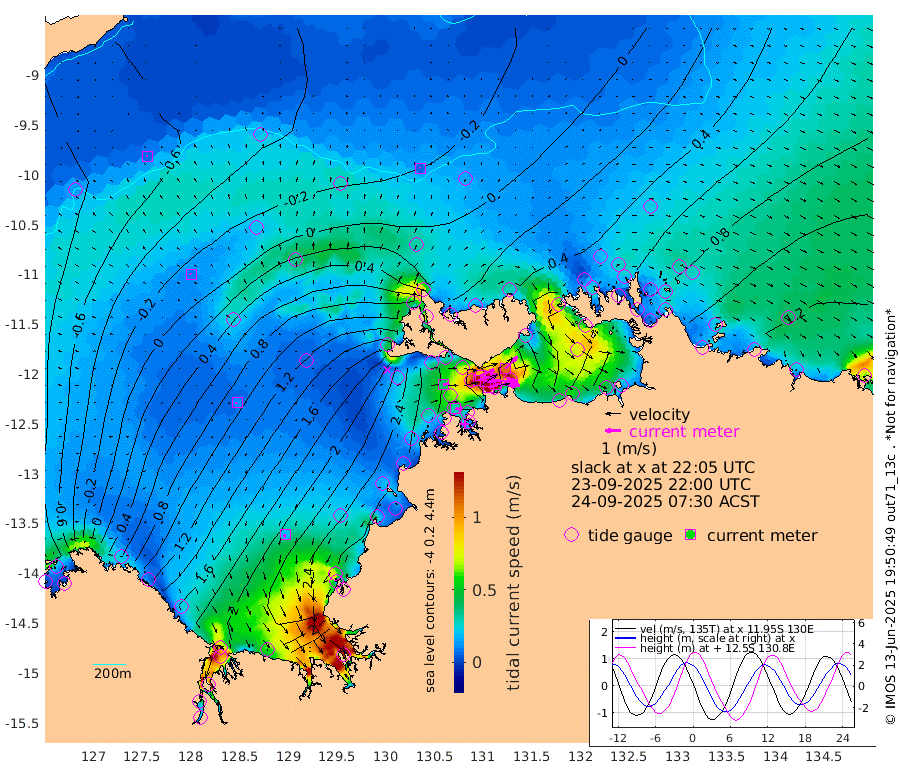 196cm/s 78T +4cm/s rms + 6cm/s 51T. Darwin_C1 52m 157cm/s 92T +4cm/s rms + 7cm/s -161T. Darwin_CW1 22m 126cm/s 73T +4cm/s rms + 8cm/s 61T. Darwin_CW2 34m 111cm/s 44T +3cm/s rms + 9cm/s 98T. Darwin_CW3 22m 201cm/s 89T +5cm/s rms + 7cm/s 88T. Darwin_C3 56m 94cm/s 66T +2cm/s rms + 9cm/s -126T. Darwin_CTbW 22m 8cm/s -6T +9cm/s rms + 2cm/s -110T. NWSLYN 196m 38cm/s 79T +1cm/s rms + 1cm/s -47T. DARBGF 30m 6cm/s -62T +7cm/s rms + 2cm/s -137T. ITFTIS 464m 8cm/s -62T +9cm/s rms + 1cm/s 74T. ITFMHB 146m 20cm/s -157T +4cm/s rms + 1cm/s -134T. ITFJBG 61m 11cm/s -98T +6cm/s rms + 4cm/s 121T. ITFFTB 108m 31cm/s 102T +4cm/s rms + 3cm/s 80T. NRSDAR 19m -114cm Carronade Island -122cm Guy Point -111cm Napier Broome Bay 25cm Lesueur Island 147cm Reveley Island 95cm Rocky Island 241cm Cape Domett 209cm Lacrosse Island 240cm Adolphus Island 143cm Pender Point 107cm Wyndham 23cm The Boxers 51cm Unnamed Shoal -52cm Loxton Shoal 272cm Pelican Island 5cm Calder Shoal -30cm Evans Shoal 285cm Quoin Island 282cm Port Keats 277cm Jones Point 198cm Catfish Island 207cm Cape Scott Offshore 223cm Cape Ford 241cm Anson Bay -1cm Goodrich Bank 215cm Peron Island North 204cm Point Jenny 204cm Native Point 230cm Fish Reef 236cm Tapa Bay 104cm Point Fawcett (Offshore) 260cm Burge Point 231cm Munkunuwa 178cm Beagle A 260cm Parsons Bank 247cm Fenton Patches -12cm Lynedoch Bank 247cm Hancox Shoal Area 260cm Nightcliff 290cm Darwin 261cm Charles Point Patches 198cm Glyde Point 136cm Chambers Bay 127cm Point Stuart 160cm Cape Hotham 119cm Christine Reef 132cm West Alligator Head 110cm East Field Island 123cm Two Hills Bay 109cm Newby Shoal 123cm Camp Point 243cm Medina Inlet South 95cm South Barlow Point 52cm St. Asaph Bay 4cm Cape Van Dieman 17cm Snake Bay 6cm Cache Point -86cm Echo Shoal 27cm Point Jahleel (Off) 82cm Cape Don 43cm Port Essington 41cm Smith Point - West 36cm NW Peacock Island 17cm North Of Jones Shoal 9cm Peacock Island 57cm Point David 45cm D'urville Point 30cm Money Shoal 60cm Copeland Island 81cm Cape Cockburn 58cm One Tree Point 62cm Hogmany Shoal 57cm New Year Island - West 62cm Grant Island 84cm Aurari Bay 97cm Cuthbert Point 81cm North Goulburn Island 99cm Paxie Shoal 113cm Entrance Island 125cm Yabooma Island