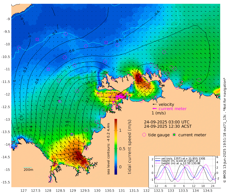 200cm/s -102T +4cm/s rms + 6cm/s 51T. Darwin_C1 52m 161cm/s -90T +4cm/s rms + 7cm/s -161T. Darwin_CW1 22m 136cm/s -108T +4cm/s rms + 8cm/s 61T. Darwin_CW2 34m 77cm/s -129T +3cm/s rms + 9cm/s 98T. Darwin_CW3 22m 179cm/s -91T +5cm/s rms + 7cm/s 88T. Darwin_C3 56m 116cm/s -115T +2cm/s rms + 9cm/s -126T. Darwin_CTbW 22m 5cm/s -94T +9cm/s rms + 2cm/s -110T. NWSLYN 196m 83cm/s -92T +1cm/s rms + 1cm/s -47T. DARBGF 30m 4cm/s -161T +7cm/s rms + 2cm/s -137T. ITFTIS 464m 11cm/s -9T +9cm/s rms + 1cm/s 74T. ITFMHB 146m 44cm/s -20T +4cm/s rms + 1cm/s -134T. ITFJBG 61m 31cm/s -43T +6cm/s rms + 4cm/s 121T. ITFFTB 108m 69cm/s -63T +4cm/s rms + 3cm/s 80T. NRSDAR 19m 85cm Carronade Island 88cm Guy Point 91cm Napier Broome Bay -41cm Lesueur Island -119cm Reveley Island -38cm Rocky Island -155cm Cape Domett -152cm Lacrosse Island -112cm Adolphus Island 24cm Pender Point 71cm Wyndham -85cm The Boxers -114cm Unnamed Shoal -21cm Loxton Shoal -193cm Pelican Island -87cm Calder Shoal -44cm Evans Shoal -113cm Quoin Island -250cm Port Keats -232cm Jones Point -32cm Catfish Island -239cm Cape Scott Offshore -291cm Cape Ford -274cm Anson Bay -71cm Goodrich Bank -252cm Peron Island North -251cm Point Jenny -251cm Native Point -267cm Fish Reef -274cm Tapa Bay -186cm Point Fawcett (Offshore) -281cm Burge Point -270cm Munkunuwa -236cm Beagle A -272cm Parsons Bank -272cm Fenton Patches -49cm Lynedoch Bank -257cm Hancox Shoal Area -286cm Nightcliff -292cm Darwin -285cm Charles Point Patches -168cm Glyde Point -64cm Chambers Bay -36cm Point Stuart -123cm Cape Hotham -58cm Christine Reef -27cm West Alligator Head 18cm East Field Island -73cm Two Hills Bay -172cm Newby Shoal -76cm Camp Point -276cm Medina Inlet South -171cm South Barlow Point -138cm St. Asaph Bay -81cm Cape Van Dieman -91cm Snake Bay -79cm Cache Point 10cm Echo Shoal -84cm Point Jahleel (Off) -102cm Cape Don -88cm Port Essington -92cm Smith Point - West -82cm NW Peacock Island -80cm North Of Jones Shoal -29cm Peacock Island -82cm Point David -91cm D'urville Point -70cm Money Shoal -80cm Copeland Island -109cm Cape Cockburn -85cm One Tree Point -84cm Hogmany Shoal -82cm New Year Island - West -82cm Grant Island -85cm Aurari Bay -73cm Cuthbert Point -87cm North Goulburn Island -70cm Paxie Shoal -64cm Entrance Island -52cm Yabooma Island