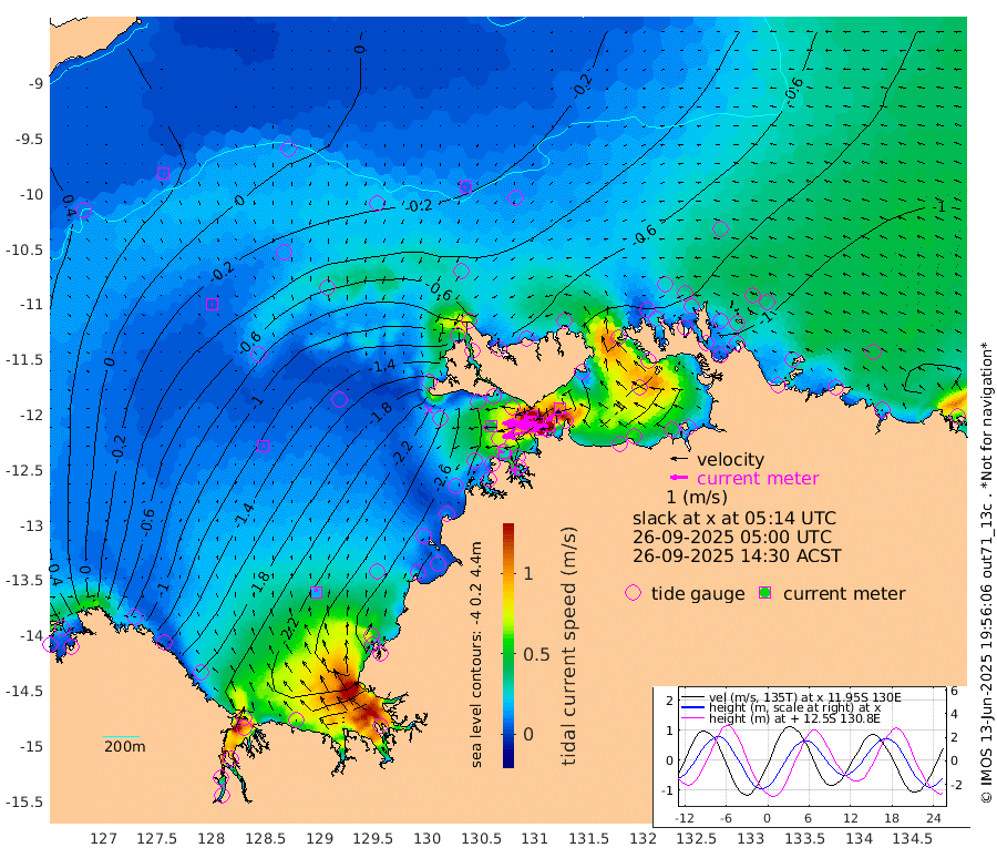 226cm/s -102T +4cm/s rms + 6cm/s 51T. Darwin_C1 52m 182cm/s -90T +4cm/s rms + 7cm/s -161T. Darwin_CW1 22m 132cm/s -107T +4cm/s rms + 8cm/s 61T. Darwin_CW2 34m 102cm/s -133T +3cm/s rms + 9cm/s 98T. Darwin_CW3 22m 203cm/s -91T +5cm/s rms + 7cm/s 88T. Darwin_C3 56m 130cm/s -115T +2cm/s rms + 9cm/s -126T. Darwin_CTbW 22m 6cm/s -143T +9cm/s rms + 2cm/s -110T. NWSLYN 196m 45cm/s -99T +1cm/s rms + 1cm/s -47T. DARBGF 30m 6cm/s 127T +7cm/s rms + 2cm/s -137T. ITFTIS 464m 5cm/s 83T +9cm/s rms + 1cm/s 74T. ITFMHB 146m 17cm/s 13T +4cm/s rms + 1cm/s -134T. ITFJBG 61m 7cm/s 63T +6cm/s rms + 4cm/s 121T. ITFFTB 108m 31cm/s -79T +4cm/s rms + 3cm/s 80T. NRSDAR 19m 56cm Carronade Island 54cm Guy Point 56cm Napier Broome Bay -84cm Lesueur Island -187cm Reveley Island -79cm Rocky Island -269cm Cape Domett -249cm Lacrosse Island -265cm Adolphus Island -169cm Pender Point -141cm Wyndham -62cm The Boxers -88cm Unnamed Shoal 4cm Loxton Shoal -297cm Pelican Island -51cm Calder Shoal -12cm Evans Shoal -318cm Quoin Island -305cm Port Keats -285cm Jones Point -224cm Catfish Island -245cm Cape Scott Offshore -234cm Cape Ford -275cm Anson Bay -34cm Goodrich Bank -246cm Peron Island North -230cm Point Jenny -229cm Native Point -247cm Fish Reef -265cm Tapa Bay -142cm Point Fawcett (Offshore) -275cm Burge Point -250cm Munkunuwa -200cm Beagle A -277cm Parsons Bank -262cm Fenton Patches -22cm Lynedoch Bank -273cm Hancox Shoal Area -292cm Nightcliff -309cm Darwin -285cm Charles Point Patches -214cm Glyde Point -151cm Chambers Bay -138cm Point Stuart -180cm Cape Hotham -138cm Christine Reef -144cm West Alligator Head -118cm East Field Island -142cm Two Hills Bay -144cm Newby Shoal -140cm Camp Point -265cm Medina Inlet South -126cm South Barlow Point -89cm St. Asaph Bay -39cm Cape Van Dieman -54cm Snake Bay -43cm Cache Point 36cm Echo Shoal -62cm Point Jahleel (Off) -107cm Cape Don -69cm Port Essington -70cm Smith Point - West -65cm NW Peacock Island -55cm North Of Jones Shoal -21cm Peacock Island -84cm Point David -72cm D'urville Point -57cm Money Shoal -84cm Copeland Island -112cm Cape Cockburn -85cm One Tree Point -99cm Hogmany Shoal -85cm New Year Island - West -89cm Grant Island -103cm Aurari Bay -108cm Cuthbert Point -103cm North Goulburn Island -119cm Paxie Shoal -121cm Entrance Island -130cm Yabooma Island