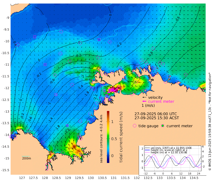 209cm/s -101T +4cm/s rms + 6cm/s 51T. Darwin_C1 52m 164cm/s -90T +4cm/s rms + 7cm/s -161T. Darwin_CW1 22m 107cm/s -106T +4cm/s rms + 8cm/s 61T. Darwin_CW2 34m 101cm/s -135T +3cm/s rms + 9cm/s 98T. Darwin_CW3 22m 176cm/s -90T +5cm/s rms + 7cm/s 88T. Darwin_C3 56m 122cm/s -115T +2cm/s rms + 9cm/s -126T. Darwin_CTbW 22m 6cm/s -152T +9cm/s rms + 2cm/s -110T. NWSLYN 196m 22cm/s -109T +1cm/s rms + 1cm/s -47T. DARBGF 30m 7cm/s 115T +7cm/s rms + 2cm/s -137T. ITFTIS 464m 8cm/s 118T +9cm/s rms + 1cm/s 74T. ITFMHB 146m 12cm/s 71T +4cm/s rms + 1cm/s -134T. ITFJBG 61m 17cm/s 109T +6cm/s rms + 4cm/s 121T. ITFFTB 108m 13cm/s -117T +4cm/s rms + 3cm/s 80T. NRSDAR 19m 24cm Carronade Island 20cm Guy Point 20cm Napier Broome Bay -97cm Lesueur Island -187cm Reveley Island -84cm Rocky Island -274cm Cape Domett -252cm Lacrosse Island -289cm Adolphus Island -227cm Pender Point -215cm Wyndham -47cm The Boxers -68cm Unnamed Shoal 11cm Loxton Shoal -294cm Pelican Island -31cm Calder Shoal 1cm Evans Shoal -356cm Quoin Island -279cm Port Keats -260cm Jones Point -288cm Catfish Island -210cm Cape Scott Offshore -163cm Cape Ford -232cm Anson Bay -16cm Goodrich Bank -204cm Peron Island North -184cm Point Jenny -184cm Native Point -198cm Fish Reef -218cm Tapa Bay -103cm Point Fawcett (Offshore) -226cm Burge Point -197cm Munkunuwa -154cm Beagle A -232cm Parsons Bank -215cm Fenton Patches -10cm Lynedoch Bank -236cm Hancox Shoal Area -247cm Nightcliff -265cm Darwin -238cm Charles Point Patches -200cm Glyde Point -169cm Chambers Bay -165cm Point Stuart -178cm Cape Hotham -155cm Christine Reef -176cm West Alligator Head -164cm East Field Island -154cm Two Hills Bay -114cm Newby Shoal -149cm Camp Point -217cm Medina Inlet South -88cm South Barlow Point -57cm St. Asaph Bay -18cm Cape Van Dieman -33cm Snake Bay -24cm Cache Point 36cm Echo Shoal -46cm Point Jahleel (Off) -95cm Cape Don -54cm Port Essington -54cm Smith Point - West -52cm NW Peacock Island -40cm North Of Jones Shoal -16cm Peacock Island -77cm Point David -58cm D'urville Point -47cm Money Shoal -78cm Copeland Island -102cm Cape Cockburn -76cm One Tree Point -96cm Hogmany Shoal -79cm New Year Island - West -83cm Grant Island -100cm Aurari Bay -113cm Cuthbert Point -99cm North Goulburn Island -127cm Paxie Shoal -131cm Entrance Island -148cm Yabooma Island