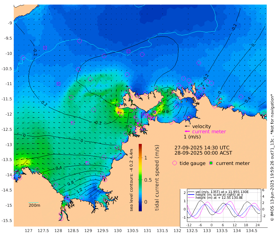 57cm/s 80T +4cm/s rms + 6cm/s 51T. Darwin_C1 52m 60cm/s 90T +4cm/s rms + 7cm/s -161T. Darwin_CW1 22m 15cm/s 68T +4cm/s rms + 8cm/s 61T. Darwin_CW2 34m 41cm/s 47T +3cm/s rms + 9cm/s 98T. Darwin_CW3 22m 46cm/s 92T +5cm/s rms + 7cm/s 88T. Darwin_C3 56m 31cm/s 67T +2cm/s rms + 9cm/s -126T. Darwin_CTbW 22m 4cm/s -17T +9cm/s rms + 2cm/s -110T. NWSLYN 196m 38cm/s -82T +1cm/s rms + 1cm/s -47T. DARBGF 30m 8cm/s -119T +7cm/s rms + 2cm/s -137T. ITFTIS 464m 8cm/s -78T +9cm/s rms + 1cm/s 74T. ITFMHB 146m 29cm/s -37T +4cm/s rms + 1cm/s -134T. ITFJBG 61m 30cm/s -57T +6cm/s rms + 4cm/s 121T. ITFFTB 108m 53cm/s -53T +4cm/s rms + 3cm/s 80T. NRSDAR 19m 75cm Carronade Island 81cm Guy Point 79cm Napier Broome Bay 86cm Lesueur Island 102cm Reveley Island 63cm Rocky Island 155cm Cape Domett 146cm Lacrosse Island 198cm Adolphus Island 241cm Pender Point 274cm Wyndham -7cm The Boxers -25cm Unnamed Shoal -18cm Loxton Shoal 147cm Pelican Island -25cm Calder Shoal -23cm Evans Shoal 273cm Quoin Island 84cm Port Keats 81cm Jones Point 358cm Catfish Island 38cm Cape Scott Offshore -59cm Cape Ford 27cm Anson Bay -38cm Goodrich Bank 18cm Peron Island North -1cm Point Jenny -5cm Native Point 6cm Fish Reef 9cm Tapa Bay -23cm Point Fawcett (Offshore) 6cm Burge Point -14cm Munkunuwa -15cm Beagle A 10cm Parsons Bank 8cm Fenton Patches -28cm Lynedoch Bank 31cm Hancox Shoal Area 25cm Nightcliff 30cm Darwin 15cm Charles Point Patches 70cm Glyde Point 132cm Chambers Bay 150cm Point Stuart 87cm Cape Hotham 117cm Christine Reef 172cm West Alligator Head 198cm East Field Island 106cm Two Hills Bay -11cm Newby Shoal 90cm Camp Point 4cm Medina Inlet South -44cm South Barlow Point -39cm St. Asaph Bay -43cm Cape Van Dieman -42cm Snake Bay -30cm Cache Point -6cm Echo Shoal -15cm Point Jahleel (Off) 17cm Cape Don -18cm Port Essington -18cm Smith Point - West -17cm NW Peacock Island -19cm North Of Jones Shoal -7cm Peacock Island -6cm Point David -19cm D'urville Point -18cm Money Shoal -3cm Copeland Island -1cm Cape Cockburn -4cm One Tree Point 12cm Hogmany Shoal -1cm New Year Island - West 0cm Grant Island 17cm Aurari Bay 34cm Cuthbert Point 13cm North Goulburn Island 47cm Paxie Shoal 52cm Entrance Island 78cm Yabooma Island