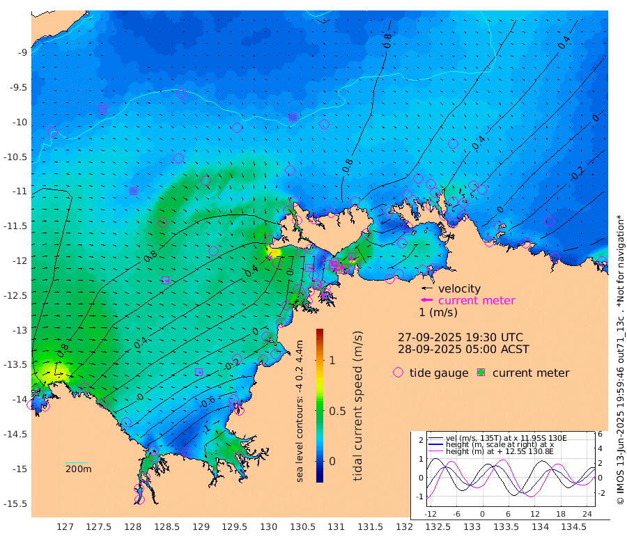 61cm/s -100T +4cm/s rms + 6cm/s 51T. Darwin_C1 52m 46cm/s -93T +4cm/s rms + 7cm/s -161T. Darwin_CW1 22m 20cm/s -106T +4cm/s rms + 8cm/s 61T. Darwin_CW2 34m 40cm/s -136T +3cm/s rms + 9cm/s 98T. Darwin_CW3 22m 51cm/s -90T +5cm/s rms + 7cm/s 88T. Darwin_C3 56m 34cm/s -116T +2cm/s rms + 9cm/s -126T. Darwin_CTbW 22m 8cm/s 130T +9cm/s rms + 2cm/s -110T. NWSLYN 196m 29cm/s 99T +1cm/s rms + 1cm/s -47T. DARBGF 30m 12cm/s 48T +7cm/s rms + 2cm/s -137T. ITFTIS 464m 12cm/s 86T +9cm/s rms + 1cm/s 74T. ITFMHB 146m 20cm/s 120T +4cm/s rms + 1cm/s -134T. ITFJBG 61m 29cm/s 106T +6cm/s rms + 4cm/s 121T. ITFFTB 108m 33cm/s 134T +4cm/s rms + 3cm/s 80T. NRSDAR 19m 65cm Carronade Island 62cm Guy Point 67cm Napier Broome Bay 40cm Lesueur Island -37cm Reveley Island -30cm Rocky Island -89cm Cape Domett -68cm Lacrosse Island -132cm Adolphus Island -135cm Pender Point -146cm Wyndham 82cm The Boxers 88cm Unnamed Shoal 95cm Loxton Shoal -103cm Pelican Island 95cm Calder Shoal 84cm Evans Shoal -200cm Quoin Island -51cm Port Keats -51cm Jones Point -233cm Catfish Island -4cm Cape Scott Offshore 113cm Cape Ford -7cm Anson Bay 86cm Goodrich Bank 10cm Peron Island North 25cm Point Jenny 29cm Native Point 17cm Fish Reef 12cm Tapa Bay 69cm Point Fawcett (Offshore) 9cm Burge Point 14cm Munkunuwa 48cm Beagle A -12cm Parsons Bank 11cm Fenton Patches 77cm Lynedoch Bank -22cm Hancox Shoal Area -14cm Nightcliff -20cm Darwin 5cm Charles Point Patches -38cm Glyde Point -83cm Chambers Bay -92cm Point Stuart -47cm Cape Hotham -70cm Christine Reef -109cm West Alligator Head -122cm East Field Island -58cm Two Hills Bay 76cm Newby Shoal -42cm Camp Point 10cm Medina Inlet South 72cm South Barlow Point 83cm St. Asaph Bay 89cm Cape Van Dieman 86cm Snake Bay 82cm Cache Point 93cm Echo Shoal 61cm Point Jahleel (Off) 17cm Cape Don 50cm Port Essington 48cm Smith Point - West 48cm NW Peacock Island 58cm North Of Jones Shoal 19cm Peacock Island 24cm Point David 44cm D'urville Point 47cm Money Shoal 17cm Copeland Island 24cm Cape Cockburn 25cm One Tree Point 21cm Hogmany Shoal 28cm New Year Island - West 22cm Grant Island -6cm Aurari Bay -28cm Cuthbert Point 1cm North Goulburn Island -35cm Paxie Shoal -55cm Entrance Island -92cm Yabooma Island