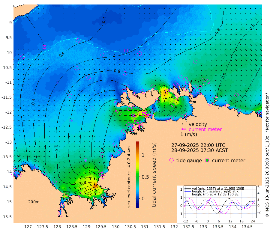 107cm/s 79T +4cm/s rms + 6cm/s 51T. Darwin_C1 52m 69cm/s 85T +4cm/s rms + 7cm/s -161T. Darwin_CW1 22m 61cm/s 74T +4cm/s rms + 8cm/s 61T. Darwin_CW2 34m 31cm/s 56T +3cm/s rms + 9cm/s 98T. Darwin_CW3 22m 74cm/s 88T +5cm/s rms + 7cm/s 88T. Darwin_C3 56m 72cm/s 63T +2cm/s rms + 9cm/s -126T. Darwin_CTbW 22m 5cm/s 90T +9cm/s rms + 2cm/s -110T. NWSLYN 196m 47cm/s 89T +1cm/s rms + 1cm/s -47T. DARBGF 30m 8cm/s 15T +7cm/s rms + 2cm/s -137T. ITFTIS 464m 5cm/s 49T +9cm/s rms + 1cm/s 74T. ITFMHB 146m 26cm/s 157T +4cm/s rms + 1cm/s -134T. ITFJBG 61m 16cm/s 123T +6cm/s rms + 4cm/s 121T. ITFFTB 108m 43cm/s 117T +4cm/s rms + 3cm/s 80T. NRSDAR 19m -60cm Carronade Island -61cm Guy Point -59cm Napier Broome Bay 18cm Lesueur Island 55cm Reveley Island 6cm Rocky Island 67cm Cape Domett 60cm Lacrosse Island 34cm Adolphus Island -45cm Pender Point -83cm Wyndham 62cm The Boxers 96cm Unnamed Shoal 31cm Loxton Shoal 84cm Pelican Island 67cm Calder Shoal 39cm Evans Shoal 9cm Quoin Island 134cm Port Keats 122cm Jones Point -126cm Catfish Island 128cm Cape Scott Offshore 197cm Cape Ford 152cm Anson Bay 64cm Goodrich Bank 142cm Peron Island North 146cm Point Jenny 149cm Native Point 147cm Fish Reef 161cm Tapa Bay 111cm Point Fawcett (Offshore) 168cm Burge Point 163cm Munkunuwa 138cm Beagle A 166cm Parsons Bank 158cm Fenton Patches 51cm Lynedoch Bank 150cm Hancox Shoal Area 164cm Nightcliff 173cm Darwin 170cm Charles Point Patches 89cm Glyde Point 5cm Chambers Bay -13cm Point Stuart 56cm Cape Hotham 10cm Christine Reef -26cm West Alligator Head -59cm East Field Island 21cm Two Hills Bay 113cm Newby Shoal 34cm Camp Point 162cm Medina Inlet South 118cm South Barlow Point 94cm St. Asaph Bay 70cm Cape Van Dieman 82cm Snake Bay 63cm Cache Point 0cm Echo Shoal 63cm Point Jahleel (Off) 65cm Cape Don 69cm Port Essington 69cm Smith Point - West 68cm NW Peacock Island 61cm North Of Jones Shoal 22cm Peacock Island 75cm Point David 73cm D'urville Point 64cm Money Shoal 71cm Copeland Island 90cm Cape Cockburn 71cm One Tree Point 76cm Hogmany Shoal 72cm New Year Island - West 75cm Grant Island 66cm Aurari Bay 58cm Cuthbert Point 71cm North Goulburn Island 57cm Paxie Shoal 52cm Entrance Island 35cm Yabooma Island