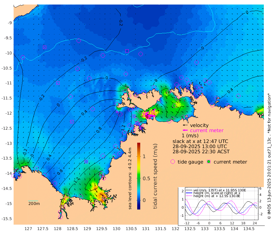160cm/s 78T +4cm/s rms + 6cm/s 51T. Darwin_C1 52m 105cm/s 93T +4cm/s rms + 7cm/s -161T. Darwin_CW1 22m 83cm/s 72T +4cm/s rms + 8cm/s 61T. Darwin_CW2 34m 84cm/s 47T +3cm/s rms + 9cm/s 98T. Darwin_CW3 22m 128cm/s 89T +5cm/s rms + 7cm/s 88T. Darwin_C3 56m 87cm/s 66T +2cm/s rms + 9cm/s -126T. Darwin_CTbW 22m 2cm/s -19T +9cm/s rms + 2cm/s -110T. NWSLYN 196m 15cm/s 67T +1cm/s rms + 1cm/s -47T. DARBGF 30m 7cm/s -132T +7cm/s rms + 2cm/s -137T. ITFTIS 464m 13cm/s -144T +9cm/s rms + 1cm/s 74T. ITFMHB 146m 12cm/s -113T +4cm/s rms + 1cm/s -134T. ITFJBG 61m 12cm/s -108T +6cm/s rms + 4cm/s 121T. ITFFTB 108m 10cm/s 63T +4cm/s rms + 3cm/s 80T. NRSDAR 19m -26cm Carronade Island -19cm Guy Point -26cm Napier Broome Bay 39cm Lesueur Island 119cm Reveley Island 79cm Rocky Island 173cm Cape Domett 155cm Lacrosse Island 192cm Adolphus Island 148cm Pender Point 139cm Wyndham 12cm The Boxers 5cm Unnamed Shoal -21cm Loxton Shoal 192cm Pelican Island 0cm Calder Shoal -13cm Evans Shoal 237cm Quoin Island 173cm Port Keats 153cm Jones Point 206cm Catfish Island 127cm Cape Scott Offshore 71cm Cape Ford 138cm Anson Bay -8cm Goodrich Bank 115cm Peron Island North 112cm Point Jenny 110cm Native Point 113cm Fish Reef 131cm Tapa Bay 49cm Point Fawcett (Offshore) 128cm Burge Point 119cm Munkunuwa 86cm Beagle A 137cm Parsons Bank 126cm Fenton Patches -13cm Lynedoch Bank 144cm Hancox Shoal Area 150cm Nightcliff 152cm Darwin 135cm Charles Point Patches 114cm Glyde Point 104cm Chambers Bay 96cm Point Stuart 98cm Cape Hotham 102cm Christine Reef 107cm West Alligator Head 98cm East Field Island 87cm Two Hills Bay 52cm Newby Shoal 80cm Camp Point 125cm Medina Inlet South 38cm South Barlow Point 21cm St. Asaph Bay -8cm Cape Van Dieman -4cm Snake Bay -4cm Cache Point -35cm Echo Shoal 11cm Point Jahleel (Off) 44cm Cape Don 13cm Port Essington 18cm Smith Point - West 13cm NW Peacock Island 4cm North Of Jones Shoal 2cm Peacock Island 19cm Point David 17cm D'urville Point 3cm Money Shoal 21cm Copeland Island 26cm Cape Cockburn 19cm One Tree Point 30cm Hogmany Shoal 19cm New Year Island - West 24cm Grant Island 33cm Aurari Bay 47cm Cuthbert Point 32cm North Goulburn Island 48cm Paxie Shoal 56cm Entrance Island 64cm Yabooma Island