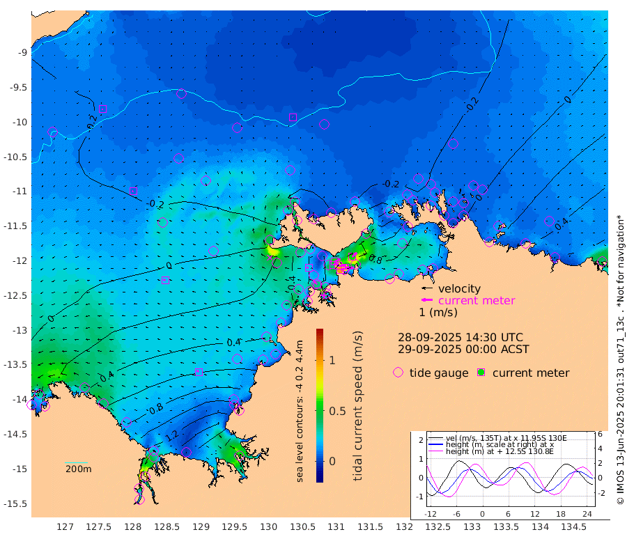 98cm/s 79T +4cm/s rms + 6cm/s 51T. Darwin_C1 52m 77cm/s 92T +4cm/s rms + 7cm/s -161T. Darwin_CW1 22m 38cm/s 69T +4cm/s rms + 8cm/s 61T. Darwin_CW2 34m 56cm/s 48T +3cm/s rms + 9cm/s 98T. Darwin_CW3 22m 69cm/s 90T +5cm/s rms + 7cm/s 88T. Darwin_C3 56m 57cm/s 66T +2cm/s rms + 9cm/s -126T. Darwin_CTbW 22m 3cm/s -20T +9cm/s rms + 2cm/s -110T. NWSLYN 196m 21cm/s -75T +1cm/s rms + 1cm/s -47T. DARBGF 30m 7cm/s -125T +7cm/s rms + 2cm/s -137T. ITFTIS 464m 8cm/s -112T +9cm/s rms + 1cm/s 74T. ITFMHB 146m 19cm/s -46T +4cm/s rms + 1cm/s -134T. ITFJBG 61m 21cm/s -65T +6cm/s rms + 4cm/s 121T. ITFFTB 108m 36cm/s -50T +4cm/s rms + 3cm/s 80T. NRSDAR 19m 55cm Carronade Island 61cm Guy Point 59cm Napier Broome Bay 77cm Lesueur Island 107cm Reveley Island 75cm Rocky Island 160cm Cape Domett 149cm Lacrosse Island 196cm Adolphus Island 212cm Pender Point 234cm Wyndham 5cm The Boxers -12cm Unnamed Shoal -14cm Loxton Shoal 160cm Pelican Island -12cm Calder Shoal -17cm Evans Shoal 259cm Quoin Island 112cm Port Keats 101cm Jones Point 323cm Catfish Island 68cm Cape Scott Offshore -26cm Cape Ford 64cm Anson Bay -25cm Goodrich Bank 48cm Peron Island North 38cm Point Jenny 35cm Native Point 41cm Fish Reef 48cm Tapa Bay 3cm Point Fawcett (Offshore) 44cm Burge Point 26cm Munkunuwa 21cm Beagle A 48cm Parsons Bank 47cm Fenton Patches -20cm Lynedoch Bank 66cm Hancox Shoal Area 66cm Nightcliff 67cm Darwin 53cm Charles Point Patches 84cm Glyde Point 125cm Chambers Bay 132cm Point Stuart 89cm Cape Hotham 116cm Christine Reef 151cm West Alligator Head 167cm East Field Island 100cm Two Hills Bay 16cm Newby Shoal 88cm Camp Point 42cm Medina Inlet South -16cm South Barlow Point -17cm St. Asaph Bay -29cm Cape Van Dieman -28cm Snake Bay -18cm Cache Point -8cm Echo Shoal -4cm Point Jahleel (Off) 27cm Cape Don -7cm Port Essington -4cm Smith Point - West -6cm NW Peacock Island -9cm North Of Jones Shoal -3cm Peacock Island 0cm Point David -6cm D'urville Point -10cm Money Shoal 3cm Copeland Island 6cm Cape Cockburn 3cm One Tree Point 15cm Hogmany Shoal 6cm New Year Island - West 7cm Grant Island 22cm Aurari Bay 38cm Cuthbert Point 18cm North Goulburn Island 46cm Paxie Shoal 50cm Entrance Island 68cm Yabooma Island