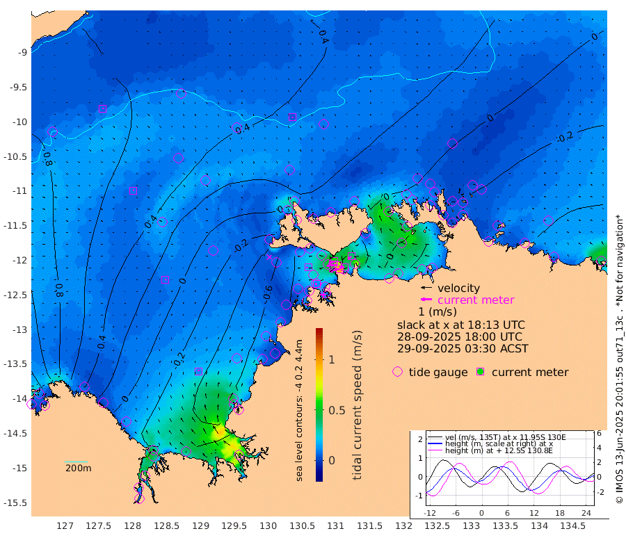 94cm/s -102T +4cm/s rms + 6cm/s 51T. Darwin_C1 52m 43cm/s -89T +4cm/s rms + 7cm/s -161T. Darwin_CW1 22m 58cm/s -109T +4cm/s rms + 8cm/s 61T. Darwin_CW2 34m 38cm/s -125T +3cm/s rms + 9cm/s 98T. Darwin_CW3 22m 69cm/s -91T +5cm/s rms + 7cm/s 88T. Darwin_C3 56m 55cm/s -115T +2cm/s rms + 9cm/s -126T. Darwin_CTbW 22m 5cm/s 128T +9cm/s rms + 2cm/s -110T. NWSLYN 196m 16cm/s -98T +1cm/s rms + 1cm/s -47T. DARBGF 30m 7cm/s 42T +7cm/s rms + 2cm/s -137T. ITFTIS 464m 8cm/s 59T +9cm/s rms + 1cm/s 74T. ITFMHB 146m 13cm/s 10T +4cm/s rms + 1cm/s -134T. ITFJBG 61m 10cm/s 48T +6cm/s rms + 4cm/s 121T. ITFFTB 108m 12cm/s -94T +4cm/s rms + 3cm/s 80T. NRSDAR 19m 130cm Carronade Island 129cm Guy Point 135cm Napier Broome Bay 78cm Lesueur Island -10cm Reveley Island 1cm Rocky Island -33cm Cape Domett -16cm Lacrosse Island -40cm Adolphus Island 19cm Pender Point 42cm Wyndham 51cm The Boxers 35cm Unnamed Shoal 69cm Loxton Shoal -59cm Pelican Island 51cm Calder Shoal 51cm Evans Shoal -55cm Quoin Island -64cm Port Keats -57cm Jones Point 28cm Catfish Island -41cm Cape Scott Offshore -4cm Cape Ford -59cm Anson Bay 37cm Goodrich Bank -44cm Peron Island North -41cm Point Jenny -41cm Native Point -43cm Fish Reef -56cm Tapa Bay 6cm Point Fawcett (Offshore) -61cm Burge Point -67cm Munkunuwa -21cm Beagle A -81cm Parsons Bank -54cm Fenton Patches 39cm Lynedoch Bank -74cm Hancox Shoal Area -76cm Nightcliff -78cm Darwin -59cm Charles Point Patches -36cm Glyde Point -11cm Chambers Bay -3cm Point Stuart -23cm Cape Hotham -12cm Christine Reef -2cm West Alligator Head 16cm East Field Island -9cm Two Hills Bay 20cm Newby Shoal -5cm Camp Point -59cm Medina Inlet South -5cm South Barlow Point 18cm St. Asaph Bay 33cm Cape Van Dieman 26cm Snake Bay 37cm Cache Point 88cm Echo Shoal 23cm Point Jahleel (Off) -2cm Cape Don 10cm Port Essington 7cm Smith Point - West 7cm NW Peacock Island 20cm North Of Jones Shoal 5cm Peacock Island -12cm Point David 1cm D'urville Point 11cm Money Shoal -15cm Copeland Island -16cm Cape Cockburn -7cm One Tree Point -7cm Hogmany Shoal -3cm New Year Island - West -11cm Grant Island -24cm Aurari Bay -32cm Cuthbert Point -21cm North Goulburn Island -31cm Paxie Shoal -46cm Entrance Island -61cm Yabooma Island