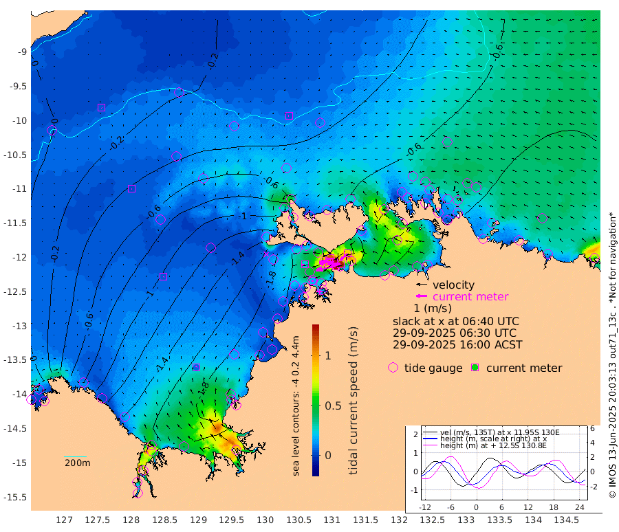 189cm/s -102T +4cm/s rms + 6cm/s 51T. Darwin_C1 52m 122cm/s -90T +4cm/s rms + 7cm/s -161T. Darwin_CW1 22m 91cm/s -107T +4cm/s rms + 8cm/s 61T. Darwin_CW2 34m 86cm/s -131T +3cm/s rms + 9cm/s 98T. Darwin_CW3 22m 133cm/s -90T +5cm/s rms + 7cm/s 88T. Darwin_C3 56m 112cm/s -115T +2cm/s rms + 9cm/s -126T. Darwin_CTbW 22m 5cm/s -103T +9cm/s rms + 2cm/s -110T. NWSLYN 196m 27cm/s -102T +1cm/s rms + 1cm/s -47T. DARBGF 30m 5cm/s 140T +7cm/s rms + 2cm/s -137T. ITFTIS 464m 3cm/s 82T +9cm/s rms + 1cm/s 74T. ITFMHB 146m 8cm/s 38T +4cm/s rms + 1cm/s -134T. ITFJBG 61m 5cm/s 89T +6cm/s rms + 4cm/s 121T. ITFFTB 108m 15cm/s -93T +4cm/s rms + 3cm/s 80T. NRSDAR 19m -3cm Carronade Island -10cm Guy Point -9cm Napier Broome Bay -90cm Lesueur Island -149cm Reveley Island -79cm Rocky Island -203cm Cape Domett -185cm Lacrosse Island -206cm Adolphus Island -153cm Pender Point -137cm Wyndham -67cm The Boxers -80cm Unnamed Shoal -25cm Loxton Shoal -218cm Pelican Island -56cm Calder Shoal -28cm Evans Shoal -232cm Quoin Island -219cm Port Keats -197cm Jones Point -152cm Catfish Island -173cm Cape Scott Offshore -168cm Cape Ford -190cm Anson Bay -43cm Goodrich Bank -169cm Peron Island North -167cm Point Jenny -168cm Native Point -166cm Fish Reef -190cm Tapa Bay -104cm Point Fawcett (Offshore) -190cm Burge Point -171cm Munkunuwa -143cm Beagle A -193cm Parsons Bank -183cm Fenton Patches -34cm Lynedoch Bank -196cm Hancox Shoal Area -203cm Nightcliff -214cm Darwin -200cm Charles Point Patches -154cm Glyde Point -113cm Chambers Bay -102cm Point Stuart -127cm Cape Hotham -113cm Christine Reef -107cm West Alligator Head -90cm East Field Island -106cm Two Hills Bay -121cm Newby Shoal -108cm Camp Point -183cm Medina Inlet South -97cm South Barlow Point -74cm St. Asaph Bay -45cm Cape Van Dieman -56cm Snake Bay -48cm Cache Point 2cm Echo Shoal -59cm Point Jahleel (Off) -86cm Cape Don -62cm Port Essington -65cm Smith Point - West -62cm NW Peacock Island -50cm North Of Jones Shoal -18cm Peacock Island -73cm Point David -67cm D'urville Point -54cm Money Shoal -72cm Copeland Island -90cm Cape Cockburn -71cm One Tree Point -93cm Hogmany Shoal -75cm New Year Island - West -80cm Grant Island -79cm Aurari Bay -90cm Cuthbert Point -83cm North Goulburn Island -94cm Paxie Shoal -94cm Entrance Island -89cm Yabooma Island