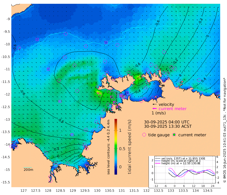 30cm/s -104T +4cm/s rms + 6cm/s 51T. Darwin_C1 52m 28cm/s -84T +4cm/s rms + 7cm/s -161T. Darwin_CW1 22m 35cm/s -105T +4cm/s rms + 8cm/s 61T. Darwin_CW2 34m 3cm/s -32T +3cm/s rms + 9cm/s 98T. Darwin_CW3 22m 48cm/s -93T +5cm/s rms + 7cm/s 88T. Darwin_C3 56m 14cm/s -115T +2cm/s rms + 9cm/s -126T. Darwin_CTbW 22m 6cm/s -46T +9cm/s rms + 2cm/s -110T. NWSLYN 196m 42cm/s -90T +1cm/s rms + 1cm/s -47T. DARBGF 30m 7cm/s -119T +7cm/s rms + 2cm/s -137T. ITFTIS 464m 12cm/s -31T +9cm/s rms + 1cm/s 74T. ITFMHB 146m 19cm/s -27T +4cm/s rms + 1cm/s -134T. ITFJBG 61m 24cm/s -55T +6cm/s rms + 4cm/s 121T. ITFFTB 108m 45cm/s -58T +4cm/s rms + 3cm/s 80T. NRSDAR 19m -10cm Carronade Island -14cm Guy Point -11cm Napier Broome Bay -28cm Lesueur Island -31cm Reveley Island -46cm Rocky Island -17cm Cape Domett -14cm Lacrosse Island 17cm Adolphus Island 59cm Pender Point 91cm Wyndham -81cm The Boxers -67cm Unnamed Shoal -80cm Loxton Shoal -16cm Pelican Island -91cm Calder Shoal -76cm Evans Shoal 64cm Quoin Island -63cm Port Keats -50cm Jones Point 171cm Catfish Island -74cm Cape Scott Offshore -210cm Cape Ford -79cm Anson Bay -81cm Goodrich Bank -88cm Peron Island North -103cm Point Jenny -106cm Native Point -98cm Fish Reef -102cm Tapa Bay -102cm Point Fawcett (Offshore) -104cm Burge Point -111cm Munkunuwa -108cm Beagle A -89cm Parsons Bank -99cm Fenton Patches -65cm Lynedoch Bank -74cm Hancox Shoal Area -80cm Nightcliff -88cm Darwin -103cm Charles Point Patches -26cm Glyde Point 45cm Chambers Bay 62cm Point Stuart 4cm Cape Hotham 28cm Christine Reef 74cm West Alligator Head 100cm East Field Island 26cm Two Hills Bay -106cm Newby Shoal 13cm Camp Point -103cm Medina Inlet South -105cm South Barlow Point -100cm St. Asaph Bay -83cm Cape Van Dieman -80cm Snake Bay -75cm Cache Point -60cm Echo Shoal -62cm Point Jahleel (Off) -36cm Cape Don -54cm Port Essington -55cm Smith Point - West -48cm NW Peacock Island -51cm North Of Jones Shoal -16cm Peacock Island -17cm Point David -47cm D'urville Point -37cm Money Shoal -11cm Copeland Island -17cm Cape Cockburn -20cm One Tree Point -16cm Hogmany Shoal -17cm New Year Island - West -18cm Grant Island 15cm Aurari Bay 23cm Cuthbert Point 3cm North Goulburn Island 39cm Paxie Shoal 52cm Entrance Island 93cm Yabooma Island