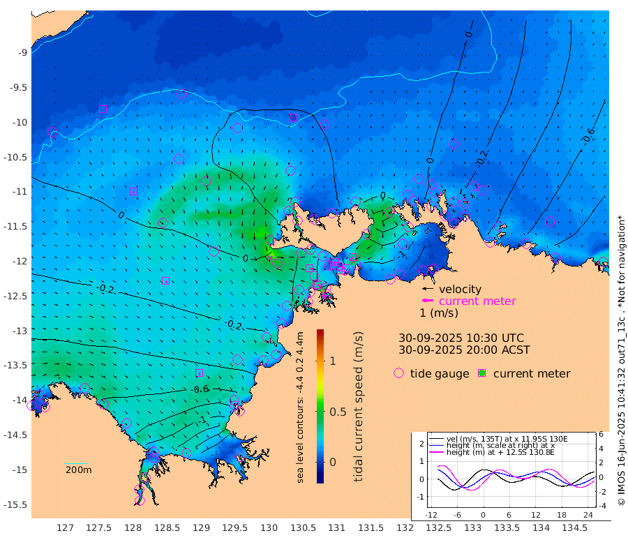 21cm/s -104T +4cm/s rms + 6cm/s 51T. Darwin_C1 52m 21cm/s -94T +4cm/s rms + 7cm/s -161T. Darwin_CW1 22m 12cm/s 68T +4cm/s rms + 8cm/s 61T. Darwin_CW2 34m 36cm/s -144T +3cm/s rms + 9cm/s 98T. Darwin_CW3 22m 2cm/s -5T +5cm/s rms + 7cm/s 88T. Darwin_C3 56m 13cm/s -114T +2cm/s rms + 9cm/s -126T. Darwin_CTbW 22m 3cm/s -135T +9cm/s rms + 2cm/s -110T. NWSLYN 196m 29cm/s 94T +1cm/s rms + 1cm/s -47T. DARBGF 30m 6cm/s 144T +7cm/s rms + 2cm/s -137T. ITFTIS 464m 14cm/s 171T +9cm/s rms + 1cm/s 74T. ITFMHB 146m 22cm/s 153T +4cm/s rms + 1cm/s -134T. ITFJBG 61m 23cm/s 139T +6cm/s rms + 4cm/s 121T. ITFFTB 108m 33cm/s 124T +4cm/s rms + 3cm/s 80T. NRSDAR 19m -73cm Carronade Island -73cm Guy Point -81cm Napier Broome Bay -81cm Lesueur Island -58cm Reveley Island -11cm Rocky Island -94cm Cape Domett -93cm Lacrosse Island -119cm Adolphus Island -160cm Pender Point -192cm Wyndham -8cm The Boxers -17cm Unnamed Shoal 11cm Loxton Shoal -89cm Pelican Island 12cm Calder Shoal 17cm Evans Shoal -166cm Quoin Island -46cm Port Keats -51cm Jones Point -265cm Catfish Island -21cm Cape Scott Offshore 68cm Cape Ford -18cm Anson Bay 18cm Goodrich Bank -3cm Peron Island North 5cm Point Jenny 7cm Native Point 4cm Fish Reef -1cm Tapa Bay 16cm Point Fawcett (Offshore) 4cm Burge Point 30cm Munkunuwa 12cm Beagle A 4cm Parsons Bank 0cm Fenton Patches 9cm Lynedoch Bank -15cm Hancox Shoal Area -12cm Nightcliff -14cm Darwin -7cm Charles Point Patches -54cm Glyde Point -106cm Chambers Bay -115cm Point Stuart -68cm Cape Hotham -87cm Christine Reef -128cm West Alligator Head -152cm East Field Island -82cm Two Hills Bay 1cm Newby Shoal -79cm Camp Point 7cm Medina Inlet South 31cm South Barlow Point 27cm St. Asaph Bay 21cm Cape Van Dieman 18cm Snake Bay 11cm Cache Point -2cm Echo Shoal 2cm Point Jahleel (Off) -23cm Cape Don -1cm Port Essington 2cm Smith Point - West -3cm NW Peacock Island 0cm North Of Jones Shoal -1cm Peacock Island -25cm Point David -2cm D'urville Point -12cm Money Shoal -27cm Copeland Island -32cm Cape Cockburn -23cm One Tree Point -40cm Hogmany Shoal -31cm New Year Island - West -28cm Grant Island -49cm Aurari Bay -59cm Cuthbert Point -42cm North Goulburn Island -77cm Paxie Shoal -77cm Entrance Island -101cm Yabooma Island