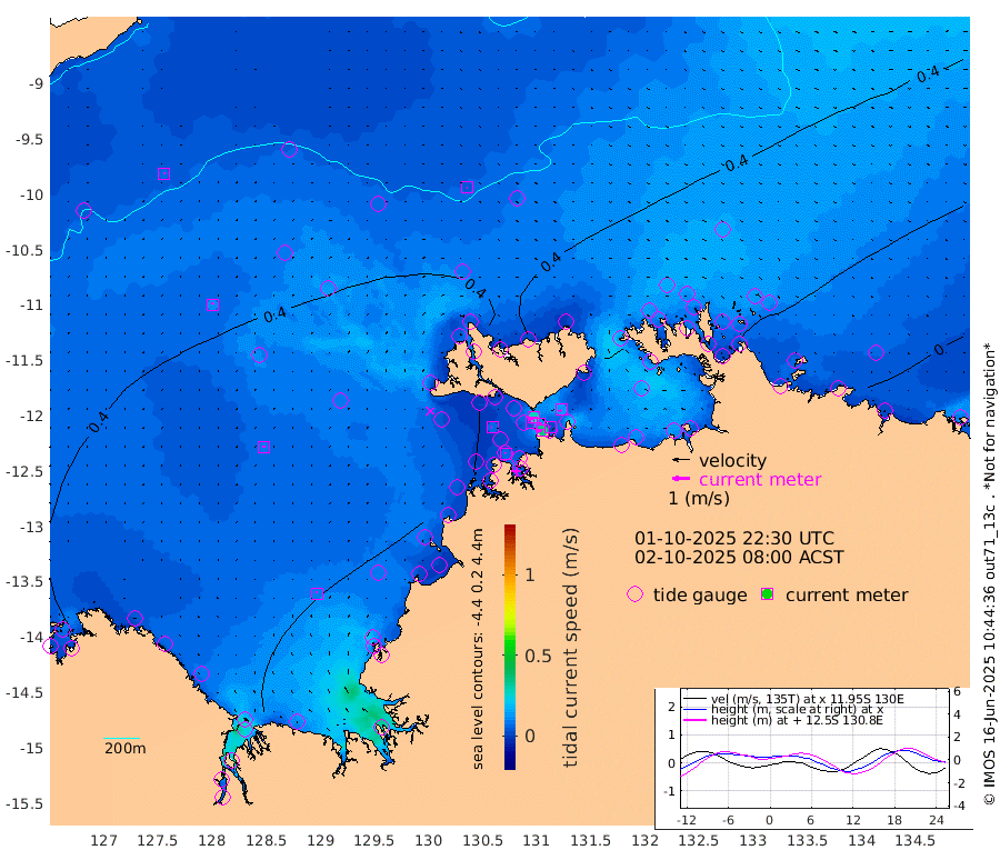 34cm/s -102T +4cm/s rms + 6cm/s 51T. Darwin_C1 52m 2cm/s -57T +4cm/s rms + 7cm/s -161T. Darwin_CW1 22m 5cm/s -130T +4cm/s rms + 8cm/s 61T. Darwin_CW2 34m 14cm/s -127T +3cm/s rms + 9cm/s 98T. Darwin_CW3 22m 12cm/s 90T +5cm/s rms + 7cm/s 88T. Darwin_C3 56m 28cm/s -115T +2cm/s rms + 9cm/s -126T. Darwin_CTbW 22m 5cm/s 111T +9cm/s rms + 2cm/s -110T. NWSLYN 196m 6cm/s -80T +1cm/s rms + 1cm/s -47T. DARBGF 30m 7cm/s 12T +7cm/s rms + 2cm/s -137T. ITFTIS 464m 11cm/s 13T +9cm/s rms + 1cm/s 74T. ITFMHB 146m 10cm/s -16T +4cm/s rms + 1cm/s -134T. ITFJBG 61m 10cm/s -13T +6cm/s rms + 4cm/s 121T. ITFFTB 108m 7cm/s -63T +4cm/s rms + 3cm/s 80T. NRSDAR 19m 28cm Carronade Island 31cm Guy Point 34cm Napier Broome Bay 35cm Lesueur Island 17cm Reveley Island 12cm Rocky Island 22cm Cape Domett 14cm Lacrosse Island 20cm Adolphus Island 36cm Pender Point 30cm Wyndham 40cm The Boxers 37cm Unnamed Shoal 50cm Loxton Shoal 14cm Pelican Island 40cm Calder Shoal 41cm Evans Shoal 13cm Quoin Island 14cm Port Keats 20cm Jones Point -40cm Catfish Island 10cm Cape Scott Offshore 89cm Cape Ford 7cm Anson Bay 42cm Goodrich Bank 19cm Peron Island North 11cm Point Jenny 13cm Native Point 14cm Fish Reef 14cm Tapa Bay 27cm Point Fawcett (Offshore) 17cm Burge Point 14cm Munkunuwa 13cm Beagle A 15cm Parsons Bank 8cm Fenton Patches 41cm Lynedoch Bank 10cm Hancox Shoal Area -4cm Nightcliff 22cm Darwin 31cm Charles Point Patches 12cm Glyde Point -6cm Chambers Bay -3cm Point Stuart 5cm Cape Hotham -6cm Christine Reef -8cm West Alligator Head -9cm East Field Island 3cm Two Hills Bay 29cm Newby Shoal 11cm Camp Point 19cm Medina Inlet South 32cm South Barlow Point 32cm St. Asaph Bay 41cm Cape Van Dieman 42cm Snake Bay 38cm Cache Point 40cm Echo Shoal 31cm Point Jahleel (Off) 22cm Cape Don 35cm Port Essington 28cm Smith Point - West 31cm NW Peacock Island 31cm North Of Jones Shoal 10cm Peacock Island 28cm Point David 29cm D'urville Point 34cm Money Shoal 24cm Copeland Island 30cm Cape Cockburn 28cm One Tree Point 39cm Hogmany Shoal 28cm New Year Island - West 29cm Grant Island 12cm Aurari Bay 16cm Cuthbert Point 21cm North Goulburn Island 16cm Paxie Shoal 7cm Entrance Island -6cm Yabooma Island