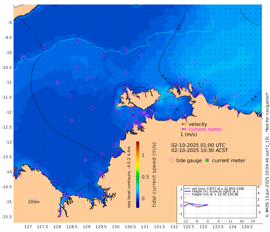23cm/s 78T +4cm/s rms + 6cm/s 51T. Darwin_C1 52m 5cm/s -75T +4cm/s rms + 7cm/s -161T. Darwin_CW1 22m 4cm/s -123T +4cm/s rms + 8cm/s 61T. Darwin_CW2 34m 5cm/s 75T +3cm/s rms + 9cm/s 98T. Darwin_CW3 22m 2cm/s -110T +5cm/s rms + 7cm/s 88T. Darwin_C3 56m 14cm/s 59T +2cm/s rms + 9cm/s -126T. Darwin_CTbW 22m 5cm/s 132T +9cm/s rms + 2cm/s -110T. NWSLYN 196m 1cm/s -110T +1cm/s rms + 1cm/s -47T. DARBGF 30m 3cm/s -11T +7cm/s rms + 2cm/s -137T. ITFTIS 464m 6cm/s 3T +9cm/s rms + 1cm/s 74T. ITFMHB 146m 4cm/s -17T +4cm/s rms + 1cm/s -134T. ITFJBG 61m 4cm/s -26T +6cm/s rms + 4cm/s 121T. ITFFTB 108m 4cm/s -43T +4cm/s rms + 3cm/s 80T. NRSDAR 19m -1cm Carronade Island 2cm Guy Point 1cm Napier Broome Bay 3cm Lesueur Island -2cm Reveley Island -18cm Rocky Island -15cm Cape Domett -20cm Lacrosse Island -20cm Adolphus Island -20cm Pender Point -25cm Wyndham 17cm The Boxers 33cm Unnamed Shoal 21cm Loxton Shoal -10cm Pelican Island 16cm Calder Shoal 22cm Evans Shoal -36cm Quoin Island -10cm Port Keats -5cm Jones Point -70cm Catfish Island -2cm Cape Scott Offshore 26cm Cape Ford -1cm Anson Bay 29cm Goodrich Bank 7cm Peron Island North 4cm Point Jenny 6cm Native Point -4cm Fish Reef 7cm Tapa Bay 12cm Point Fawcett (Offshore) -1cm Burge Point 4cm Munkunuwa -3cm Beagle A 14cm Parsons Bank -6cm Fenton Patches 27cm Lynedoch Bank 11cm Hancox Shoal Area -5cm Nightcliff 7cm Darwin 10cm Charles Point Patches 3cm Glyde Point -11cm Chambers Bay -8cm Point Stuart 1cm Cape Hotham -6cm Christine Reef -13cm West Alligator Head -21cm East Field Island 3cm Two Hills Bay 9cm Newby Shoal 1cm Camp Point 3cm Medina Inlet South 21cm South Barlow Point 17cm St. Asaph Bay 30cm Cape Van Dieman 35cm Snake Bay 28cm Cache Point 8cm Echo Shoal 27cm Point Jahleel (Off) 23cm Cape Don 36cm Port Essington 35cm Smith Point - West 41cm NW Peacock Island 30cm North Of Jones Shoal 12cm Peacock Island 53cm Point David 42cm D'urville Point 40cm Money Shoal 51cm Copeland Island 60cm Cape Cockburn 46cm One Tree Point 71cm Hogmany Shoal 48cm New Year Island - West 54cm Grant Island 44cm Aurari Bay 53cm Cuthbert Point 51cm North Goulburn Island 49cm Paxie Shoal 50cm Entrance Island 43cm Yabooma Island