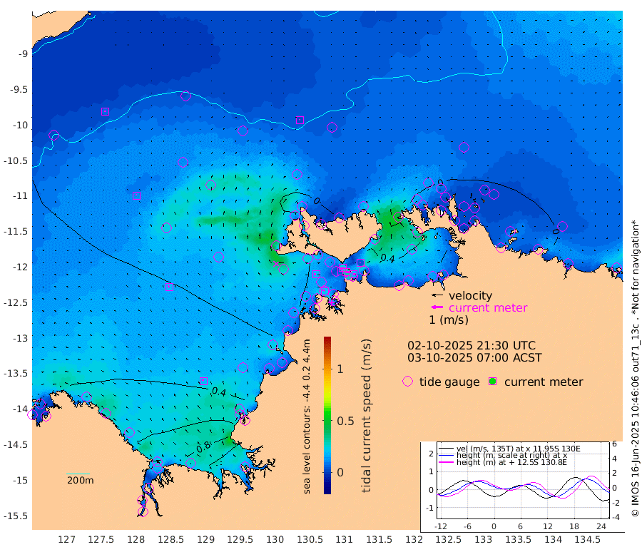 29cm/s -101T +4cm/s rms + 6cm/s 51T. Darwin_C1 52m 19cm/s 87T +4cm/s rms + 7cm/s -161T. Darwin_CW1 22m 5cm/s 86T +4cm/s rms + 8cm/s 61T. Darwin_CW2 34m 4cm/s -28T +3cm/s rms + 9cm/s 98T. Darwin_CW3 22m 30cm/s 91T +5cm/s rms + 7cm/s 88T. Darwin_C3 56m 23cm/s -117T +2cm/s rms + 9cm/s -126T. Darwin_CTbW 22m 3cm/s 60T +9cm/s rms + 2cm/s -110T. NWSLYN 196m 18cm/s -79T +1cm/s rms + 1cm/s -47T. DARBGF 30m 6cm/s -4T +7cm/s rms + 2cm/s -137T. ITFTIS 464m 12cm/s -1T +9cm/s rms + 1cm/s 74T. ITFMHB 146m 19cm/s -29T +4cm/s rms + 1cm/s -134T. ITFJBG 61m 19cm/s -35T +6cm/s rms + 4cm/s 121T. ITFFTB 108m 21cm/s -54T +4cm/s rms + 3cm/s 80T. NRSDAR 19m 41cm Carronade Island 44cm Guy Point 51cm Napier Broome Bay 56cm Lesueur Island 53cm Reveley Island 42cm Rocky Island 94cm Cape Domett 79cm Lacrosse Island 110cm Adolphus Island 139cm Pender Point 144cm Wyndham 27cm The Boxers 10cm Unnamed Shoal 26cm Loxton Shoal 81cm Pelican Island 18cm Calder Shoal 14cm Evans Shoal 140cm Quoin Island 62cm Port Keats 63cm Jones Point 114cm Catfish Island 30cm Cape Scott Offshore 59cm Cape Ford 27cm Anson Bay 10cm Goodrich Bank 24cm Peron Island North 16cm Point Jenny 16cm Native Point 24cm Fish Reef 23cm Tapa Bay 12cm Point Fawcett (Offshore) 32cm Burge Point 15cm Munkunuwa 14cm Beagle A 22cm Parsons Bank 25cm Fenton Patches 14cm Lynedoch Bank 25cm Hancox Shoal Area 19cm Nightcliff 44cm Darwin 45cm Charles Point Patches 42cm Glyde Point 50cm Chambers Bay 52cm Point Stuart 37cm Cape Hotham 40cm Christine Reef 56cm West Alligator Head 69cm East Field Island 37cm Two Hills Bay 23cm Newby Shoal 48cm Camp Point 29cm Medina Inlet South 8cm South Barlow Point 8cm St. Asaph Bay 7cm Cape Van Dieman 7cm Snake Bay 8cm Cache Point 24cm Echo Shoal 8cm Point Jahleel (Off) 17cm Cape Don 10cm Port Essington 1cm Smith Point - West 2cm NW Peacock Island 6cm North Of Jones Shoal 1cm Peacock Island -1cm Point David -1cm D'urville Point 10cm Money Shoal -2cm Copeland Island 0cm Cape Cockburn 5cm One Tree Point 4cm Hogmany Shoal 4cm New Year Island - West 2cm Grant Island -2cm Aurari Bay 5cm Cuthbert Point 2cm North Goulburn Island 16cm Paxie Shoal 8cm Entrance Island 10cm Yabooma Island