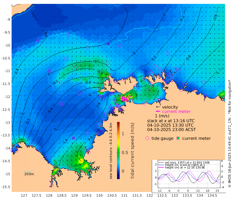 106cm/s -102T +4cm/s rms + 6cm/s 51T. Darwin_C1 52m 84cm/s -90T +4cm/s rms + 7cm/s -161T. Darwin_CW1 22m 66cm/s -106T +4cm/s rms + 8cm/s 61T. Darwin_CW2 34m 61cm/s -137T +3cm/s rms + 9cm/s 98T. Darwin_CW3 22m 98cm/s -90T +5cm/s rms + 7cm/s 88T. Darwin_C3 56m 61cm/s -115T +2cm/s rms + 9cm/s -126T. Darwin_CTbW 22m 3cm/s -111T +9cm/s rms + 2cm/s -110T. NWSLYN 196m 20cm/s -102T +1cm/s rms + 1cm/s -47T. DARBGF 30m 7cm/s 154T +7cm/s rms + 2cm/s -137T. ITFTIS 464m 8cm/s 161T +9cm/s rms + 1cm/s 74T. ITFMHB 146m 7cm/s 16T +4cm/s rms + 1cm/s -134T. ITFJBG 61m 6cm/s 117T +6cm/s rms + 4cm/s 121T. ITFFTB 108m 14cm/s -80T +4cm/s rms + 3cm/s 80T. NRSDAR 19m 36cm Carronade Island 34cm Guy Point 35cm Napier Broome Bay -46cm Lesueur Island -116cm Reveley Island -29cm Rocky Island -181cm Cape Domett -163cm Lacrosse Island -181cm Adolphus Island -138cm Pender Point -122cm Wyndham -20cm The Boxers -34cm Unnamed Shoal 39cm Loxton Shoal -205cm Pelican Island -1cm Calder Shoal 27cm Evans Shoal -210cm Quoin Island -199cm Port Keats -197cm Jones Point -174cm Catfish Island -147cm Cape Scott Offshore -152cm Cape Ford -171cm Anson Bay 6cm Goodrich Bank -135cm Peron Island North -147cm Point Jenny -146cm Native Point -148cm Fish Reef -169cm Tapa Bay -66cm Point Fawcett (Offshore) -176cm Burge Point -144cm Munkunuwa -121cm Beagle A -167cm Parsons Bank -170cm Fenton Patches 14cm Lynedoch Bank -175cm Hancox Shoal Area -184cm Nightcliff -192cm Darwin -178cm Charles Point Patches -144cm Glyde Point -126cm Chambers Bay -108cm Point Stuart -119cm Cape Hotham -110cm Christine Reef -113cm West Alligator Head -107cm East Field Island -94cm Two Hills Bay -71cm Newby Shoal -109cm Camp Point -156cm Medina Inlet South -50cm South Barlow Point -29cm St. Asaph Bay 2cm Cape Van Dieman 0cm Snake Bay -1cm Cache Point 53cm Echo Shoal -14cm Point Jahleel (Off) -57cm Cape Don -24cm Port Essington -22cm Smith Point - West -20cm NW Peacock Island -6cm North Of Jones Shoal -4cm Peacock Island -43cm Point David -25cm D'urville Point -24cm Money Shoal -45cm Copeland Island -53cm Cape Cockburn -38cm One Tree Point -55cm Hogmany Shoal -43cm New Year Island - West -45cm Grant Island -63cm Aurari Bay -78cm Cuthbert Point -62cm North Goulburn Island -95cm Paxie Shoal -104cm Entrance Island -124cm Yabooma Island