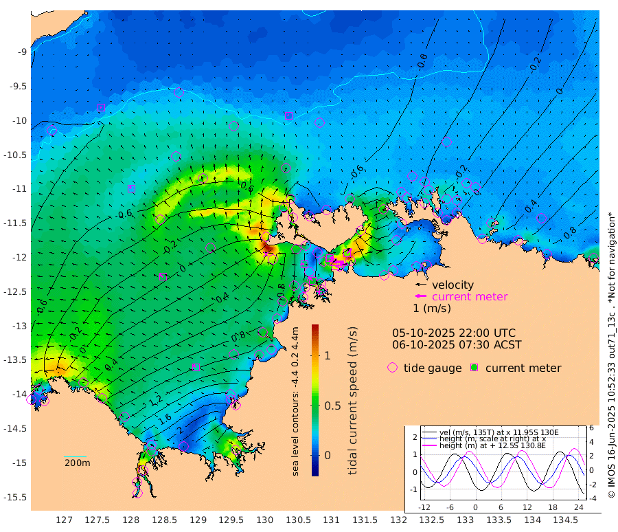 75cm/s 79T +4cm/s rms + 6cm/s 51T. Darwin_C1 52m 75cm/s 92T +4cm/s rms + 7cm/s -161T. Darwin_CW1 22m 56cm/s 70T +4cm/s rms + 8cm/s 61T. Darwin_CW2 34m 63cm/s 45T +3cm/s rms + 9cm/s 98T. Darwin_CW3 22m 100cm/s 90T +5cm/s rms + 7cm/s 88T. Darwin_C3 56m 33cm/s 66T +2cm/s rms + 9cm/s -126T. Darwin_CTbW 22m 10cm/s -16T +9cm/s rms + 2cm/s -110T. NWSLYN 196m 34cm/s -75T +1cm/s rms + 1cm/s -47T. DARBGF 30m 8cm/s -79T +7cm/s rms + 2cm/s -137T. ITFTIS 464m 19cm/s -36T +9cm/s rms + 1cm/s 74T. ITFMHB 146m 30cm/s -49T +4cm/s rms + 1cm/s -134T. ITFJBG 61m 41cm/s -56T +6cm/s rms + 4cm/s 121T. ITFFTB 108m 49cm/s -50T +4cm/s rms + 3cm/s 80T. NRSDAR 19m -28cm Carronade Island -24cm Guy Point -18cm Napier Broome Bay 40cm Lesueur Island 127cm Reveley Island 77cm Rocky Island 230cm Cape Domett 196cm Lacrosse Island 273cm Adolphus Island 286cm Pender Point 290cm Wyndham -36cm The Boxers -39cm Unnamed Shoal -70cm Loxton Shoal 226cm Pelican Island -56cm Calder Shoal -72cm Evans Shoal 356cm Quoin Island 182cm Port Keats 174cm Jones Point 278cm Catfish Island 85cm Cape Scott Offshore 23cm Cape Ford 95cm Anson Bay -67cm Goodrich Bank 65cm Peron Island North 54cm Point Jenny 53cm Native Point 66cm Fish Reef 79cm Tapa Bay -25cm Point Fawcett (Offshore) 104cm Burge Point 69cm Munkunuwa 29cm Beagle A 101cm Parsons Bank 91cm Fenton Patches -58cm Lynedoch Bank 110cm Hancox Shoal Area 114cm Nightcliff 133cm Darwin 101cm Charles Point Patches 123cm Glyde Point 148cm Chambers Bay 153cm Point Stuart 115cm Cape Hotham 132cm Christine Reef 173cm West Alligator Head 191cm East Field Island 108cm Two Hills Bay 0cm Newby Shoal 117cm Camp Point 83cm Medina Inlet South -30cm South Barlow Point -50cm St. Asaph Bay -70cm Cape Van Dieman -63cm Snake Bay -66cm Cache Point -80cm Echo Shoal -41cm Point Jahleel (Off) 14cm Cape Don -35cm Port Essington -42cm Smith Point - West -41cm NW Peacock Island -50cm North Of Jones Shoal -16cm Peacock Island -15cm Point David -40cm D'urville Point -33cm Money Shoal -12cm Copeland Island -14cm Cape Cockburn -14cm One Tree Point -15cm Hogmany Shoal -13cm New Year Island - West -10cm Grant Island 14cm Aurari Bay 34cm Cuthbert Point 11cm North Goulburn Island 62cm Paxie Shoal 73cm Entrance Island 108cm Yabooma Island