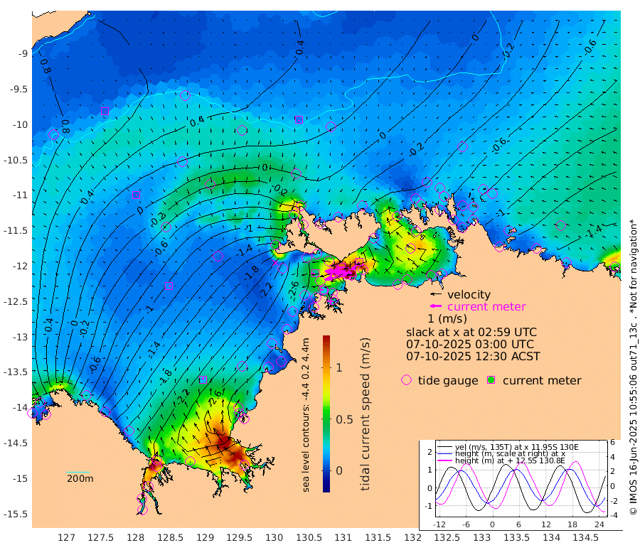 199cm/s -101T +4cm/s rms + 6cm/s 51T. Darwin_C1 52m 162cm/s -90T +4cm/s rms + 7cm/s -161T. Darwin_CW1 22m 118cm/s -107T +4cm/s rms + 8cm/s 61T. Darwin_CW2 34m 97cm/s -136T +3cm/s rms + 9cm/s 98T. Darwin_CW3 22m 179cm/s -91T +5cm/s rms + 7cm/s 88T. Darwin_C3 56m 111cm/s -115T +2cm/s rms + 9cm/s -126T. Darwin_CTbW 22m 10cm/s 175T +9cm/s rms + 2cm/s -110T. NWSLYN 196m 35cm/s -101T +1cm/s rms + 1cm/s -47T. DARBGF 30m 8cm/s 112T +7cm/s rms + 2cm/s -137T. ITFTIS 464m 8cm/s 113T +9cm/s rms + 1cm/s 74T. ITFMHB 146m 19cm/s 17T +4cm/s rms + 1cm/s -134T. ITFJBG 61m 11cm/s 86T +6cm/s rms + 4cm/s 121T. ITFFTB 108m 25cm/s -81T +4cm/s rms + 3cm/s 80T. NRSDAR 19m 81cm Carronade Island 84cm Guy Point 89cm Napier Broome Bay -70cm Lesueur Island -196cm Reveley Island -81cm Rocky Island -288cm Cape Domett -265cm Lacrosse Island -289cm Adolphus Island -185cm Pender Point -158cm Wyndham -28cm The Boxers -61cm Unnamed Shoal 58cm Loxton Shoal -319cm Pelican Island -11cm Calder Shoal 36cm Evans Shoal -327cm Quoin Island -325cm Port Keats -314cm Jones Point -206cm Catfish Island -235cm Cape Scott Offshore -270cm Cape Ford -267cm Anson Bay 3cm Goodrich Bank -235cm Peron Island North -236cm Point Jenny -236cm Native Point -252cm Fish Reef -272cm Tapa Bay -111cm Point Fawcett (Offshore) -296cm Burge Point -253cm Munkunuwa -211cm Beagle A -287cm Parsons Bank -290cm Fenton Patches 19cm Lynedoch Bank -286cm Hancox Shoal Area -305cm Nightcliff -318cm Darwin -284cm Charles Point Patches -230cm Glyde Point -174cm Chambers Bay -165cm Point Stuart -195cm Cape Hotham -163cm Christine Reef -174cm West Alligator Head -157cm East Field Island -151cm Two Hills Bay -133cm Newby Shoal -157cm Camp Point -263cm Medina Inlet South -96cm South Barlow Point -55cm St. Asaph Bay -2cm Cape Van Dieman -13cm Snake Bay -6cm Cache Point 86cm Echo Shoal -32cm Point Jahleel (Off) -88cm Cape Don -37cm Port Essington -40cm Smith Point - West -36cm NW Peacock Island -11cm North Of Jones Shoal -6cm Peacock Island -63cm Point David -44cm D'urville Point -26cm Money Shoal -66cm Copeland Island -85cm Cape Cockburn -56cm One Tree Point -77cm Hogmany Shoal -63cm New Year Island - West -68cm Grant Island -92cm Aurari Bay -105cm Cuthbert Point -87cm North Goulburn Island -112cm Paxie Shoal -137cm Entrance Island -155cm Yabooma Island