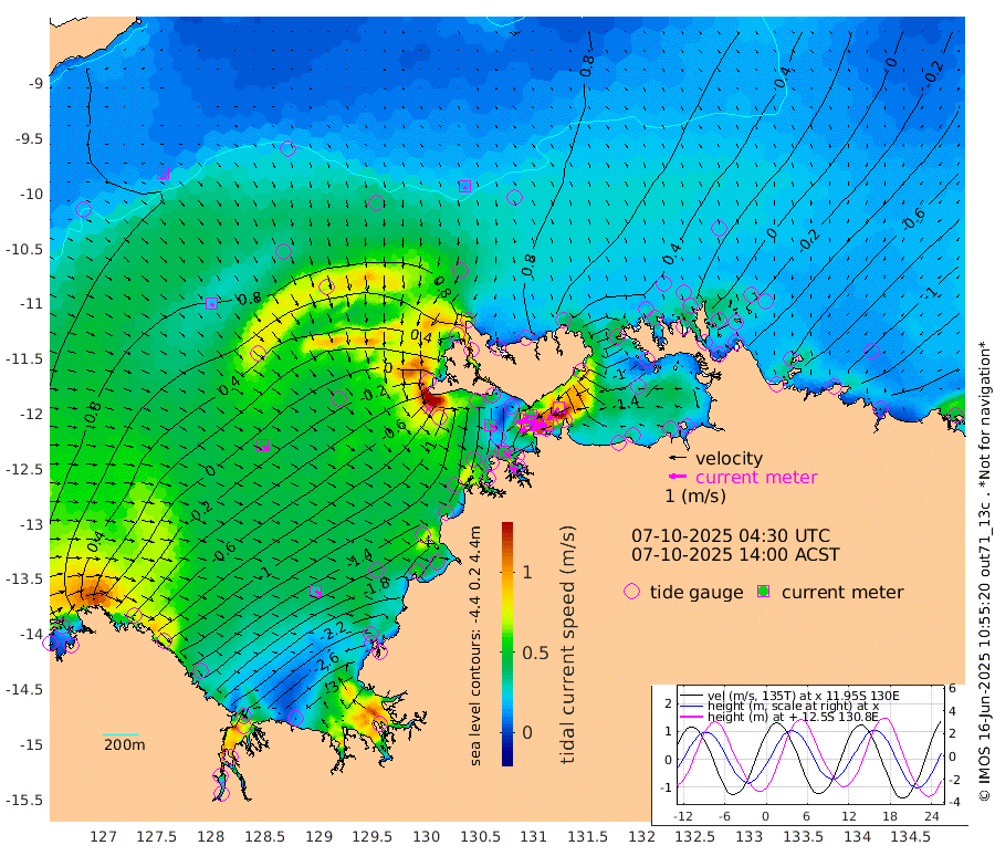 118cm/s -101T +4cm/s rms + 6cm/s 51T. Darwin_C1 52m 108cm/s -92T +4cm/s rms + 7cm/s -161T. Darwin_CW1 22m 55cm/s -106T +4cm/s rms + 8cm/s 61T. Darwin_CW2 34m 88cm/s -138T +3cm/s rms + 9cm/s 98T. Darwin_CW3 22m 116cm/s -90T +5cm/s rms + 7cm/s 88T. Darwin_C3 56m 54cm/s -116T +2cm/s rms + 9cm/s -126T. Darwin_CTbW 22m 16cm/s 163T +9cm/s rms + 2cm/s -110T. NWSLYN 196m 39cm/s 105T +1cm/s rms + 1cm/s -47T. DARBGF 30m 12cm/s 92T +7cm/s rms + 2cm/s -137T. ITFTIS 464m 21cm/s 140T +9cm/s rms + 1cm/s 74T. ITFMHB 146m 33cm/s 122T +4cm/s rms + 1cm/s -134T. ITFJBG 61m 48cm/s 122T +6cm/s rms + 4cm/s 121T. ITFFTB 108m 49cm/s 134T +4cm/s rms + 3cm/s 80T. NRSDAR 19m 34cm Carronade Island 32cm Guy Point 35cm Napier Broome Bay -75cm Lesueur Island -179cm Reveley Island -86cm Rocky Island -294cm Cape Domett -263cm Lacrosse Island -349cm Adolphus Island -331cm Pender Point -341cm Wyndham 36cm The Boxers 21cm Unnamed Shoal 88cm Loxton Shoal -299cm Pelican Island 59cm Calder Shoal 83cm Evans Shoal -439cm Quoin Island -248cm Port Keats -239cm Jones Point -347cm Catfish Island -127cm Cape Scott Offshore -67cm Cape Ford -140cm Anson Bay 69cm Goodrich Bank -111cm Peron Island North -93cm Point Jenny -92cm Native Point -111cm Fish Reef -128cm Tapa Bay 11cm Point Fawcett (Offshore) -156cm Burge Point -106cm Munkunuwa -70cm Beagle A -155cm Parsons Bank -150cm Fenton Patches 64cm Lynedoch Bank -170cm Hancox Shoal Area -175cm Nightcliff -193cm Darwin -149cm Charles Point Patches -179cm Glyde Point -201cm Chambers Bay -213cm Point Stuart -173cm Cape Hotham -183cm Christine Reef -238cm West Alligator Head -258cm East Field Island -159cm Two Hills Bay -27cm Newby Shoal -162cm Camp Point -125cm Medina Inlet South 18cm South Barlow Point 46cm St. Asaph Bay 72cm Cape Van Dieman 61cm Snake Bay 63cm Cache Point 98cm Echo Shoal 30cm Point Jahleel (Off) -36cm Cape Don 25cm Port Essington 27cm Smith Point - West 24cm NW Peacock Island 45cm North Of Jones Shoal 14cm Peacock Island -13cm Point David 21cm D'urville Point 22cm Money Shoal -19cm Copeland Island -24cm Cape Cockburn -8cm One Tree Point -26cm Hogmany Shoal -17cm New Year Island - West -21cm Grant Island -56cm Aurari Bay -78cm Cuthbert Point -46cm North Goulburn Island -100cm Paxie Shoal -127cm Entrance Island -171cm Yabooma Island