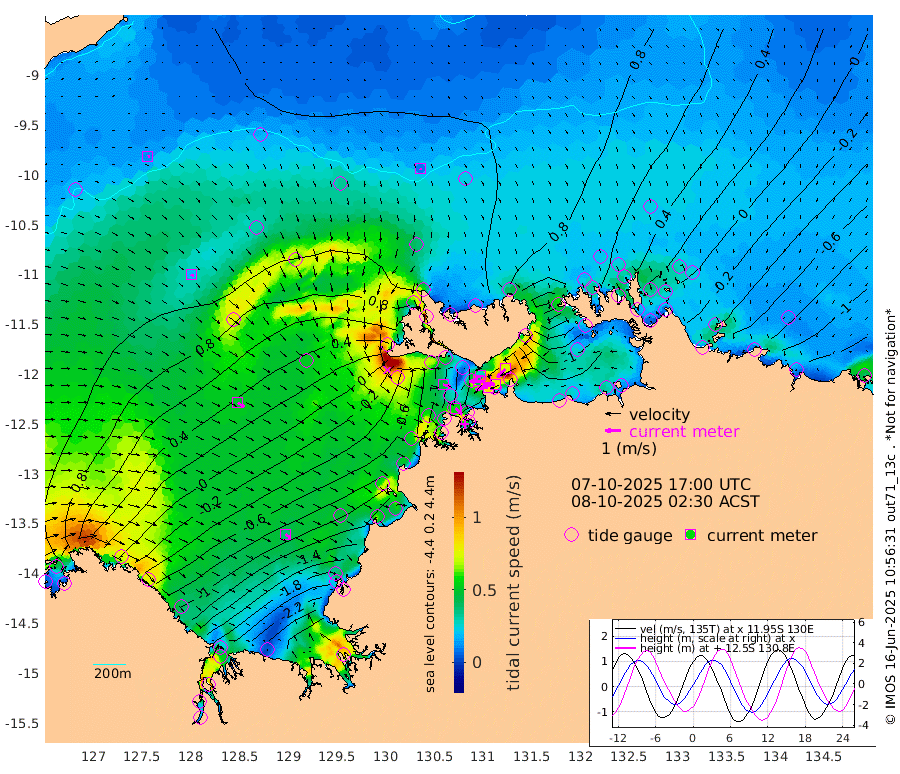 81cm/s -101T +4cm/s rms + 6cm/s 51T. Darwin_C1 52m 77cm/s -92T +4cm/s rms + 7cm/s -161T. Darwin_CW1 22m 43cm/s -106T +4cm/s rms + 8cm/s 61T. Darwin_CW2 34m 73cm/s -137T +3cm/s rms + 9cm/s 98T. Darwin_CW3 22m 100cm/s -90T +5cm/s rms + 7cm/s 88T. Darwin_C3 56m 28cm/s -115T +2cm/s rms + 9cm/s -126T. Darwin_CTbW 22m 8cm/s 158T +9cm/s rms + 2cm/s -110T. NWSLYN 196m 46cm/s 102T +1cm/s rms + 1cm/s -47T. DARBGF 30m 12cm/s 79T +7cm/s rms + 2cm/s -137T. ITFTIS 464m 19cm/s 126T +9cm/s rms + 1cm/s 74T. ITFMHB 146m 37cm/s 126T +4cm/s rms + 1cm/s -134T. ITFJBG 61m 48cm/s 119T +6cm/s rms + 4cm/s 121T. ITFFTB 108m 55cm/s 133T +4cm/s rms + 3cm/s 80T. NRSDAR 19m 52cm Carronade Island 41cm Guy Point 52cm Napier Broome Bay -16cm Lesueur Island -135cm Reveley Island -45cm Rocky Island -238cm Cape Domett -201cm Lacrosse Island -293cm Adolphus Island -304cm Pender Point -310cm Wyndham 74cm The Boxers 83cm Unnamed Shoal 108cm Loxton Shoal -249cm Pelican Island 94cm Calder Shoal 99cm Evans Shoal -388cm Quoin Island -181cm Port Keats -177cm Jones Point -321cm Catfish Island -79cm Cape Scott Offshore -4cm Cape Ford -89cm Anson Bay 95cm Goodrich Bank -55cm Peron Island North -44cm Point Jenny -40cm Native Point -50cm Fish Reef -73cm Tapa Bay 49cm Point Fawcett (Offshore) -91cm Burge Point -57cm Munkunuwa -5cm Beagle A -100cm Parsons Bank -77cm Fenton Patches 87cm Lynedoch Bank -117cm Hancox Shoal Area -111cm Nightcliff -127cm Darwin -91cm Charles Point Patches -126cm Glyde Point -172cm Chambers Bay -177cm Point Stuart -126cm Cape Hotham -154cm Christine Reef -201cm West Alligator Head -220cm East Field Island -122cm Two Hills Bay 42cm Newby Shoal -124cm Camp Point -68cm Medina Inlet South 59cm South Barlow Point 79cm St. Asaph Bay 99cm Cape Van Dieman 94cm Snake Bay 90cm Cache Point 113cm Echo Shoal 60cm Point Jahleel (Off) -8cm Cape Don 48cm Port Essington 52cm Smith Point - West 50cm NW Peacock Island 66cm North Of Jones Shoal 21cm Peacock Island 11cm Point David 47cm D'urville Point 42cm Money Shoal 3cm Copeland Island 8cm Cape Cockburn 15cm One Tree Point -4cm Hogmany Shoal 15cm New Year Island - West 6cm Grant Island -24cm Aurari Bay -59cm Cuthbert Point -23cm North Goulburn Island -89cm Paxie Shoal -113cm Entrance Island -168cm Yabooma Island