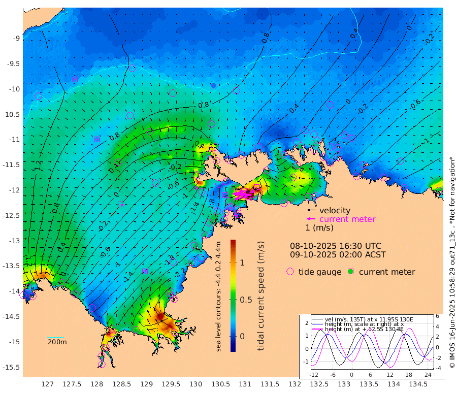 170cm/s -101T +4cm/s rms + 6cm/s 51T. Darwin_C1 52m 143cm/s -91T +4cm/s rms + 7cm/s -161T. Darwin_CW1 22m 101cm/s -107T +4cm/s rms + 8cm/s 61T. Darwin_CW2 34m 91cm/s -135T +3cm/s rms + 9cm/s 98T. Darwin_CW3 22m 171cm/s -91T +5cm/s rms + 7cm/s 88T. Darwin_C3 56m 88cm/s -115T +2cm/s rms + 9cm/s -126T. Darwin_CTbW 22m 8cm/s 158T +9cm/s rms + 2cm/s -110T. NWSLYN 196m 10cm/s -151T +1cm/s rms + 1cm/s -47T. DARBGF 30m 11cm/s 76T +7cm/s rms + 2cm/s -137T. ITFTIS 464m 14cm/s 97T +9cm/s rms + 1cm/s 74T. ITFMHB 146m 17cm/s 71T +4cm/s rms + 1cm/s -134T. ITFJBG 61m 28cm/s 100T +6cm/s rms + 4cm/s 121T. ITFFTB 108m 13cm/s -167T +4cm/s rms + 3cm/s 80T. NRSDAR 19m 123cm Carronade Island 118cm Guy Point 125cm Napier Broome Bay 10cm Lesueur Island -155cm Reveley Island -62cm Rocky Island -255cm Cape Domett -217cm Lacrosse Island -271cm Adolphus Island -220cm Pender Point -191cm Wyndham 51cm The Boxers 36cm Unnamed Shoal 115cm Loxton Shoal -284cm Pelican Island 67cm Calder Shoal 90cm Evans Shoal -341cm Quoin Island -256cm Port Keats -253cm Jones Point -224cm Catfish Island -161cm Cape Scott Offshore -143cm Cape Ford -188cm Anson Bay 71cm Goodrich Bank -151cm Peron Island North -148cm Point Jenny -146cm Native Point -158cm Fish Reef -183cm Tapa Bay -25cm Point Fawcett (Offshore) -205cm Burge Point -179cm Munkunuwa -102cm Beagle A -213cm Parsons Bank -185cm Fenton Patches 76cm Lynedoch Bank -213cm Hancox Shoal Area -217cm Nightcliff -235cm Darwin -194cm Charles Point Patches -174cm Glyde Point -159cm Chambers Bay -155cm Point Stuart -152cm Cape Hotham -144cm Christine Reef -171cm West Alligator Head -160cm East Field Island -124cm Two Hills Bay -20cm Newby Shoal -124cm Camp Point -178cm Medina Inlet South -12cm South Barlow Point 25cm St. Asaph Bay 67cm Cape Van Dieman 60cm Snake Bay 64cm Cache Point 140cm Echo Shoal 33cm Point Jahleel (Off) -38cm Cape Don 19cm Port Essington 20cm Smith Point - West 23cm NW Peacock Island 46cm North Of Jones Shoal 13cm Peacock Island -15cm Point David 15cm D'urville Point 25cm Money Shoal -21cm Copeland Island -24cm Cape Cockburn -9cm One Tree Point -25cm Hogmany Shoal -6cm New Year Island - West -18cm Grant Island -45cm Aurari Bay -74cm Cuthbert Point -46cm North Goulburn Island -96cm Paxie Shoal -122cm Entrance Island -160cm Yabooma Island