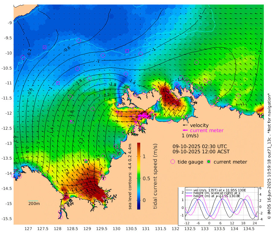 221cm/s -102T +4cm/s rms + 6cm/s 51T. Darwin_C1 52m 163cm/s -89T +4cm/s rms + 7cm/s -161T. Darwin_CW1 22m 148cm/s -108T +4cm/s rms + 8cm/s 61T. Darwin_CW2 34m 82cm/s -127T +3cm/s rms + 9cm/s 98T. Darwin_CW3 22m 186cm/s -92T +5cm/s rms + 7cm/s 88T. Darwin_C3 56m 130cm/s -116T +2cm/s rms + 9cm/s -126T. Darwin_CTbW 22m 7cm/s -73T +9cm/s rms + 2cm/s -110T. NWSLYN 196m 97cm/s -92T +1cm/s rms + 1cm/s -47T. DARBGF 30m 7cm/s -158T +7cm/s rms + 2cm/s -137T. ITFTIS 464m 14cm/s -17T +9cm/s rms + 1cm/s 74T. ITFMHB 146m 54cm/s -20T +4cm/s rms + 1cm/s -134T. ITFJBG 61m 41cm/s -46T +6cm/s rms + 4cm/s 121T. ITFFTB 108m 81cm/s -61T +4cm/s rms + 3cm/s 80T. NRSDAR 19m 67cm Carronade Island 71cm Guy Point 75cm Napier Broome Bay -64cm Lesueur Island -143cm Reveley Island -60cm Rocky Island -168cm Cape Domett -163cm Lacrosse Island -108cm Adolphus Island 46cm Pender Point 103cm Wyndham -126cm The Boxers -156cm Unnamed Shoal -48cm Loxton Shoal -209cm Pelican Island -125cm Calder Shoal -74cm Evans Shoal -71cm Quoin Island -283cm Port Keats -270cm Jones Point 32cm Catfish Island -271cm Cape Scott Offshore -426cm Cape Ford -309cm Anson Bay -110cm Goodrich Bank -297cm Peron Island North -311cm Point Jenny -312cm Native Point -322cm Fish Reef -331cm Tapa Bay -235cm Point Fawcett (Offshore) -340cm Burge Point -323cm Munkunuwa -297cm Beagle A -324cm Parsons Bank -332cm Fenton Patches -77cm Lynedoch Bank -302cm Hancox Shoal Area -326cm Nightcliff -339cm Darwin -338cm Charles Point Patches -198cm Glyde Point -65cm Chambers Bay -37cm Point Stuart -142cm Cape Hotham -69cm Christine Reef -23cm West Alligator Head 32cm East Field Island -84cm Two Hills Bay -230cm Newby Shoal -89cm Camp Point -325cm Medina Inlet South -217cm South Barlow Point -181cm St. Asaph Bay -122cm Cape Van Dieman -128cm Snake Bay -120cm Cache Point -7cm Echo Shoal -119cm Point Jahleel (Off) -133cm Cape Don -125cm Port Essington -130cm Smith Point - West -119cm NW Peacock Island -106cm North Of Jones Shoal -38cm Peacock Island -113cm Point David -129cm D'urville Point -101cm Money Shoal -109cm Copeland Island -146cm Cape Cockburn -112cm One Tree Point -130cm Hogmany Shoal -111cm New Year Island - West -115cm Grant Island -105cm Aurari Bay -102cm Cuthbert Point -113cm North Goulburn Island -85cm Paxie Shoal -85cm Entrance Island -58cm Yabooma Island