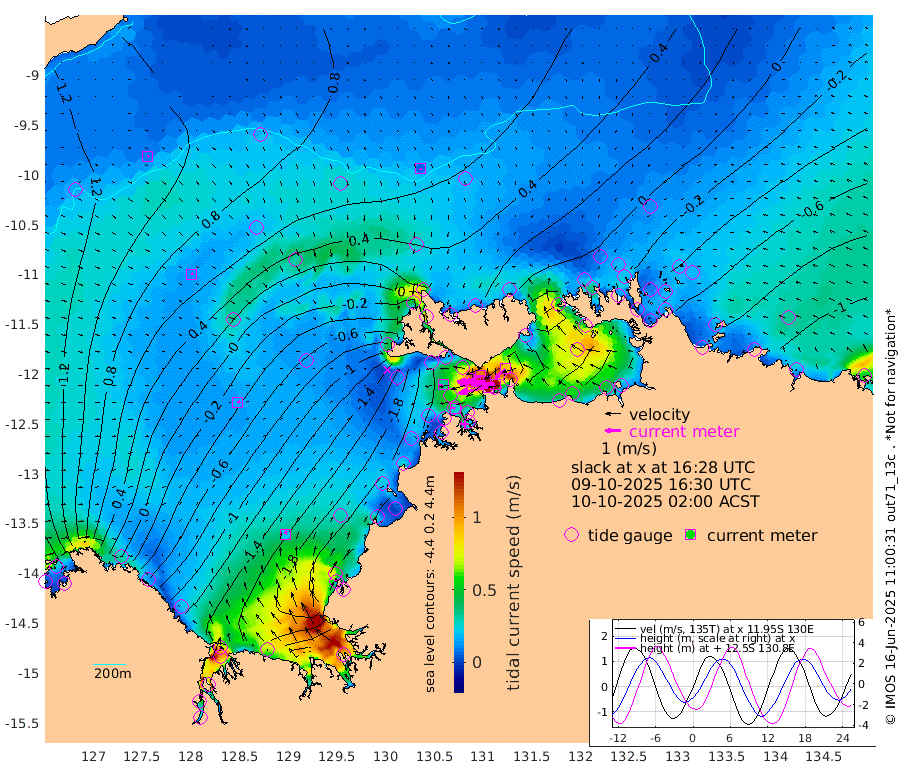 192cm/s -102T +4cm/s rms + 6cm/s 51T. Darwin_C1 52m 151cm/s -90T +4cm/s rms + 7cm/s -161T. Darwin_CW1 22m 121cm/s -107T +4cm/s rms + 8cm/s 61T. Darwin_CW2 34m 88cm/s -133T +3cm/s rms + 9cm/s 98T. Darwin_CW3 22m 183cm/s -91T +5cm/s rms + 7cm/s 88T. Darwin_C3 56m 104cm/s -115T +2cm/s rms + 9cm/s -126T. Darwin_CTbW 22m 7cm/s 152T +9cm/s rms + 2cm/s -110T. NWSLYN 196m 32cm/s -102T +1cm/s rms + 1cm/s -47T. DARBGF 30m 9cm/s 65T +7cm/s rms + 2cm/s -137T. ITFTIS 464m 13cm/s 66T +9cm/s rms + 1cm/s 74T. ITFMHB 146m 22cm/s 18T +4cm/s rms + 1cm/s -134T. ITFJBG 61m 17cm/s 65T +6cm/s rms + 4cm/s 121T. ITFFTB 108m 26cm/s -86T +4cm/s rms + 3cm/s 80T. NRSDAR 19m 163cm Carronade Island 162cm Guy Point 166cm Napier Broome Bay 41cm Lesueur Island -128cm Reveley Island -55cm Rocky Island -206cm Cape Domett -173cm Lacrosse Island -198cm Adolphus Island -118cm Pender Point -73cm Wyndham 42cm The Boxers 13cm Unnamed Shoal 108cm Loxton Shoal -244cm Pelican Island 51cm Calder Shoal 77cm Evans Shoal -245cm Quoin Island -241cm Port Keats -243cm Jones Point -118cm Catfish Island -168cm Cape Scott Offshore -183cm Cape Ford -200cm Anson Bay 52cm Goodrich Bank -170cm Peron Island North -168cm Point Jenny -167cm Native Point -182cm Fish Reef -201cm Tapa Bay -52cm Point Fawcett (Offshore) -221cm Burge Point -209cm Munkunuwa -125cm Beagle A -232cm Parsons Bank -201cm Fenton Patches 64cm Lynedoch Bank -220cm Hancox Shoal Area -227cm Nightcliff -245cm Darwin -207cm Charles Point Patches -162cm Glyde Point -113cm Chambers Bay -107cm Point Stuart -132cm Cape Hotham -102cm Christine Reef -116cm West Alligator Head -89cm East Field Island -96cm Two Hills Bay -35cm Newby Shoal -92cm Camp Point -200cm Medina Inlet South -43cm South Barlow Point -1cm St. Asaph Bay 45cm Cape Van Dieman 36cm Snake Bay 46cm Cache Point 142cm Echo Shoal 18cm Point Jahleel (Off) -41cm Cape Don 5cm Port Essington 4cm Smith Point - West 9cm NW Peacock Island 33cm North Of Jones Shoal 8cm Peacock Island -24cm Point David -1cm D'urville Point 18cm Money Shoal -28cm Copeland Island -34cm Cape Cockburn -17cm One Tree Point -29cm Hogmany Shoal -12cm New Year Island - West -24cm Grant Island -46cm Aurari Bay -67cm Cuthbert Point -47cm North Goulburn Island -79cm Paxie Shoal -102cm Entrance Island -126cm Yabooma Island