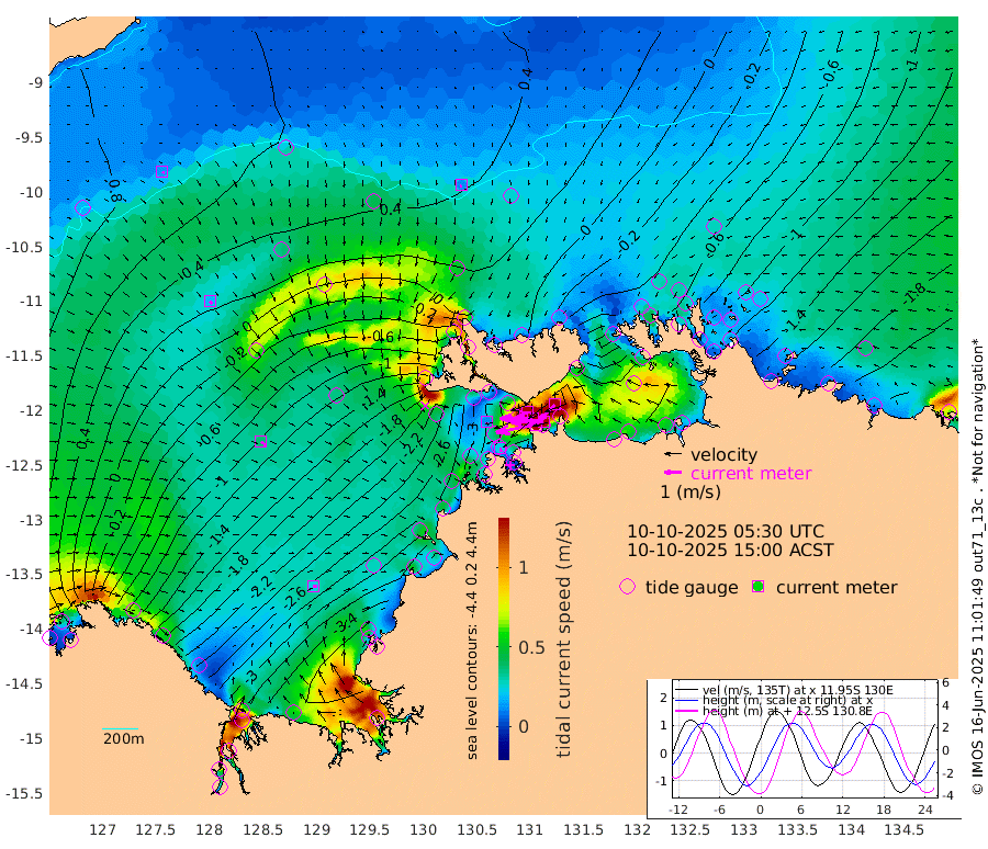 236cm/s -101T +4cm/s rms + 6cm/s 51T. Darwin_C1 52m 194cm/s -91T +4cm/s rms + 7cm/s -161T. Darwin_CW1 22m 110cm/s -106T +4cm/s rms + 8cm/s 61T. Darwin_CW2 34m 128cm/s -137T +3cm/s rms + 9cm/s 98T. Darwin_CW3 22m 196cm/s -90T +5cm/s rms + 7cm/s 88T. Darwin_C3 56m 130cm/s -115T +2cm/s rms + 9cm/s -126T. Darwin_CTbW 22m 11cm/s -175T +9cm/s rms + 2cm/s -110T. NWSLYN 196m 11cm/s 167T +1cm/s rms + 1cm/s -47T. DARBGF 30m 13cm/s 111T +7cm/s rms + 2cm/s -137T. ITFTIS 464m 19cm/s 137T +9cm/s rms + 1cm/s 74T. ITFMHB 146m 23cm/s 101T +4cm/s rms + 1cm/s -134T. ITFJBG 61m 38cm/s 118T +6cm/s rms + 4cm/s 121T. ITFFTB 108m 22cm/s 157T +4cm/s rms + 3cm/s 80T. NRSDAR 19m 25cm Carronade Island 23cm Guy Point 25cm Napier Broome Bay -122cm Lesueur Island -253cm Reveley Island -119cm Rocky Island -384cm Cape Domett -343cm Lacrosse Island -420cm Adolphus Island -356cm Pender Point -350cm Wyndham -29cm The Boxers -50cm Unnamed Shoal 57cm Loxton Shoal -404cm Pelican Island 3cm Calder Shoal 40cm Evans Shoal -498cm Quoin Island -371cm Port Keats -356cm Jones Point -401cm Catfish Island -241cm Cape Scott Offshore -247cm Cape Ford -266cm Anson Bay 14cm Goodrich Bank -238cm Peron Island North -225cm Point Jenny -222cm Native Point -243cm Fish Reef -264cm Tapa Bay -90cm Point Fawcett (Offshore) -295cm Burge Point -231cm Munkunuwa -188cm Beagle A -295cm Parsons Bank -281cm Fenton Patches 21cm Lynedoch Bank -301cm Hancox Shoal Area -303cm Nightcliff -335cm Darwin -293cm Charles Point Patches -277cm Glyde Point -258cm Chambers Bay -266cm Point Stuart -253cm Cape Hotham -245cm Christine Reef -287cm West Alligator Head -287cm East Field Island -226cm Two Hills Bay -131cm Newby Shoal -222cm Camp Point -257cm Medina Inlet South -72cm South Barlow Point -30cm St. Asaph Bay 13cm Cape Van Dieman 0cm Snake Bay -1cm Cache Point 88cm Echo Shoal -34cm Point Jahleel (Off) -116cm Cape Don -50cm Port Essington -49cm Smith Point - West -50cm NW Peacock Island -18cm North Of Jones Shoal -10cm Peacock Island -92cm Point David -58cm D'urville Point -47cm Money Shoal -97cm Copeland Island -128cm Cape Cockburn -86cm One Tree Point -130cm Hogmany Shoal -94cm New Year Island - West -104cm Grant Island -132cm Aurari Bay -171cm Cuthbert Point -133cm North Goulburn Island -184cm Paxie Shoal -213cm Entrance Island -250cm Yabooma Island