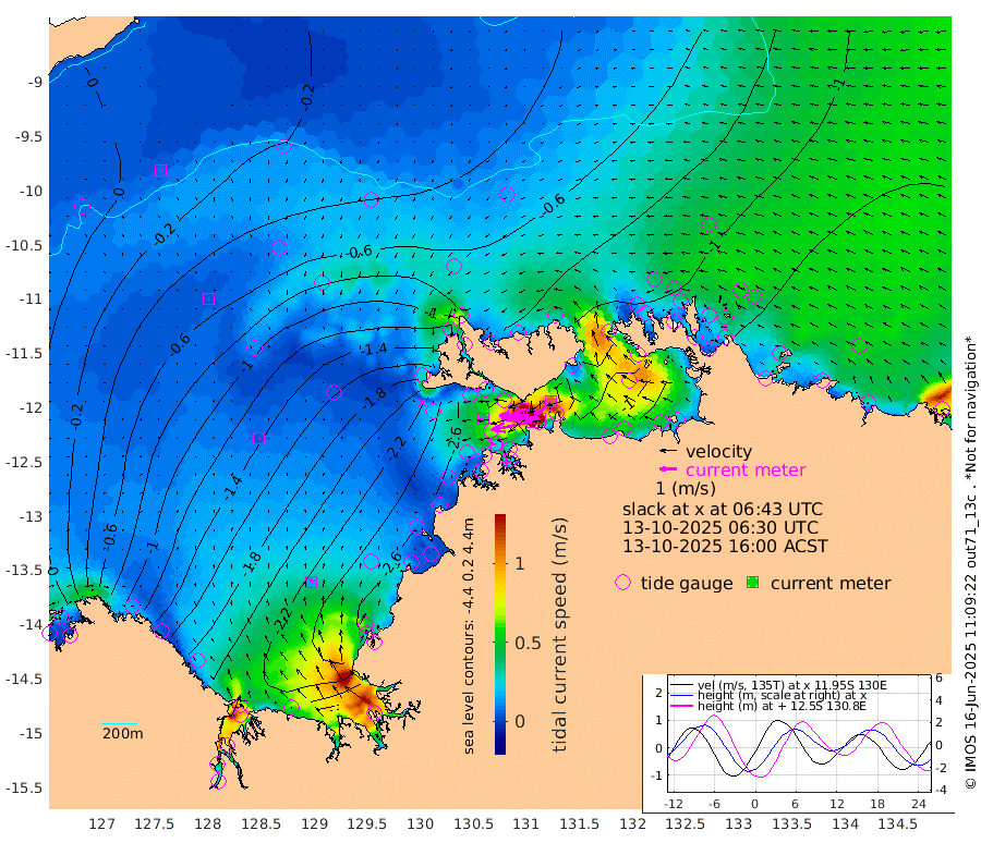 244cm/s -102T +4cm/s rms + 6cm/s 51T. Darwin_C1 52m 172cm/s -90T +4cm/s rms + 7cm/s -161T. Darwin_CW1 22m 113cm/s -106T +4cm/s rms + 8cm/s 61T. Darwin_CW2 34m 110cm/s -132T +3cm/s rms + 9cm/s 98T. Darwin_CW3 22m 174cm/s -90T +5cm/s rms + 7cm/s 88T. Darwin_C3 56m 141cm/s -115T +2cm/s rms + 9cm/s -126T. Darwin_CTbW 22m 7cm/s -83T +9cm/s rms + 2cm/s -110T. NWSLYN 196m 40cm/s -99T +1cm/s rms + 1cm/s -47T. DARBGF 30m 7cm/s 144T +7cm/s rms + 2cm/s -137T. ITFTIS 464m 4cm/s 70T +9cm/s rms + 1cm/s 74T. ITFMHB 146m 13cm/s 16T +4cm/s rms + 1cm/s -134T. ITFJBG 61m 5cm/s 58T +6cm/s rms + 4cm/s 121T. ITFFTB 108m 26cm/s -81T +4cm/s rms + 3cm/s 80T. NRSDAR 19m -1cm Carronade Island -3cm Guy Point -10cm Napier Broome Bay -102cm Lesueur Island -184cm Reveley Island -102cm Rocky Island -255cm Cape Domett -231cm Lacrosse Island -246cm Adolphus Island -181cm Pender Point -159cm Wyndham -87cm The Boxers -100cm Unnamed Shoal -26cm Loxton Shoal -271cm Pelican Island -70cm Calder Shoal -39cm Evans Shoal -286cm Quoin Island -281cm Port Keats -262cm Jones Point -243cm Catfish Island -225cm Cape Scott Offshore -253cm Cape Ford -247cm Anson Bay -54cm Goodrich Bank -234cm Peron Island North -222cm Point Jenny -220cm Native Point -236cm Fish Reef -245cm Tapa Bay -150cm Point Fawcett (Offshore) -259cm Burge Point -230cm Munkunuwa -192cm Beagle A -259cm Parsons Bank -240cm Fenton Patches -42cm Lynedoch Bank -250cm Hancox Shoal Area -256cm Nightcliff -283cm Darwin -266cm Charles Point Patches -206cm Glyde Point -151cm Chambers Bay -150cm Point Stuart -177cm Cape Hotham -147cm Christine Reef -155cm West Alligator Head -132cm East Field Island -153cm Two Hills Bay -161cm Newby Shoal -142cm Camp Point -247cm Medina Inlet South -130cm South Barlow Point -99cm St. Asaph Bay -59cm Cape Van Dieman -70cm Snake Bay -67cm Cache Point 9cm Echo Shoal -79cm Point Jahleel (Off) -125cm Cape Don -92cm Port Essington -91cm Smith Point - West -87cm NW Peacock Island -74cm North Of Jones Shoal -28cm Peacock Island -101cm Point David -93cm D'urville Point -79cm Money Shoal -100cm Copeland Island -138cm Cape Cockburn -104cm One Tree Point -130cm Hogmany Shoal -102cm New Year Island - West -110cm Grant Island -111cm Aurari Bay -132cm Cuthbert Point -122cm North Goulburn Island -135cm Paxie Shoal -133cm Entrance Island -134cm Yabooma Island