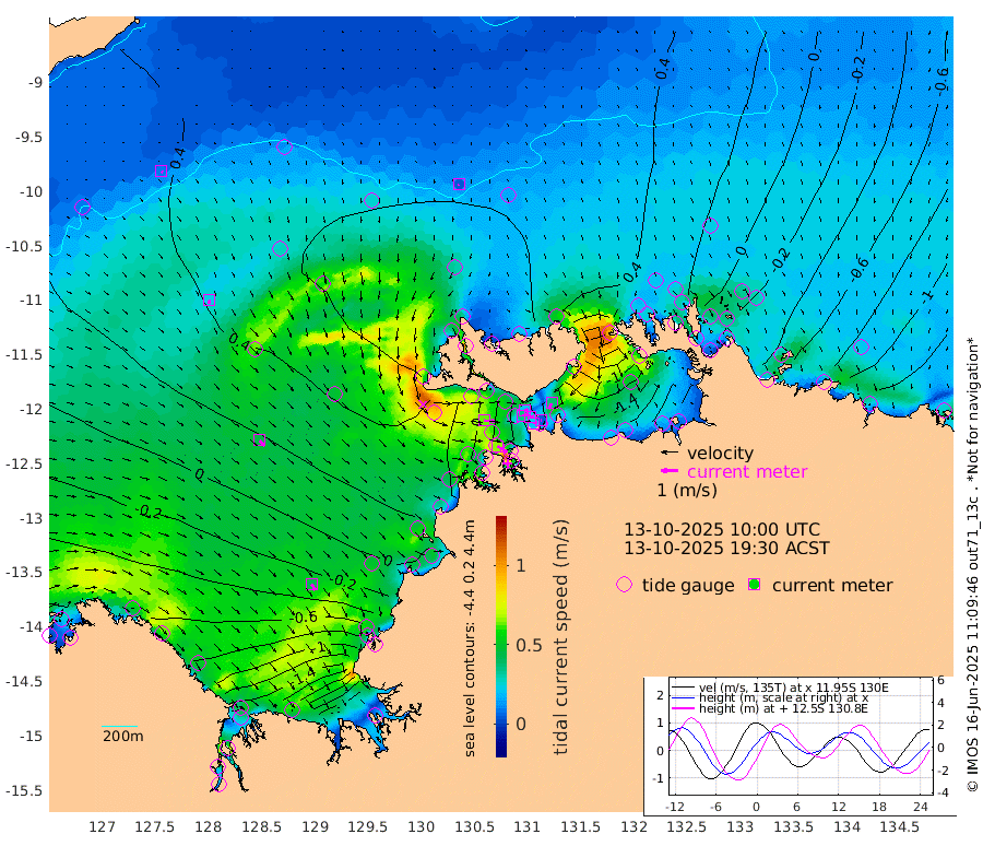 21cm/s 81T +4cm/s rms + 6cm/s 51T. Darwin_C1 52m 5cm/s 88T +4cm/s rms + 7cm/s -161T. Darwin_CW1 22m 35cm/s 72T +4cm/s rms + 8cm/s 61T. Darwin_CW2 34m 36cm/s -153T +3cm/s rms + 9cm/s 98T. Darwin_CW3 22m 23cm/s 81T +5cm/s rms + 7cm/s 88T. Darwin_C3 56m 21cm/s 61T +2cm/s rms + 9cm/s -126T. Darwin_CTbW 22m 5cm/s -172T +9cm/s rms + 2cm/s -110T. NWSLYN 196m 63cm/s 93T +1cm/s rms + 1cm/s -47T. DARBGF 30m 9cm/s 123T +7cm/s rms + 2cm/s -137T. ITFTIS 464m 24cm/s 164T +9cm/s rms + 1cm/s 74T. ITFMHB 146m 42cm/s 150T +4cm/s rms + 1cm/s -134T. ITFJBG 61m 44cm/s 135T +6cm/s rms + 4cm/s 121T. ITFFTB 108m 66cm/s 123T +4cm/s rms + 3cm/s 80T. NRSDAR 19m -98cm Carronade Island -100cm Guy Point -104cm Napier Broome Bay -85cm Lesueur Island -69cm Reveley Island -12cm Rocky Island -125cm Cape Domett -112cm Lacrosse Island -176cm Adolphus Island -245cm Pender Point -291cm Wyndham 23cm The Boxers 27cm Unnamed Shoal 39cm Loxton Shoal -106cm Pelican Island 49cm Calder Shoal 46cm Evans Shoal -222cm Quoin Island -48cm Port Keats -50cm Jones Point -292cm Catfish Island 17cm Cape Scott Offshore 75cm Cape Ford 26cm Anson Bay 50cm Goodrich Bank 33cm Peron Island North 36cm Point Jenny 40cm Native Point 38cm Fish Reef 34cm Tapa Bay 65cm Point Fawcett (Offshore) 21cm Burge Point 69cm Munkunuwa 44cm Beagle A 25cm Parsons Bank 20cm Fenton Patches 36cm Lynedoch Bank 2cm Hancox Shoal Area 15cm Nightcliff 9cm Darwin 24cm Charles Point Patches -60cm Glyde Point -145cm Chambers Bay -164cm Point Stuart -85cm Cape Hotham -132cm Christine Reef -184cm West Alligator Head -225cm East Field Island -108cm Two Hills Bay 23cm Newby Shoal -107cm Camp Point 45cm Medina Inlet South 76cm South Barlow Point 72cm St. Asaph Bay 55cm Cape Van Dieman 56cm Snake Bay 40cm Cache Point 25cm Echo Shoal 27cm Point Jahleel (Off) -16cm Cape Don 17cm Port Essington 22cm Smith Point - West 12cm NW Peacock Island 26cm North Of Jones Shoal 7cm Peacock Island -19cm Point David 14cm D'urville Point -3cm Money Shoal -24cm Copeland Island -32cm Cape Cockburn -15cm One Tree Point -45cm Hogmany Shoal -26cm New Year Island - West -27cm Grant Island -50cm Aurari Bay -82cm Cuthbert Point -50cm North Goulburn Island -101cm Paxie Shoal -119cm Entrance Island -162cm Yabooma Island