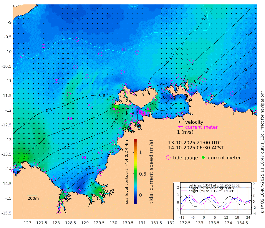 47cm/s -101T +4cm/s rms + 6cm/s 51T. Darwin_C1 52m 22cm/s -90T +4cm/s rms + 7cm/s -161T. Darwin_CW1 22m 6cm/s -118T +4cm/s rms + 8cm/s 61T. Darwin_CW2 34m 36cm/s -136T +3cm/s rms + 9cm/s 98T. Darwin_CW3 22m 13cm/s -89T +5cm/s rms + 7cm/s 88T. Darwin_C3 56m 25cm/s -116T +2cm/s rms + 9cm/s -126T. Darwin_CTbW 22m 10cm/s 128T +9cm/s rms + 2cm/s -110T. NWSLYN 196m 24cm/s 96T +1cm/s rms + 1cm/s -47T. DARBGF 30m 12cm/s 35T +7cm/s rms + 2cm/s -137T. ITFTIS 464m 12cm/s 52T +9cm/s rms + 1cm/s 74T. ITFMHB 146m 12cm/s 102T +4cm/s rms + 1cm/s -134T. ITFJBG 61m 19cm/s 90T +6cm/s rms + 4cm/s 121T. ITFFTB 108m 24cm/s 132T +4cm/s rms + 3cm/s 80T. NRSDAR 19m 37cm Carronade Island 39cm Guy Point 44cm Napier Broome Bay 30cm Lesueur Island -28cm Reveley Island -28cm Rocky Island -54cm Cape Domett -47cm Lacrosse Island -77cm Adolphus Island -88cm Pender Point -97cm Wyndham 77cm The Boxers 76cm Unnamed Shoal 95cm Loxton Shoal -61cm Pelican Island 86cm Calder Shoal 82cm Evans Shoal -110cm Quoin Island -22cm Port Keats -32cm Jones Point -157cm Catfish Island 16cm Cape Scott Offshore 74cm Cape Ford 19cm Anson Bay 84cm Goodrich Bank 23cm Peron Island North 25cm Point Jenny 28cm Native Point 20cm Fish Reef 21cm Tapa Bay 67cm Point Fawcett (Offshore) 14cm Burge Point 20cm Munkunuwa 37cm Beagle A 5cm Parsons Bank 10cm Fenton Patches 81cm Lynedoch Bank -1cm Hancox Shoal Area 2cm Nightcliff 9cm Darwin 34cm Charles Point Patches -21cm Glyde Point -65cm Chambers Bay -80cm Point Stuart -36cm Cape Hotham -58cm Christine Reef -98cm West Alligator Head -110cm East Field Island -45cm Two Hills Bay 66cm Newby Shoal -26cm Camp Point 27cm Medina Inlet South 76cm South Barlow Point 80cm St. Asaph Bay 85cm Cape Van Dieman 87cm Snake Bay 78cm Cache Point 86cm Echo Shoal 60cm Point Jahleel (Off) 29cm Cape Don 60cm Port Essington 55cm Smith Point - West 56cm NW Peacock Island 70cm North Of Jones Shoal 23cm Peacock Island 39cm Point David 54cm D'urville Point 63cm Money Shoal 33cm Copeland Island 43cm Cape Cockburn 44cm One Tree Point 37cm Hogmany Shoal 43cm New Year Island - West 38cm Grant Island 14cm Aurari Bay -2cm Cuthbert Point 21cm North Goulburn Island -2cm Paxie Shoal -30cm Entrance Island -55cm Yabooma Island