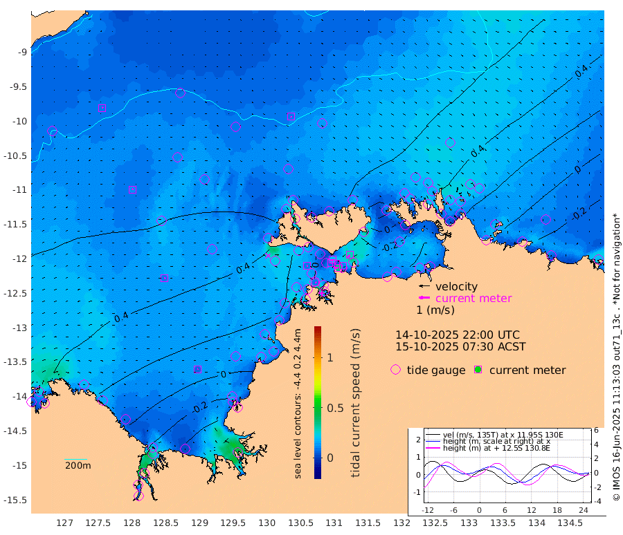 34cm/s -102T +4cm/s rms + 6cm/s 51T. Darwin_C1 52m 11cm/s -84T +4cm/s rms + 7cm/s -161T. Darwin_CW1 22m 7cm/s -120T +4cm/s rms + 8cm/s 61T. Darwin_CW2 34m 27cm/s -136T +3cm/s rms + 9cm/s 98T. Darwin_CW3 22m 4cm/s -87T +5cm/s rms + 7cm/s 88T. Darwin_C3 56m 19cm/s -116T +2cm/s rms + 9cm/s -126T. Darwin_CTbW 22m 9cm/s 126T +9cm/s rms + 2cm/s -110T. NWSLYN 196m 10cm/s 96T +1cm/s rms + 1cm/s -47T. DARBGF 30m 10cm/s 29T +7cm/s rms + 2cm/s -137T. ITFTIS 464m 11cm/s 36T +9cm/s rms + 1cm/s 74T. ITFMHB 146m 6cm/s 57T +4cm/s rms + 1cm/s -134T. ITFJBG 61m 10cm/s 63T +6cm/s rms + 4cm/s 121T. ITFFTB 108m 10cm/s 135T +4cm/s rms + 3cm/s 80T. NRSDAR 19m 24cm Carronade Island 29cm Guy Point 32cm Napier Broome Bay 20cm Lesueur Island -20cm Reveley Island -27cm Rocky Island -36cm Cape Domett -34cm Lacrosse Island -48cm Adolphus Island -46cm Pender Point -54cm Wyndham 53cm The Boxers 52cm Unnamed Shoal 74cm Loxton Shoal -43cm Pelican Island 61cm Calder Shoal 62cm Evans Shoal -63cm Quoin Island -19cm Port Keats -29cm Jones Point -120cm Catfish Island 6cm Cape Scott Offshore 37cm Cape Ford 8cm Anson Bay 62cm Goodrich Bank 10cm Peron Island North 6cm Point Jenny 9cm Native Point 1cm Fish Reef 6cm Tapa Bay 41cm Point Fawcett (Offshore) -1cm Burge Point 7cm Munkunuwa 10cm Beagle A -2cm Parsons Bank -8cm Fenton Patches 62cm Lynedoch Bank -6cm Hancox Shoal Area -7cm Nightcliff 3cm Darwin 20cm Charles Point Patches -20cm Glyde Point -51cm Chambers Bay -61cm Point Stuart -30cm Cape Hotham -45cm Christine Reef -74cm West Alligator Head -83cm East Field Island -35cm Two Hills Bay 38cm Newby Shoal -19cm Camp Point 13cm Medina Inlet South 52cm South Barlow Point 55cm St. Asaph Bay 62cm Cape Van Dieman 66cm Snake Bay 55cm Cache Point 64cm Echo Shoal 43cm Point Jahleel (Off) 21cm Cape Don 46cm Port Essington 40cm Smith Point - West 42cm NW Peacock Island 54cm North Of Jones Shoal 18cm Peacock Island 34cm Point David 40cm D'urville Point 50cm Money Shoal 29cm Copeland Island 36cm Cape Cockburn 37cm One Tree Point 33cm Hogmany Shoal 35cm New Year Island - West 33cm Grant Island 13cm Aurari Bay 3cm Cuthbert Point 20cm North Goulburn Island 8cm Paxie Shoal -17cm Entrance Island -34cm Yabooma Island