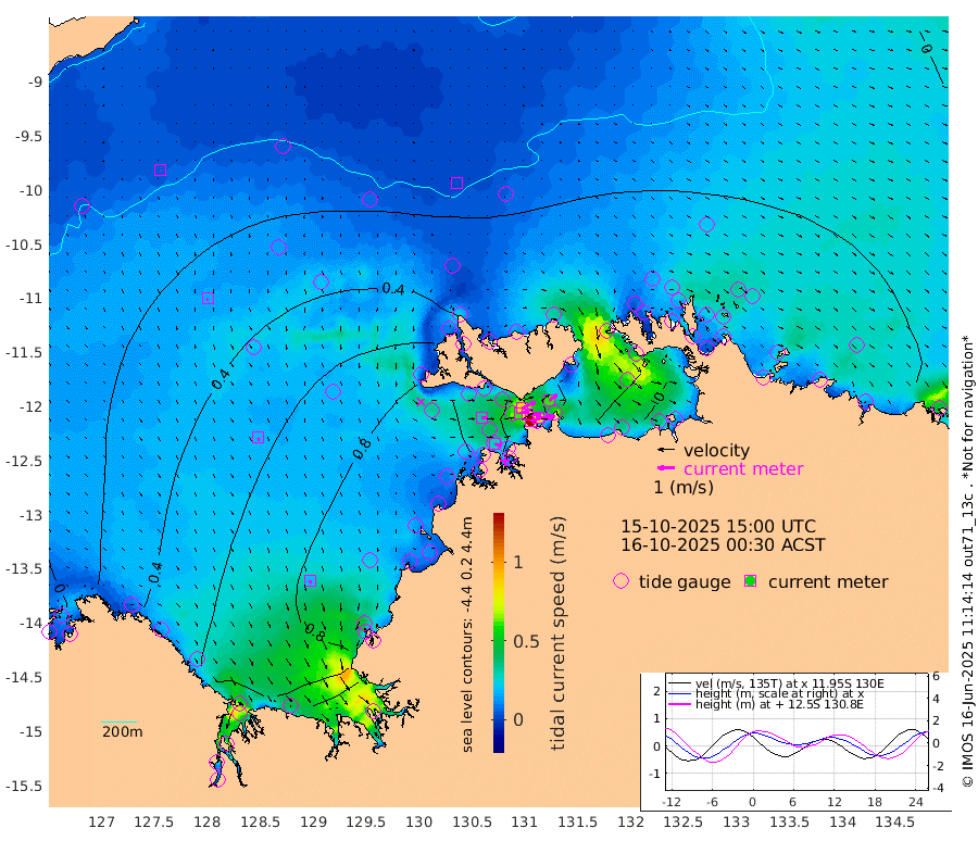 145cm/s 78T +4cm/s rms + 6cm/s 51T. Darwin_C1 52m 82cm/s 93T +4cm/s rms + 7cm/s -161T. Darwin_CW1 22m 62cm/s 72T +4cm/s rms + 8cm/s 61T. Darwin_CW2 34m 60cm/s 52T +3cm/s rms + 9cm/s 98T. Darwin_CW3 22m 79cm/s 89T +5cm/s rms + 7cm/s 88T. Darwin_C3 56m 85cm/s 65T +2cm/s rms + 9cm/s -126T. Darwin_CTbW 22m 1cm/s -161T +9cm/s rms + 2cm/s -110T. NWSLYN 196m 34cm/s 87T +1cm/s rms + 1cm/s -47T. DARBGF 30m 4cm/s 169T +7cm/s rms + 2cm/s -137T. ITFTIS 464m 16cm/s -178T +9cm/s rms + 1cm/s 74T. ITFMHB 146m 19cm/s 165T +4cm/s rms + 1cm/s -134T. ITFJBG 61m 18cm/s 151T +6cm/s rms + 4cm/s 121T. ITFFTB 108m 28cm/s 114T +4cm/s rms + 3cm/s 80T. NRSDAR 19m 7cm Carronade Island 3cm Guy Point 12cm Napier Broome Bay 37cm Lesueur Island 71cm Reveley Island 84cm Rocky Island 84cm Cape Domett 83cm Lacrosse Island 63cm Adolphus Island 30cm Pender Point 16cm Wyndham 45cm The Boxers 49cm Unnamed Shoal 15cm Loxton Shoal 90cm Pelican Island 40cm Calder Shoal 22cm Evans Shoal 69cm Quoin Island 105cm Port Keats 97cm Jones Point 108cm Catfish Island 99cm Cape Scott Offshore 93cm Cape Ford 105cm Anson Bay 23cm Goodrich Bank 102cm Peron Island North 104cm Point Jenny 103cm Native Point 110cm Fish Reef 107cm Tapa Bay 77cm Point Fawcett (Offshore) 107cm Burge Point 109cm Munkunuwa 96cm Beagle A 103cm Parsons Bank 106cm Fenton Patches 14cm Lynedoch Bank 95cm Hancox Shoal Area 107cm Nightcliff 106cm Darwin 98cm Charles Point Patches 72cm Glyde Point 44cm Chambers Bay 44cm Point Stuart 59cm Cape Hotham 44cm Christine Reef 48cm West Alligator Head 30cm East Field Island 51cm Two Hills Bay 78cm Newby Shoal 34cm Camp Point 107cm Medina Inlet South 61cm South Barlow Point 51cm St. Asaph Bay 27cm Cape Van Dieman 28cm Snake Bay 29cm Cache Point 3cm Echo Shoal 32cm Point Jahleel (Off) 43cm Cape Don 26cm Port Essington 32cm Smith Point - West 24cm NW Peacock Island 22cm North Of Jones Shoal 7cm Peacock Island 14cm Point David 27cm D'urville Point 8cm Money Shoal 12cm Copeland Island 22cm Cape Cockburn 18cm One Tree Point 16cm Hogmany Shoal 16cm New Year Island - West 17cm Grant Island 16cm Aurari Bay 15cm Cuthbert Point 17cm North Goulburn Island 6cm Paxie Shoal 3cm Entrance Island -15cm Yabooma Island