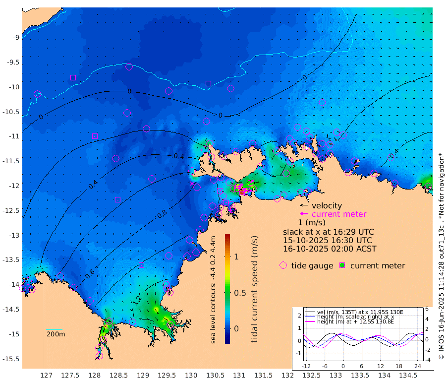 117cm/s 78T +4cm/s rms + 6cm/s 51T. Darwin_C1 52m 80cm/s 91T +4cm/s rms + 7cm/s -161T. Darwin_CW1 22m 54cm/s 72T +4cm/s rms + 8cm/s 61T. Darwin_CW2 34m 59cm/s 49T +3cm/s rms + 9cm/s 98T. Darwin_CW3 22m 74cm/s 90T +5cm/s rms + 7cm/s 88T. Darwin_C3 56m 70cm/s 65T +2cm/s rms + 9cm/s -126T. Darwin_CTbW 22m 1cm/s 24T +9cm/s rms + 2cm/s -110T. NWSLYN 196m 17cm/s 78T +1cm/s rms + 1cm/s -47T. DARBGF 30m 1cm/s -85T +7cm/s rms + 2cm/s -137T. ITFTIS 464m 8cm/s -168T +9cm/s rms + 1cm/s 74T. ITFMHB 146m 9cm/s -180T +4cm/s rms + 1cm/s -134T. ITFJBG 61m 5cm/s 172T +6cm/s rms + 4cm/s 121T. ITFFTB 108m 10cm/s 98T +4cm/s rms + 3cm/s 80T. NRSDAR 19m 44cm Carronade Island 41cm Guy Point 52cm Napier Broome Bay 75cm Lesueur Island 108cm Reveley Island 90cm Rocky Island 145cm Cape Domett 139cm Lacrosse Island 132cm Adolphus Island 127cm Pender Point 123cm Wyndham 43cm The Boxers 44cm Unnamed Shoal 1cm Loxton Shoal 142cm Pelican Island 30cm Calder Shoal 4cm Evans Shoal 151cm Quoin Island 142cm Port Keats 137cm Jones Point 188cm Catfish Island 108cm Cape Scott Offshore 114cm Cape Ford 113cm Anson Bay 6cm Goodrich Bank 103cm Peron Island North 111cm Point Jenny 110cm Native Point 116cm Fish Reef 116cm Tapa Bay 64cm Point Fawcett (Offshore) 125cm Burge Point 106cm Munkunuwa 101cm Beagle A 110cm Parsons Bank 123cm Fenton Patches -1cm Lynedoch Bank 109cm Hancox Shoal Area 122cm Nightcliff 121cm Darwin 109cm Charles Point Patches 103cm Glyde Point 98cm Chambers Bay 100cm Point Stuart 92cm Cape Hotham 92cm Christine Reef 110cm West Alligator Head 107cm East Field Island 85cm Two Hills Bay 82cm Newby Shoal 77cm Camp Point 110cm Medina Inlet South 42cm South Barlow Point 33cm St. Asaph Bay 8cm Cape Van Dieman 7cm Snake Bay 14cm Cache Point -5cm Echo Shoal 21cm Point Jahleel (Off) 45cm Cape Don 14cm Port Essington 16cm Smith Point - West 9cm NW Peacock Island 5cm North Of Jones Shoal 2cm Peacock Island 7cm Point David 11cm D'urville Point 1cm Money Shoal 7cm Copeland Island 15cm Cape Cockburn 10cm One Tree Point 14cm Hogmany Shoal 12cm New Year Island - West 12cm Grant Island 17cm Aurari Bay 24cm Cuthbert Point 19cm North Goulburn Island 27cm Paxie Shoal 30cm Entrance Island 25cm Yabooma Island