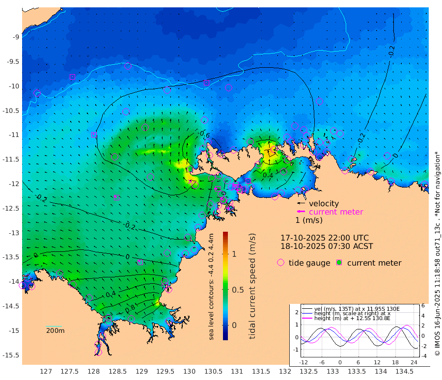41cm/s -101T +4cm/s rms + 6cm/s 51T. Darwin_C1 52m 2cm/s -67T +4cm/s rms + 7cm/s -161T. Darwin_CW1 22m 14cm/s -108T +4cm/s rms + 8cm/s 61T. Darwin_CW2 34m 5cm/s -23T +3cm/s rms + 9cm/s 98T. Darwin_CW3 22m 3cm/s 118T +5cm/s rms + 7cm/s 88T. Darwin_C3 56m 31cm/s -116T +2cm/s rms + 9cm/s -126T. Darwin_CTbW 22m 5cm/s -5T +9cm/s rms + 2cm/s -110T. NWSLYN 196m 45cm/s -85T +1cm/s rms + 1cm/s -47T. DARBGF 30m 5cm/s -46T +7cm/s rms + 2cm/s -137T. ITFTIS 464m 17cm/s -17T +9cm/s rms + 1cm/s 74T. ITFMHB 146m 33cm/s -32T +4cm/s rms + 1cm/s -134T. ITFJBG 61m 35cm/s -46T +6cm/s rms + 4cm/s 121T. ITFFTB 108m 47cm/s -55T +4cm/s rms + 3cm/s 80T. NRSDAR 19m 26cm Carronade Island 33cm Guy Point 35cm Napier Broome Bay 30cm Lesueur Island 48cm Reveley Island 26cm Rocky Island 91cm Cape Domett 71cm Lacrosse Island 119cm Adolphus Island 180cm Pender Point 190cm Wyndham -28cm The Boxers -35cm Unnamed Shoal -22cm Loxton Shoal 71cm Pelican Island -37cm Calder Shoal -36cm Evans Shoal 156cm Quoin Island 34cm Port Keats 36cm Jones Point 76cm Catfish Island -19cm Cape Scott Offshore -17cm Cape Ford -26cm Anson Bay -40cm Goodrich Bank -34cm Peron Island North -38cm Point Jenny -36cm Native Point -40cm Fish Reef -27cm Tapa Bay -59cm Point Fawcett (Offshore) -15cm Burge Point -31cm Munkunuwa -47cm Beagle A -19cm Parsons Bank -25cm Fenton Patches -31cm Lynedoch Bank -10cm Hancox Shoal Area -21cm Nightcliff -5cm Darwin -17cm Charles Point Patches 19cm Glyde Point 51cm Chambers Bay 63cm Point Stuart 24cm Cape Hotham 48cm Christine Reef 74cm West Alligator Head 97cm East Field Island 30cm Two Hills Bay -38cm Newby Shoal 44cm Camp Point -28cm Medina Inlet South -54cm South Barlow Point -54cm St. Asaph Bay -45cm Cape Van Dieman -44cm Snake Bay -46cm Cache Point -24cm Echo Shoal -36cm Point Jahleel (Off) -21cm Cape Don -38cm Port Essington -46cm Smith Point - West -41cm NW Peacock Island -45cm North Of Jones Shoal -16cm Peacock Island -27cm Point David -45cm D'urville Point -31cm Money Shoal -27cm Copeland Island -40cm Cape Cockburn -30cm One Tree Point -23cm Hogmany Shoal -27cm New Year Island - West -24cm Grant Island -24cm Aurari Bay -11cm Cuthbert Point -22cm North Goulburn Island 12cm Paxie Shoal 13cm Entrance Island 27cm Yabooma Island