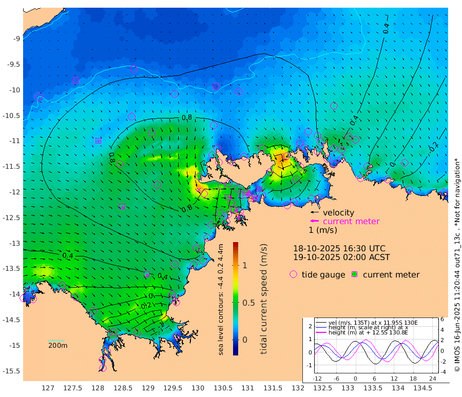 67cm/s 78T +4cm/s rms + 6cm/s 51T. Darwin_C1 52m 33cm/s 87T +4cm/s rms + 7cm/s -161T. Darwin_CW1 22m 28cm/s 74T +4cm/s rms + 8cm/s 61T. Darwin_CW2 34m 9cm/s 104T +3cm/s rms + 9cm/s 98T. Darwin_CW3 22m 18cm/s 84T +5cm/s rms + 7cm/s 88T. Darwin_C3 56m 51cm/s 64T +2cm/s rms + 9cm/s -126T. Darwin_CTbW 22m 4cm/s 162T +9cm/s rms + 2cm/s -110T. NWSLYN 196m 54cm/s 94T +1cm/s rms + 1cm/s -47T. DARBGF 30m 7cm/s 82T +7cm/s rms + 2cm/s -137T. ITFTIS 464m 16cm/s 149T +9cm/s rms + 1cm/s 74T. ITFMHB 146m 36cm/s 144T +4cm/s rms + 1cm/s -134T. ITFJBG 61m 39cm/s 128T +6cm/s rms + 4cm/s 121T. ITFFTB 108m 56cm/s 123T +4cm/s rms + 3cm/s 80T. NRSDAR 19m -1cm Carronade Island -11cm Guy Point 3cm Napier Broome Bay 5cm Lesueur Island -24cm Reveley Island 35cm Rocky Island -56cm Cape Domett -42cm Lacrosse Island -96cm Adolphus Island -154cm Pender Point -172cm Wyndham 72cm The Boxers 82cm Unnamed Shoal 57cm Loxton Shoal -47cm Pelican Island 75cm Calder Shoal 60cm Evans Shoal -143cm Quoin Island 8cm Port Keats -2cm Jones Point -92cm Catfish Island 52cm Cape Scott Offshore 70cm Cape Ford 61cm Anson Bay 68cm Goodrich Bank 64cm Peron Island North 77cm Point Jenny 79cm Native Point 78cm Fish Reef 67cm Tapa Bay 92cm Point Fawcett (Offshore) 58cm Burge Point 71cm Munkunuwa 90cm Beagle A 50cm Parsons Bank 68cm Fenton Patches 56cm Lynedoch Bank 36cm Hancox Shoal Area 55cm Nightcliff 43cm Darwin 57cm Charles Point Patches 3cm Glyde Point -53cm Chambers Bay -69cm Point Stuart -18cm Cape Hotham -46cm Christine Reef -82cm West Alligator Head -108cm East Field Island -29cm Two Hills Bay 92cm Newby Shoal -33cm Camp Point 70cm Medina Inlet South 90cm South Barlow Point 86cm St. Asaph Bay 73cm Cape Van Dieman 73cm Snake Bay 69cm Cache Point 48cm Echo Shoal 56cm Point Jahleel (Off) 34cm Cape Don 51cm Port Essington 57cm Smith Point - West 50cm NW Peacock Island 55cm North Of Jones Shoal 19cm Peacock Island 24cm Point David 53cm D'urville Point 37cm Money Shoal 20cm Copeland Island 31cm Cape Cockburn 29cm One Tree Point 13cm Hogmany Shoal 29cm New Year Island - West 24cm Grant Island 13cm Aurari Bay -6cm Cuthbert Point 12cm North Goulburn Island -30cm Paxie Shoal -42cm Entrance Island -80cm Yabooma Island