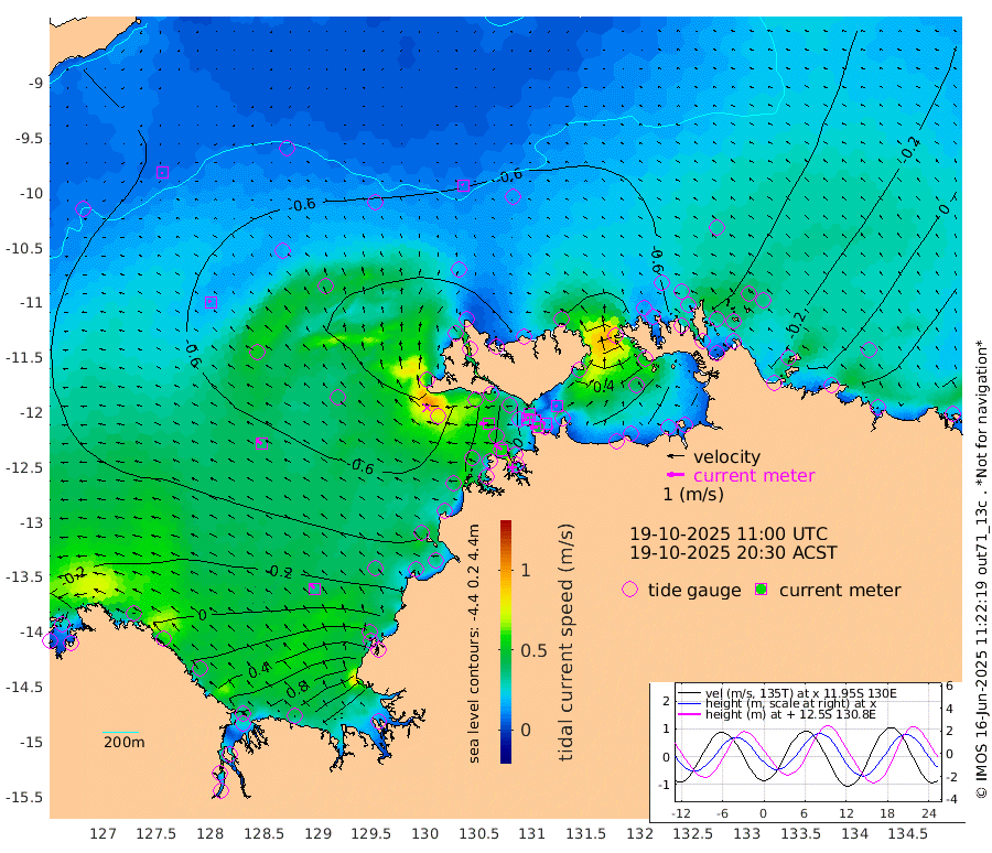 45cm/s -104T +4cm/s rms + 6cm/s 51T. Darwin_C1 52m 16cm/s -81T +4cm/s rms + 7cm/s -161T. Darwin_CW1 22m 29cm/s -109T +4cm/s rms + 8cm/s 61T. Darwin_CW2 34m 9cm/s -51T +3cm/s rms + 9cm/s 98T. Darwin_CW3 22m 19cm/s -98T +5cm/s rms + 7cm/s 88T. Darwin_C3 56m 35cm/s -116T +2cm/s rms + 9cm/s -126T. Darwin_CTbW 22m 9cm/s -26T +9cm/s rms + 2cm/s -110T. NWSLYN 196m 54cm/s -86T +1cm/s rms + 1cm/s -47T. DARBGF 30m 8cm/s -109T +7cm/s rms + 2cm/s -137T. ITFTIS 464m 13cm/s -39T +9cm/s rms + 1cm/s 74T. ITFMHB 146m 36cm/s -36T +4cm/s rms + 1cm/s -134T. ITFJBG 61m 38cm/s -53T +6cm/s rms + 4cm/s 121T. ITFFTB 108m 56cm/s -56T +4cm/s rms + 3cm/s 80T. NRSDAR 19m 32cm Carronade Island 39cm Guy Point 25cm Napier Broome Bay 31cm Lesueur Island 57cm Reveley Island 13cm Rocky Island 99cm Cape Domett 86cm Lacrosse Island 153cm Adolphus Island 192cm Pender Point 220cm Wyndham -52cm The Boxers -74cm Unnamed Shoal -42cm Loxton Shoal 81cm Pelican Island -56cm Calder Shoal -47cm Evans Shoal 198cm Quoin Island 32cm Port Keats 29cm Jones Point 155cm Catfish Island -30cm Cape Scott Offshore -42cm Cape Ford -42cm Anson Bay -57cm Goodrich Bank -36cm Peron Island North -52cm Point Jenny -54cm Native Point -45cm Fish Reef -46cm Tapa Bay -74cm Point Fawcett (Offshore) -24cm Burge Point -53cm Munkunuwa -54cm Beagle A -25cm Parsons Bank -28cm Fenton Patches -46cm Lynedoch Bank -12cm Hancox Shoal Area -23cm Nightcliff -15cm Darwin -32cm Charles Point Patches 27cm Glyde Point 82cm Chambers Bay 102cm Point Stuart 47cm Cape Hotham 80cm Christine Reef 119cm West Alligator Head 149cm East Field Island 59cm Two Hills Bay -47cm Newby Shoal 57cm Camp Point -44cm Medina Inlet South -73cm South Barlow Point -71cm St. Asaph Bay -64cm Cape Van Dieman -64cm Snake Bay -55cm Cache Point -31cm Echo Shoal -41cm Point Jahleel (Off) -17cm Cape Don -41cm Port Essington -43cm Smith Point - West -38cm NW Peacock Island -44cm North Of Jones Shoal -15cm Peacock Island -24cm Point David -41cm D'urville Point -31cm Money Shoal -19cm Copeland Island -20cm Cape Cockburn -24cm One Tree Point -11cm Hogmany Shoal -23cm New Year Island - West -19cm Grant Island -7cm Aurari Bay 12cm Cuthbert Point -8cm North Goulburn Island 23cm Paxie Shoal 43cm Entrance Island 77cm Yabooma Island