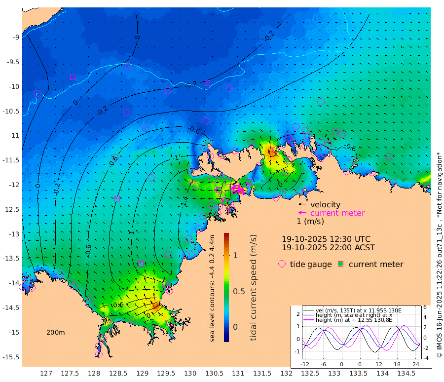 113cm/s -103T +4cm/s rms + 6cm/s 51T. Darwin_C1 52m 81cm/s -88T +4cm/s rms + 7cm/s -161T. Darwin_CW1 22m 80cm/s -107T +4cm/s rms + 8cm/s 61T. Darwin_CW2 34m 42cm/s -125T +3cm/s rms + 9cm/s 98T. Darwin_CW3 22m 101cm/s -92T +5cm/s rms + 7cm/s 88T. Darwin_C3 56m 67cm/s -115T +2cm/s rms + 9cm/s -126T. Darwin_CTbW 22m 5cm/s -42T +9cm/s rms + 2cm/s -110T. NWSLYN 196m 59cm/s -90T +1cm/s rms + 1cm/s -47T. DARBGF 30m 4cm/s -142T +7cm/s rms + 2cm/s -137T. ITFTIS 464m 7cm/s -18T +9cm/s rms + 1cm/s 74T. ITFMHB 146m 33cm/s -25T +4cm/s rms + 1cm/s -134T. ITFJBG 61m 26cm/s -43T +6cm/s rms + 4cm/s 121T. ITFFTB 108m 54cm/s -61T +4cm/s rms + 3cm/s 80T. NRSDAR 19m 82cm Carronade Island 88cm Guy Point 78cm Napier Broome Bay 13cm Lesueur Island -37cm Reveley Island -12cm Rocky Island -51cm Cape Domett -49cm Lacrosse Island -1cm Adolphus Island 63cm Pender Point 102cm Wyndham -37cm The Boxers -69cm Unnamed Shoal 12cm Loxton Shoal -83cm Pelican Island -32cm Calder Shoal -7cm Evans Shoal 2cm Quoin Island -114cm Port Keats -125cm Jones Point -3cm Catfish Island -127cm Cape Scott Offshore -159cm Cape Ford -152cm Anson Bay -28cm Goodrich Bank -132cm Peron Island North -140cm Point Jenny -141cm Native Point -148cm Fish Reef -153cm Tapa Bay -102cm Point Fawcett (Offshore) -147cm Burge Point -154cm Munkunuwa -123cm Beagle A -145cm Parsons Bank -140cm Fenton Patches -13cm Lynedoch Bank -132cm Hancox Shoal Area -145cm Nightcliff -152cm Darwin -150cm Charles Point Patches -81cm Glyde Point -19cm Chambers Bay -1cm Point Stuart -51cm Cape Hotham -5cm Christine Reef 6cm West Alligator Head 39cm East Field Island -23cm Two Hills Bay -70cm Newby Shoal -24cm Camp Point -150cm Medina Inlet South -87cm South Barlow Point -68cm St. Asaph Bay -37cm Cape Van Dieman -40cm Snake Bay -33cm Cache Point 32cm Echo Shoal -34cm Point Jahleel (Off) -47cm Cape Don -41cm Port Essington -40cm Smith Point - West -33cm NW Peacock Island -29cm North Of Jones Shoal -11cm Peacock Island -40cm Point David -40cm D'urville Point -27cm Money Shoal -38cm Copeland Island -46cm Cape Cockburn -38cm One Tree Point -38cm Hogmany Shoal -36cm New Year Island - West -36cm Grant Island -41cm Aurari Bay -35cm Cuthbert Point -41cm North Goulburn Island -38cm Paxie Shoal -32cm Entrance Island -21cm Yabooma Island