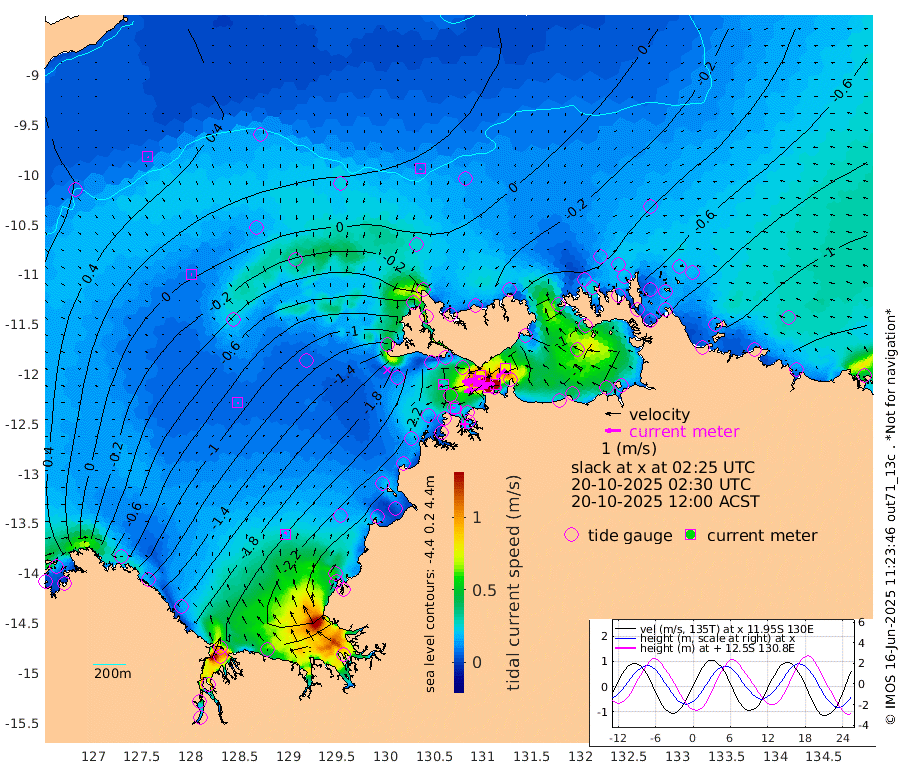 156cm/s -101T +4cm/s rms + 6cm/s 51T. Darwin_C1 52m 134cm/s -91T +4cm/s rms + 7cm/s -161T. Darwin_CW1 22m 94cm/s -106T +4cm/s rms + 8cm/s 61T. Darwin_CW2 34m 77cm/s -136T +3cm/s rms + 9cm/s 98T. Darwin_CW3 22m 150cm/s -91T +5cm/s rms + 7cm/s 88T. Darwin_C3 56m 83cm/s -115T +2cm/s rms + 9cm/s -126T. Darwin_CTbW 22m 8cm/s 175T +9cm/s rms + 2cm/s -110T. NWSLYN 196m 29cm/s -103T +1cm/s rms + 1cm/s -47T. DARBGF 30m 6cm/s 118T +7cm/s rms + 2cm/s -137T. ITFTIS 464m 6cm/s 111T +9cm/s rms + 1cm/s 74T. ITFMHB 146m 16cm/s 19T +4cm/s rms + 1cm/s -134T. ITFJBG 61m 8cm/s 90T +6cm/s rms + 4cm/s 121T. ITFFTB 108m 20cm/s -80T +4cm/s rms + 3cm/s 80T. NRSDAR 19m 51cm Carronade Island 58cm Guy Point 55cm Napier Broome Bay -68cm Lesueur Island -167cm Reveley Island -90cm Rocky Island -252cm Cape Domett -232cm Lacrosse Island -254cm Adolphus Island -173cm Pender Point -155cm Wyndham -34cm The Boxers -49cm Unnamed Shoal 38cm Loxton Shoal -271cm Pelican Island -18cm Calder Shoal 19cm Evans Shoal -298cm Quoin Island -276cm Port Keats -270cm Jones Point -247cm Catfish Island -201cm Cape Scott Offshore -243cm Cape Ford -225cm Anson Bay -2cm Goodrich Bank -209cm Peron Island North -200cm Point Jenny -197cm Native Point -227cm Fish Reef -224cm Tapa Bay -106cm Point Fawcett (Offshore) -255cm Burge Point -212cm Munkunuwa -183cm Beagle A -241cm Parsons Bank -246cm Fenton Patches 9cm Lynedoch Bank -234cm Hancox Shoal Area -250cm Nightcliff -272cm Darwin -245cm Charles Point Patches -201cm Glyde Point -158cm Chambers Bay -157cm Point Stuart -175cm Cape Hotham -144cm Christine Reef -167cm West Alligator Head -156cm East Field Island -142cm Two Hills Bay -124cm Newby Shoal -139cm Camp Point -228cm Medina Inlet South -86cm South Barlow Point -53cm St. Asaph Bay -6cm Cape Van Dieman -13cm Snake Bay -14cm Cache Point 59cm Echo Shoal -33cm Point Jahleel (Off) -85cm Cape Don -41cm Port Essington -40cm Smith Point - West -35cm NW Peacock Island -20cm North Of Jones Shoal -9cm Peacock Island -50cm Point David -41cm D'urville Point -29cm Money Shoal -53cm Copeland Island -78cm Cape Cockburn -52cm One Tree Point -62cm Hogmany Shoal -53cm New Year Island - West -56cm Grant Island -76cm Aurari Bay -90cm Cuthbert Point -75cm North Goulburn Island -92cm Paxie Shoal -110cm Entrance Island -129cm Yabooma Island