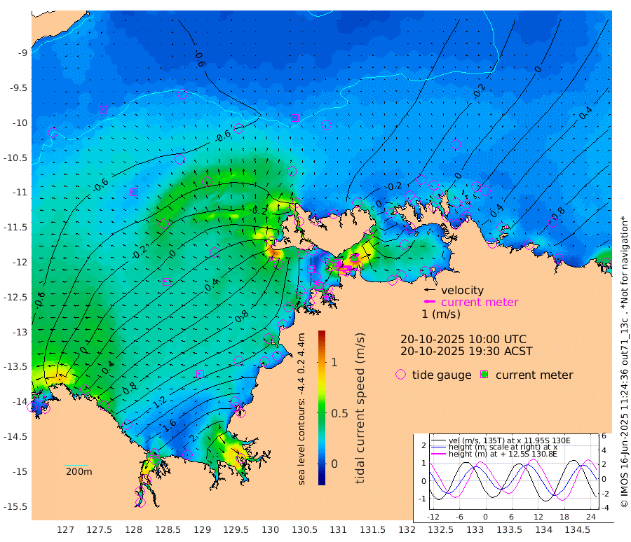 89cm/s 80T +4cm/s rms + 6cm/s 51T. Darwin_C1 52m 84cm/s 91T +4cm/s rms + 7cm/s -161T. Darwin_CW1 22m 60cm/s 71T +4cm/s rms + 8cm/s 61T. Darwin_CW2 34m 59cm/s 44T +3cm/s rms + 9cm/s 98T. Darwin_CW3 22m 105cm/s 90T +5cm/s rms + 7cm/s 88T. Darwin_C3 56m 38cm/s 66T +2cm/s rms + 9cm/s -126T. Darwin_CTbW 22m 8cm/s -12T +9cm/s rms + 2cm/s -110T. NWSLYN 196m 20cm/s -65T +1cm/s rms + 1cm/s -47T. DARBGF 30m 9cm/s -99T +7cm/s rms + 2cm/s -137T. ITFTIS 464m 12cm/s -65T +9cm/s rms + 1cm/s 74T. ITFMHB 146m 20cm/s -65T +4cm/s rms + 1cm/s -134T. ITFJBG 61m 30cm/s -63T +6cm/s rms + 4cm/s 121T. ITFFTB 108m 35cm/s -48T +4cm/s rms + 3cm/s 80T. NRSDAR 19m -25cm Carronade Island -20cm Guy Point -33cm Napier Broome Bay 56cm Lesueur Island 153cm Reveley Island 46cm Rocky Island 235cm Cape Domett 215cm Lacrosse Island 265cm Adolphus Island 247cm Pender Point 249cm Wyndham -24cm The Boxers -25cm Unnamed Shoal -65cm Loxton Shoal 244cm Pelican Island -36cm Calder Shoal -51cm Evans Shoal 339cm Quoin Island 202cm Port Keats 204cm Jones Point 293cm Catfish Island 120cm Cape Scott Offshore 124cm Cape Ford 129cm Anson Bay -47cm Goodrich Bank 117cm Peron Island North 96cm Point Jenny 92cm Native Point 117cm Fish Reef 121cm Tapa Bay 20cm Point Fawcett (Offshore) 146cm Burge Point 109cm Munkunuwa 72cm Beagle A 143cm Parsons Bank 132cm Fenton Patches -47cm Lynedoch Bank 150cm Hancox Shoal Area 149cm Nightcliff 170cm Darwin 140cm Charles Point Patches 150cm Glyde Point 164cm Chambers Bay 177cm Point Stuart 150cm Cape Hotham 146cm Christine Reef 196cm West Alligator Head 205cm East Field Island 136cm Two Hills Bay 25cm Newby Shoal 128cm Camp Point 121cm Medina Inlet South 0cm South Barlow Point -19cm St. Asaph Bay -47cm Cape Van Dieman -43cm Snake Bay -36cm Cache Point -69cm Echo Shoal -13cm Point Jahleel (Off) 41cm Cape Don -6cm Port Essington -9cm Smith Point - West -9cm NW Peacock Island -21cm North Of Jones Shoal -6cm Peacock Island 18cm Point David -7cm D'urville Point -9cm Money Shoal 23cm Copeland Island 36cm Cape Cockburn 17cm One Tree Point 38cm Hogmany Shoal 16cm New Year Island - West 22cm Grant Island 45cm Aurari Bay 68cm Cuthbert Point 45cm North Goulburn Island 86cm Paxie Shoal 107cm Entrance Island 149cm Yabooma Island