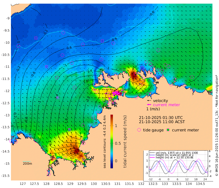 167cm/s -102T +4cm/s rms + 6cm/s 51T. Darwin_C1 52m 134cm/s -90T +4cm/s rms + 7cm/s -161T. Darwin_CW1 22m 118cm/s -107T +4cm/s rms + 8cm/s 61T. Darwin_CW2 34m 61cm/s -129T +3cm/s rms + 9cm/s 98T. Darwin_CW3 22m 157cm/s -91T +5cm/s rms + 7cm/s 88T. Darwin_C3 56m 99cm/s -115T +2cm/s rms + 9cm/s -126T. Darwin_CTbW 22m 4cm/s -96T +9cm/s rms + 2cm/s -110T. NWSLYN 196m 78cm/s -92T +1cm/s rms + 1cm/s -47T. DARBGF 30m 5cm/s -158T +7cm/s rms + 2cm/s -137T. ITFTIS 464m 10cm/s -16T +9cm/s rms + 1cm/s 74T. ITFMHB 146m 40cm/s -21T +4cm/s rms + 1cm/s -134T. ITFJBG 61m 30cm/s -45T +6cm/s rms + 4cm/s 121T. ITFFTB 108m 66cm/s -62T +4cm/s rms + 3cm/s 80T. NRSDAR 19m 52cm Carronade Island 59cm Guy Point 57cm Napier Broome Bay -56cm Lesueur Island -118cm Reveley Island -47cm Rocky Island -149cm Cape Domett -151cm Lacrosse Island -108cm Adolphus Island 12cm Pender Point 48cm Wyndham -90cm The Boxers -114cm Unnamed Shoal -25cm Loxton Shoal -180cm Pelican Island -89cm Calder Shoal -45cm Evans Shoal -109cm Quoin Island -232cm Port Keats -218cm Jones Point -76cm Catfish Island -224cm Cape Scott Offshore -273cm Cape Ford -255cm Anson Bay -69cm Goodrich Bank -237cm Peron Island North -238cm Point Jenny -237cm Native Point -255cm Fish Reef -255cm Tapa Bay -180cm Point Fawcett (Offshore) -264cm Burge Point -248cm Munkunuwa -228cm Beagle A -250cm Parsons Bank -259cm Fenton Patches -49cm Lynedoch Bank -236cm Hancox Shoal Area -266cm Nightcliff -270cm Darwin -264cm Charles Point Patches -163cm Glyde Point -74cm Chambers Bay -51cm Point Stuart -124cm Cape Hotham -67cm Christine Reef -44cm West Alligator Head -6cm East Field Island -81cm Two Hills Bay -173cm Newby Shoal -81cm Camp Point -257cm Medina Inlet South -160cm South Barlow Point -131cm St. Asaph Bay -78cm Cape Van Dieman -86cm Snake Bay -79cm Cache Point -2cm Echo Shoal -83cm Point Jahleel (Off) -102cm Cape Don -86cm Port Essington -89cm Smith Point - West -80cm NW Peacock Island -78cm North Of Jones Shoal -28cm Peacock Island -76cm Point David -87cm D'urville Point -69cm Money Shoal -75cm Copeland Island -105cm Cape Cockburn -82cm One Tree Point -80cm Hogmany Shoal -79cm New Year Island - West -78cm Grant Island -82cm Aurari Bay -73cm Cuthbert Point -83cm North Goulburn Island -67cm Paxie Shoal -64cm Entrance Island -55cm Yabooma Island
