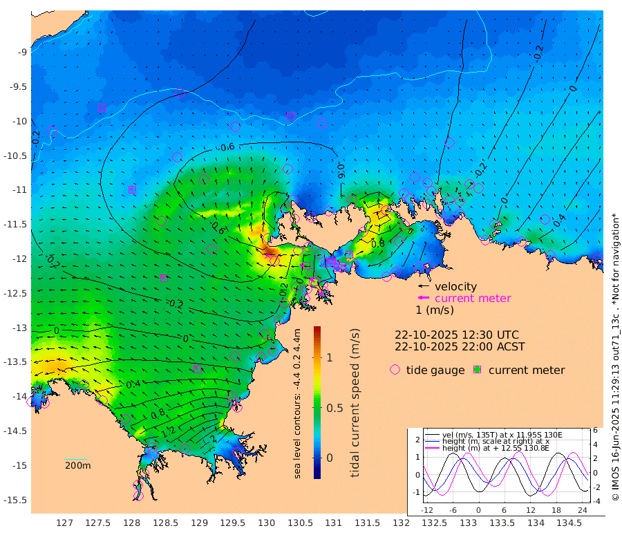 9cm/s 94T +4cm/s rms + 6cm/s 51T. Darwin_C1 52m 28cm/s 86T +4cm/s rms + 7cm/s -161T. Darwin_CW1 22m 15cm/s -114T +4cm/s rms + 8cm/s 61T. Darwin_CW2 34m 28cm/s 31T +3cm/s rms + 9cm/s 98T. Darwin_CW3 22m 16cm/s 103T +5cm/s rms + 7cm/s 88T. Darwin_C3 56m 7cm/s -129T +2cm/s rms + 9cm/s -126T. Darwin_CTbW 22m 7cm/s -16T +9cm/s rms + 2cm/s -110T. NWSLYN 196m 57cm/s -84T +1cm/s rms + 1cm/s -47T. DARBGF 30m 9cm/s -104T +7cm/s rms + 2cm/s -137T. ITFTIS 464m 14cm/s -44T +9cm/s rms + 1cm/s 74T. ITFMHB 146m 43cm/s -35T +4cm/s rms + 1cm/s -134T. ITFJBG 61m 44cm/s -53T +6cm/s rms + 4cm/s 121T. ITFFTB 108m 66cm/s -54T +4cm/s rms + 3cm/s 80T. NRSDAR 19m 83cm Carronade Island 90cm Guy Point 82cm Napier Broome Bay 89cm Lesueur Island 112cm Reveley Island 51cm Rocky Island 171cm Cape Domett 158cm Lacrosse Island 224cm Adolphus Island 286cm Pender Point 322cm Wyndham -25cm The Boxers -46cm Unnamed Shoal -25cm Loxton Shoal 149cm Pelican Island -38cm Calder Shoal -33cm Evans Shoal 301cm Quoin Island 81cm Port Keats 80cm Jones Point 326cm Catfish Island 12cm Cape Scott Offshore -38cm Cape Ford -4cm Anson Bay -50cm Goodrich Bank 0cm Peron Island North -27cm Point Jenny -31cm Native Point -15cm Fish Reef -17cm Tapa Bay -49cm Point Fawcett (Offshore) -1cm Burge Point -32cm Munkunuwa -37cm Beagle A 0cm Parsons Bank -8cm Fenton Patches -37cm Lynedoch Bank 16cm Hancox Shoal Area 4cm Nightcliff 19cm Darwin -2cm Charles Point Patches 69cm Glyde Point 138cm Chambers Bay 168cm Point Stuart 95cm Cape Hotham 127cm Christine Reef 192cm West Alligator Head 227cm East Field Island 113cm Two Hills Bay -25cm Newby Shoal 99cm Camp Point -15cm Medina Inlet South -63cm South Barlow Point -60cm St. Asaph Bay -57cm Cape Van Dieman -55cm Snake Bay -43cm Cache Point -12cm Echo Shoal -26cm Point Jahleel (Off) 9cm Cape Don -27cm Port Essington -31cm Smith Point - West -27cm NW Peacock Island -30cm North Of Jones Shoal -10cm Peacock Island -10cm Point David -31cm D'urville Point -23cm Money Shoal -6cm Copeland Island -1cm Cape Cockburn -7cm One Tree Point 13cm Hogmany Shoal -6cm New Year Island - West -3cm Grant Island 12cm Aurari Bay 34cm Cuthbert Point 13cm North Goulburn Island 52cm Paxie Shoal 64cm Entrance Island 100cm Yabooma Island