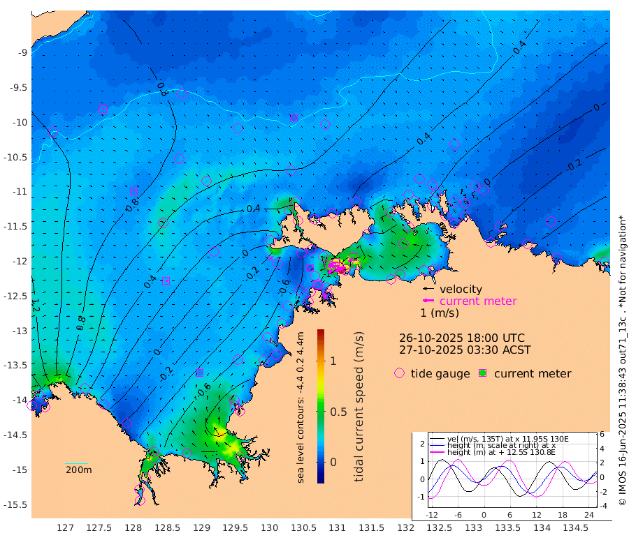 124cm/s -101T +4cm/s rms + 6cm/s 51T. Darwin_C1 52m 81cm/s -90T +4cm/s rms + 7cm/s -161T. Darwin_CW1 22m 57cm/s -107T +4cm/s rms + 8cm/s 61T. Darwin_CW2 34m 57cm/s -134T +3cm/s rms + 9cm/s 98T. Darwin_CW3 22m 81cm/s -90T +5cm/s rms + 7cm/s 88T. Darwin_C3 56m 72cm/s -115T +2cm/s rms + 9cm/s -126T. Darwin_CTbW 22m 8cm/s 135T +9cm/s rms + 2cm/s -110T. NWSLYN 196m 7cm/s -115T +1cm/s rms + 1cm/s -47T. DARBGF 30m 11cm/s 40T +7cm/s rms + 2cm/s -137T. ITFTIS 464m 12cm/s 56T +9cm/s rms + 1cm/s 74T. ITFMHB 146m 11cm/s 41T +4cm/s rms + 1cm/s -134T. ITFJBG 61m 16cm/s 75T +6cm/s rms + 4cm/s 121T. ITFFTB 108m 9cm/s -130T +4cm/s rms + 3cm/s 80T. NRSDAR 19m 120cm Carronade Island 118cm Guy Point 127cm Napier Broome Bay 64cm Lesueur Island -37cm Reveley Island -15cm Rocky Island -82cm Cape Domett -63cm Lacrosse Island -105cm Adolphus Island -55cm Pender Point -41cm Wyndham 70cm The Boxers 63cm Unnamed Shoal 94cm Loxton Shoal -109cm Pelican Island 75cm Calder Shoal 74cm Evans Shoal -148cm Quoin Island -91cm Port Keats -84cm Jones Point -104cm Catfish Island -50cm Cape Scott Offshore 29cm Cape Ford -66cm Anson Bay 65cm Goodrich Bank -45cm Peron Island North -37cm Point Jenny -35cm Native Point -44cm Fish Reef -54cm Tapa Bay 23cm Point Fawcett (Offshore) -60cm Burge Point -60cm Munkunuwa -12cm Beagle A -80cm Parsons Bank -55cm Fenton Patches 65cm Lynedoch Bank -81cm Hancox Shoal Area -84cm Nightcliff -83cm Darwin -57cm Charles Point Patches -57cm Glyde Point -55cm Chambers Bay -52cm Point Stuart -50cm Cape Hotham -50cm Christine Reef -61cm West Alligator Head -53cm East Field Island -41cm Two Hills Bay 37cm Newby Shoal -31cm Camp Point -56cm Medina Inlet South 21cm South Barlow Point 43cm St. Asaph Bay 64cm Cape Van Dieman 58cm Snake Bay 62cm Cache Point 105cm Echo Shoal 42cm Point Jahleel (Off) 3cm Cape Don 31cm Port Essington 27cm Smith Point - West 29cm NW Peacock Island 41cm North Of Jones Shoal 12cm Peacock Island 7cm Point David 22cm D'urville Point 33cm Money Shoal 1cm Copeland Island 3cm Cape Cockburn 10cm One Tree Point 11cm Hogmany Shoal 14cm New Year Island - West 7cm Grant Island -18cm Aurari Bay -30cm Cuthbert Point -11cm North Goulburn Island -33cm Paxie Shoal -51cm Entrance Island -78cm Yabooma Island