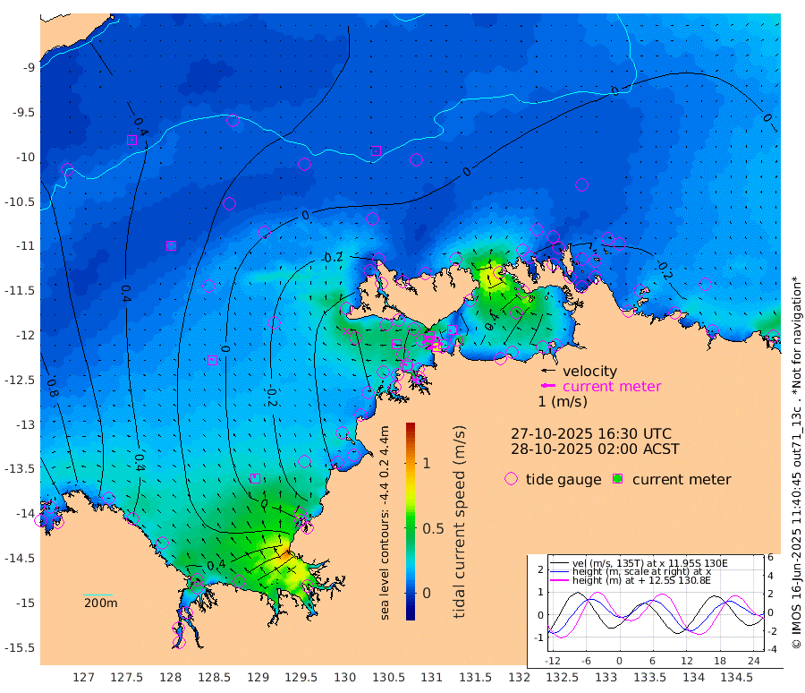 72cm/s -102T +4cm/s rms + 6cm/s 51T. Darwin_C1 52m 25cm/s -88T +4cm/s rms + 7cm/s -161T. Darwin_CW1 22m 44cm/s -112T +4cm/s rms + 8cm/s 61T. Darwin_CW2 34m 21cm/s -108T +3cm/s rms + 9cm/s 98T. Darwin_CW3 22m 37cm/s -94T +5cm/s rms + 7cm/s 88T. Darwin_C3 56m 38cm/s -118T +2cm/s rms + 9cm/s -126T. Darwin_CTbW 22m 3cm/s 118T +9cm/s rms + 2cm/s -110T. NWSLYN 196m 30cm/s -90T +1cm/s rms + 1cm/s -47T. DARBGF 30m 5cm/s 11T +7cm/s rms + 2cm/s -137T. ITFTIS 464m 8cm/s 16T +9cm/s rms + 1cm/s 74T. ITFMHB 146m 25cm/s -18T +4cm/s rms + 1cm/s -134T. ITFJBG 61m 17cm/s -25T +6cm/s rms + 4cm/s 121T. ITFFTB 108m 26cm/s -64T +4cm/s rms + 3cm/s 80T. NRSDAR 19m 142cm Carronade Island 143cm Guy Point 152cm Napier Broome Bay 101cm Lesueur Island 37cm Reveley Island 44cm Rocky Island 51cm Cape Domett 55cm Lacrosse Island 72cm Adolphus Island 143cm Pender Point 179cm Wyndham 40cm The Boxers 14cm Unnamed Shoal 49cm Loxton Shoal 23cm Pelican Island 27cm Calder Shoal 28cm Evans Shoal 95cm Quoin Island -10cm Port Keats -10cm Jones Point 205cm Catfish Island -20cm Cape Scott Offshore -48cm Cape Ford -38cm Anson Bay 11cm Goodrich Bank -35cm Peron Island North -37cm Point Jenny -38cm Native Point -37cm Fish Reef -46cm Tapa Bay -12cm Point Fawcett (Offshore) -48cm Burge Point -67cm Munkunuwa -27cm Beagle A -64cm Parsons Bank -41cm Fenton Patches 19cm Lynedoch Bank -48cm Hancox Shoal Area -52cm Nightcliff -49cm Darwin -41cm Charles Point Patches 3cm Glyde Point 59cm Chambers Bay 68cm Point Stuart 19cm Cape Hotham 49cm Christine Reef 79cm West Alligator Head 108cm East Field Island 41cm Two Hills Bay 13cm Newby Shoal 41cm Camp Point -48cm Medina Inlet South -27cm South Barlow Point -8cm St. Asaph Bay 5cm Cape Van Dieman -1cm Snake Bay 13cm Cache Point 69cm Echo Shoal 8cm Point Jahleel (Off) 7cm Cape Don 0cm Port Essington -4cm Smith Point - West -3cm NW Peacock Island 6cm North Of Jones Shoal 0cm Peacock Island -15cm Point David -10cm D'urville Point 3cm Money Shoal -16cm Copeland Island -16cm Cape Cockburn -8cm One Tree Point -4cm Hogmany Shoal -3cm New Year Island - West -10cm Grant Island -12cm Aurari Bay -7cm Cuthbert Point -11cm North Goulburn Island 0cm Paxie Shoal -8cm Entrance Island -7cm Yabooma Island
