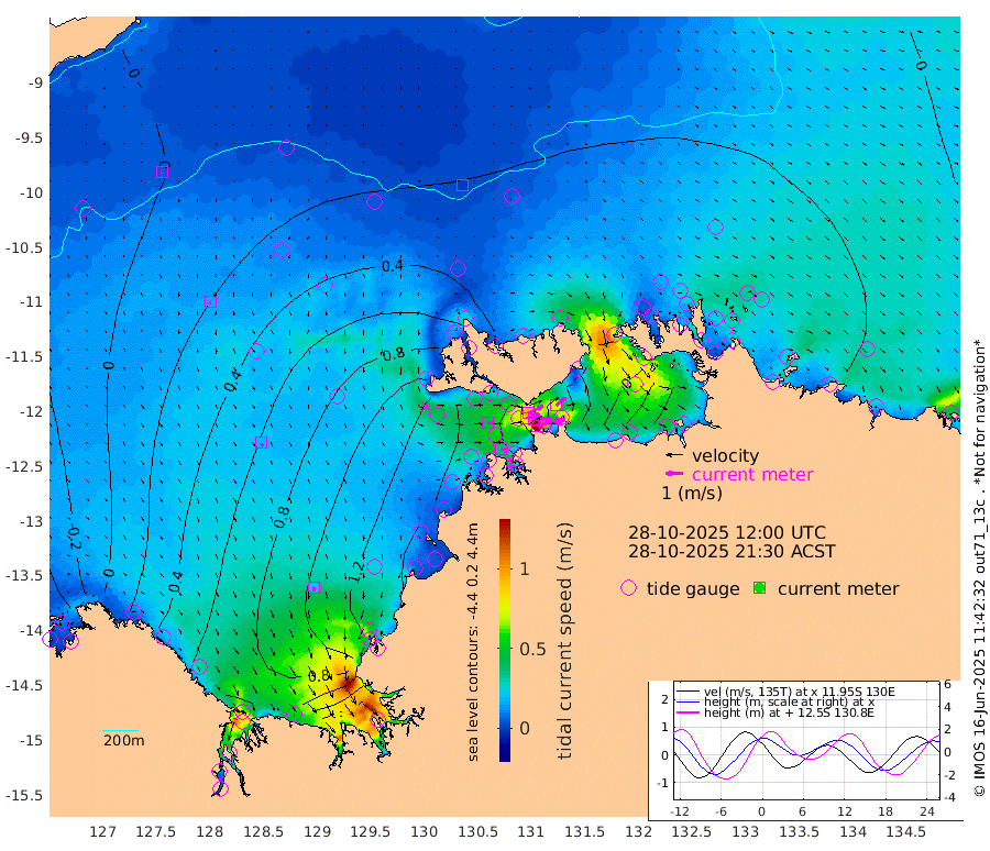 168cm/s 78T +4cm/s rms + 6cm/s 51T. Darwin_C1 52m 100cm/s 91T +4cm/s rms + 7cm/s -161T. Darwin_CW1 22m 80cm/s 73T +4cm/s rms + 8cm/s 61T. Darwin_CW2 34m 74cm/s 51T +3cm/s rms + 9cm/s 98T. Darwin_CW3 22m 107cm/s 89T +5cm/s rms + 7cm/s 88T. Darwin_C3 56m 94cm/s 65T +2cm/s rms + 9cm/s -126T. Darwin_CTbW 22m 0cm/s -75T +9cm/s rms + 2cm/s -110T. NWSLYN 196m 41cm/s 85T +1cm/s rms + 1cm/s -47T. DARBGF 30m 4cm/s -174T +7cm/s rms + 2cm/s -137T. ITFTIS 464m 17cm/s -173T +9cm/s rms + 1cm/s 74T. ITFMHB 146m 21cm/s 178T +4cm/s rms + 1cm/s -134T. ITFJBG 61m 18cm/s 160T +6cm/s rms + 4cm/s 121T. ITFFTB 108m 38cm/s 110T +4cm/s rms + 3cm/s 80T. NRSDAR 19m -37cm Carronade Island -33cm Guy Point -39cm Napier Broome Bay 14cm Lesueur Island 88cm Reveley Island 80cm Rocky Island 109cm Cape Domett 96cm Lacrosse Island 100cm Adolphus Island 27cm Pender Point -2cm Wyndham 39cm The Boxers 31cm Unnamed Shoal 11cm Loxton Shoal 123cm Pelican Island 40cm Calder Shoal 20cm Evans Shoal 94cm Quoin Island 152cm Port Keats 123cm Jones Point 5cm Catfish Island 127cm Cape Scott Offshore 147cm Cape Ford 141cm Anson Bay 29cm Goodrich Bank 130cm Peron Island North 141cm Point Jenny 141cm Native Point 138cm Fish Reef 150cm Tapa Bay 87cm Point Fawcett (Offshore) 157cm Burge Point 154cm Munkunuwa 127cm Beagle A 155cm Parsons Bank 152cm Fenton Patches 16cm Lynedoch Bank 146cm Hancox Shoal Area 162cm Nightcliff 156cm Darwin 147cm Charles Point Patches 89cm Glyde Point 34cm Chambers Bay 18cm Point Stuart 60cm Cape Hotham 50cm Christine Reef 18cm West Alligator Head -9cm East Field Island 37cm Two Hills Bay 98cm Newby Shoal 36cm Camp Point 148cm Medina Inlet South 86cm South Barlow Point 65cm St. Asaph Bay 32cm Cape Van Dieman 34cm Snake Bay 30cm Cache Point -12cm Echo Shoal 35cm Point Jahleel (Off) 47cm Cape Don 31cm Port Essington 40cm Smith Point - West 31cm NW Peacock Island 25cm North Of Jones Shoal 8cm Peacock Island 18cm Point David 36cm D'urville Point 16cm Money Shoal 18cm Copeland Island 27cm Cape Cockburn 21cm One Tree Point 18cm Hogmany Shoal 18cm New Year Island - West 23cm Grant Island 15cm Aurari Bay 19cm Cuthbert Point 19cm North Goulburn Island 6cm Paxie Shoal 9cm Entrance Island -8cm Yabooma Island